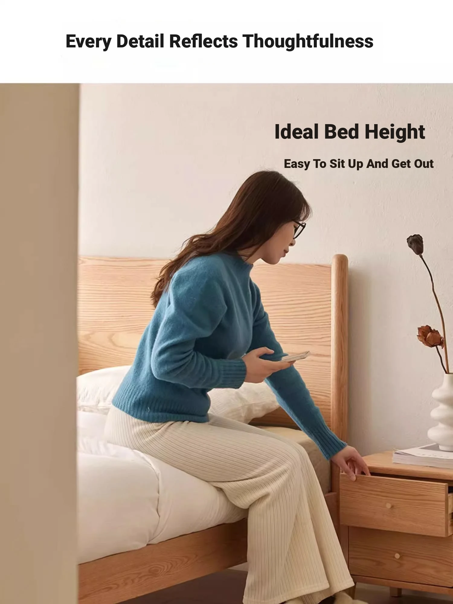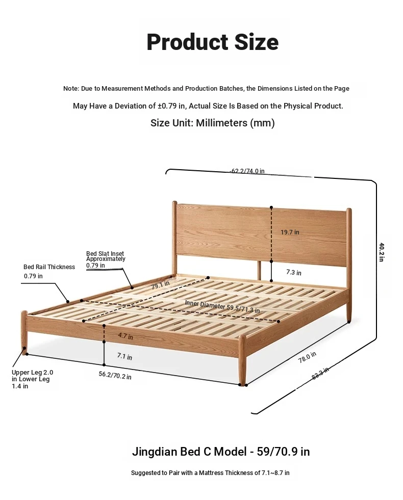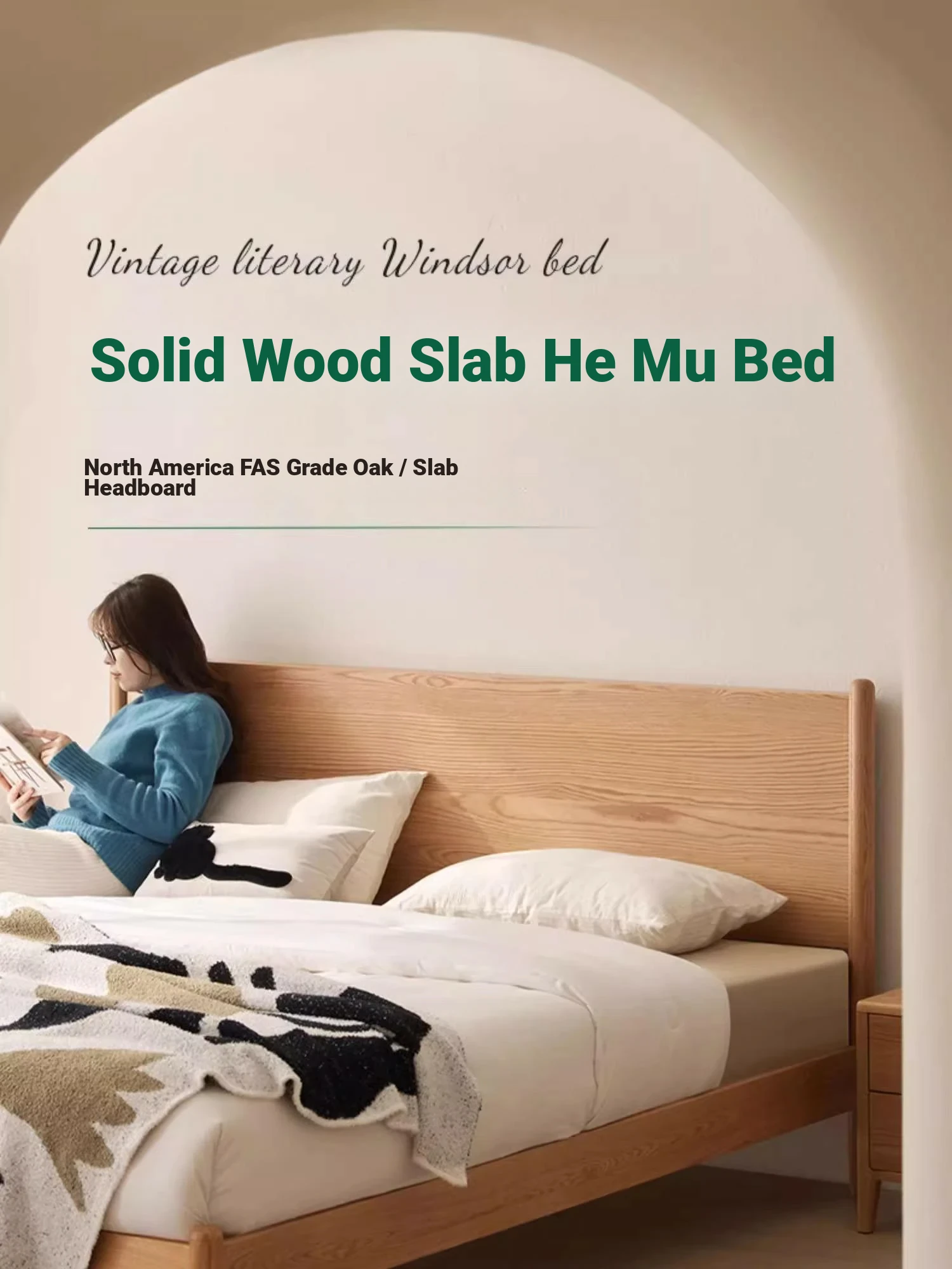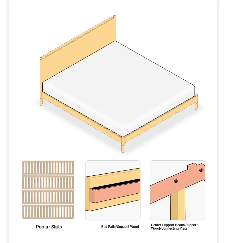 "Modern Minimalist Solid Oak Bed - 1.8m Double Bed with Natural Wood Finish for Master Bedroom - Stylish and Durable Design"