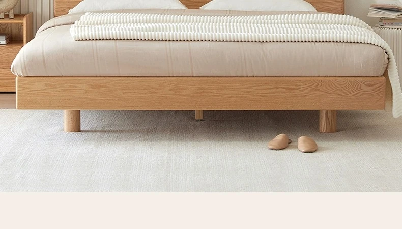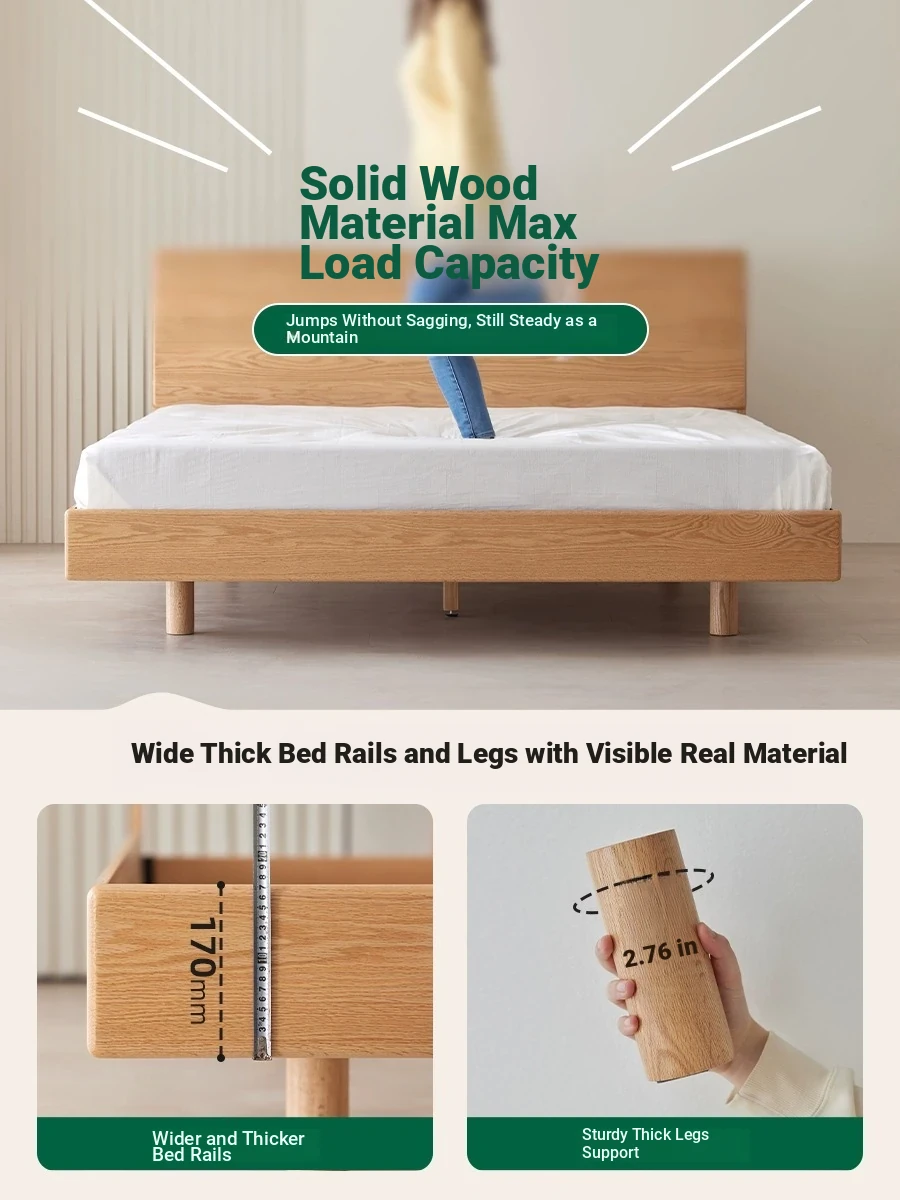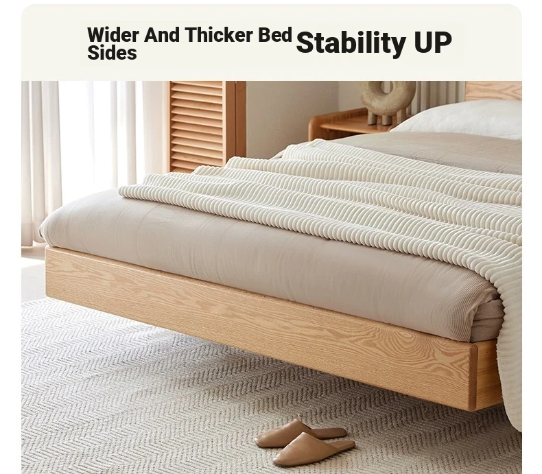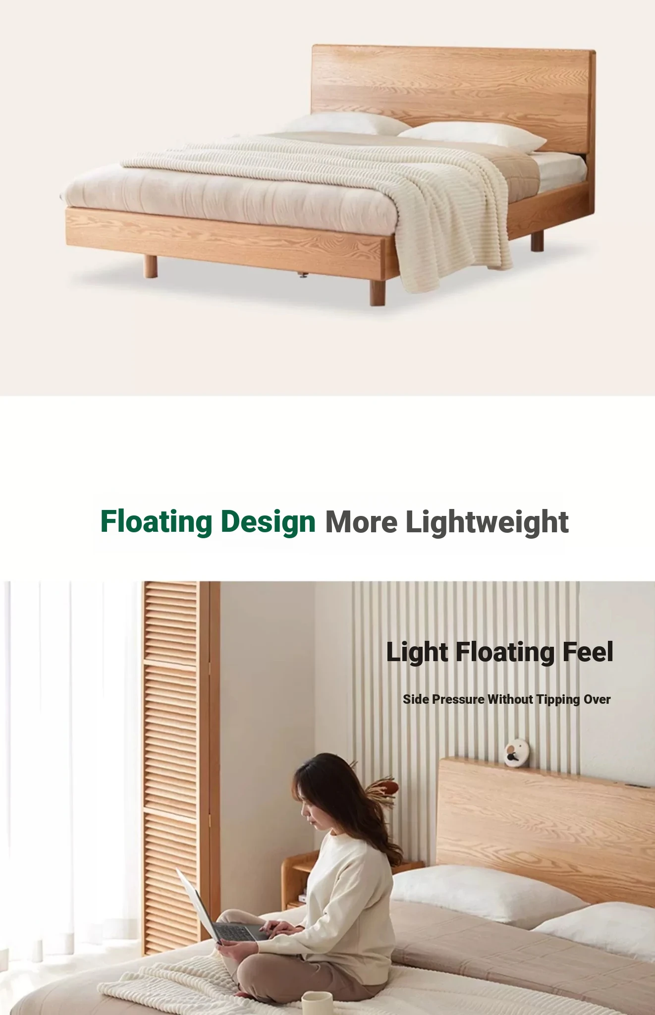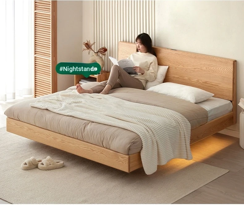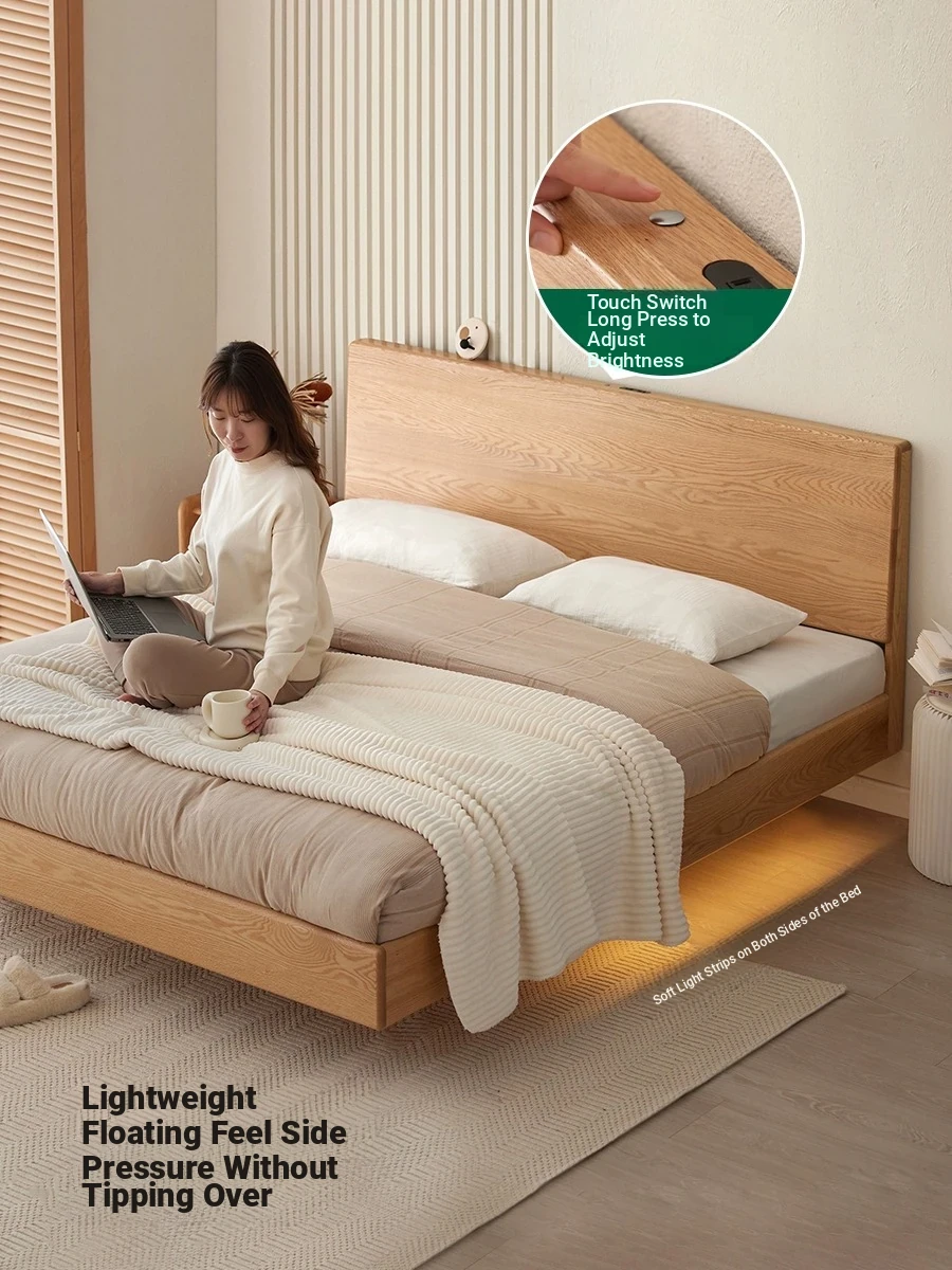 "Modern Minimalist Solid Oak Floating Bed for Small Spaces – Full Wooden Double Bed for Master Bedroom – Elegant Design for Cozy Living"