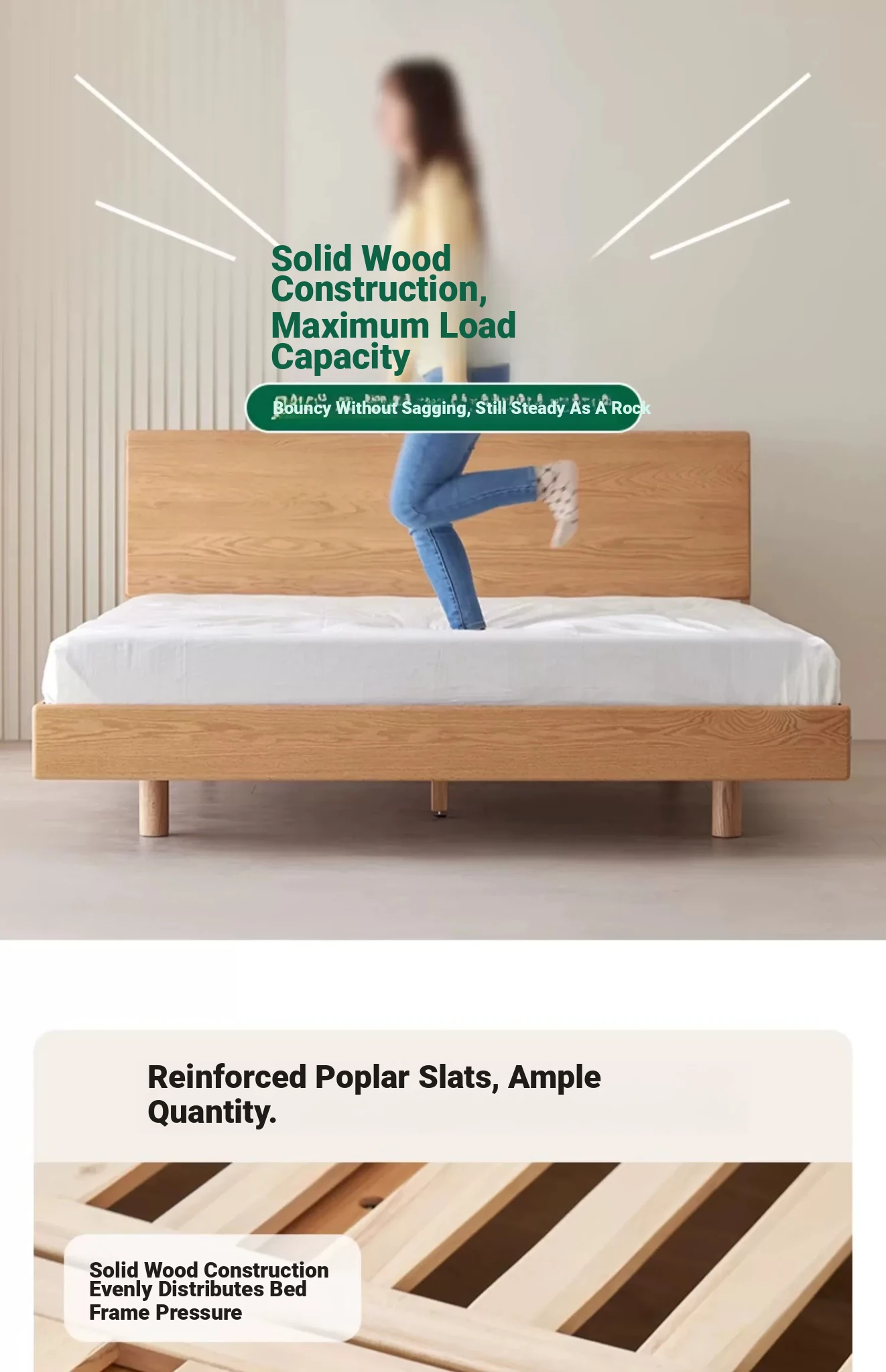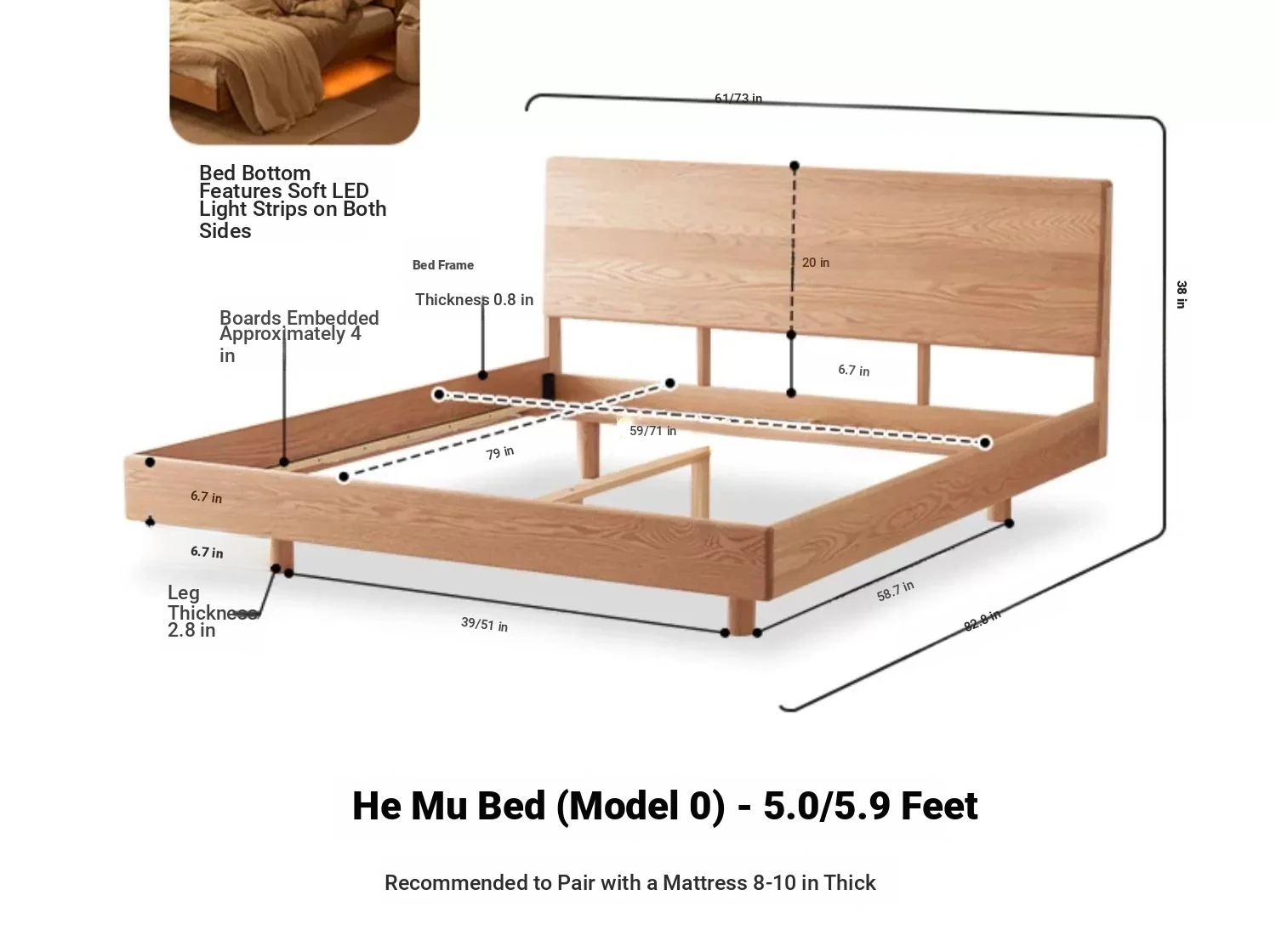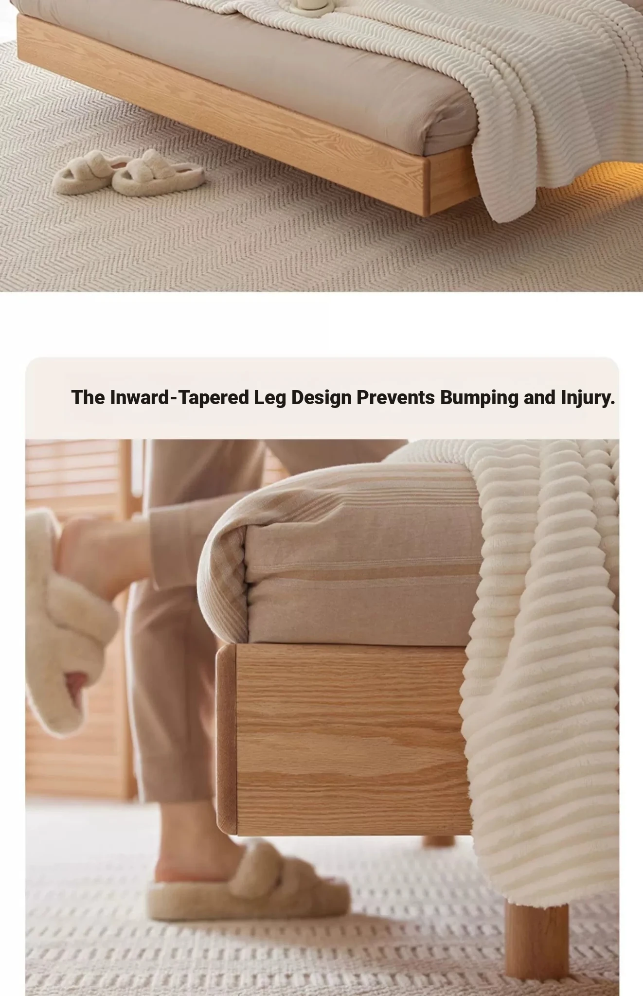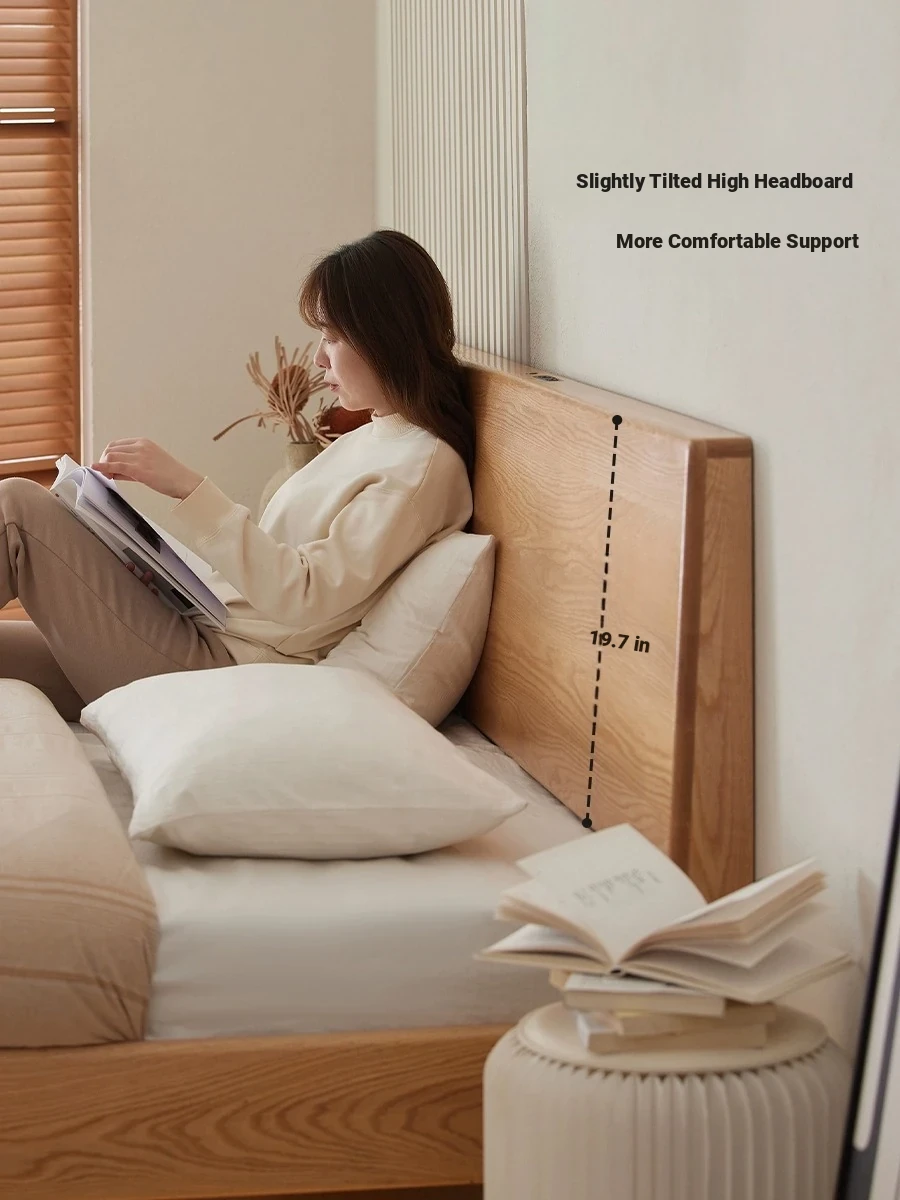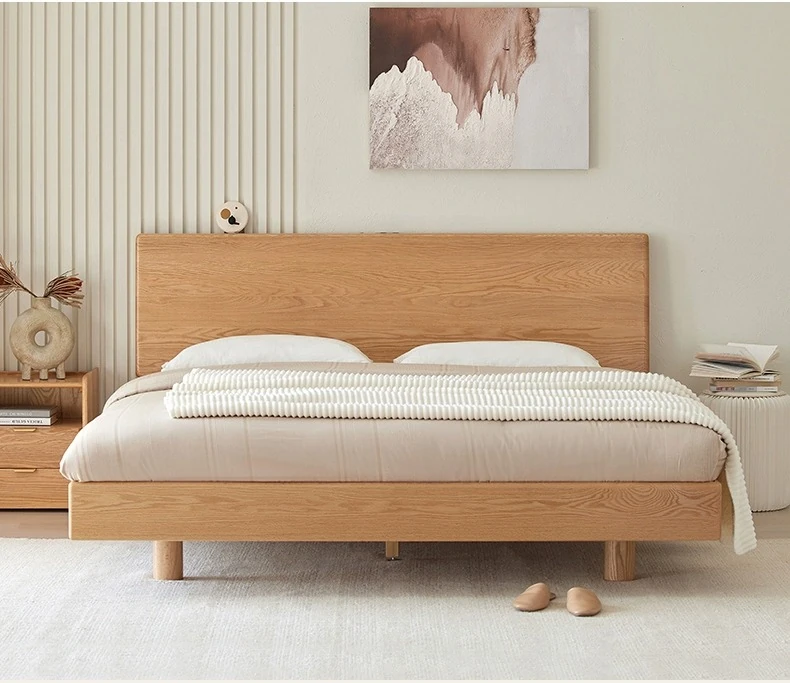 "Modern Minimalist Solid Oak Floating Bed for Small Spaces – Full Wooden Double Bed for Master Bedroom – Elegant Design for Cozy Living"