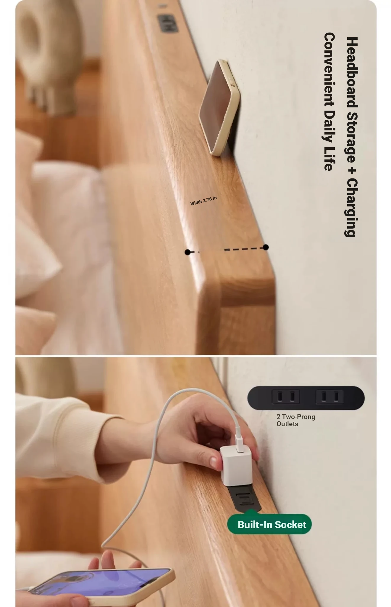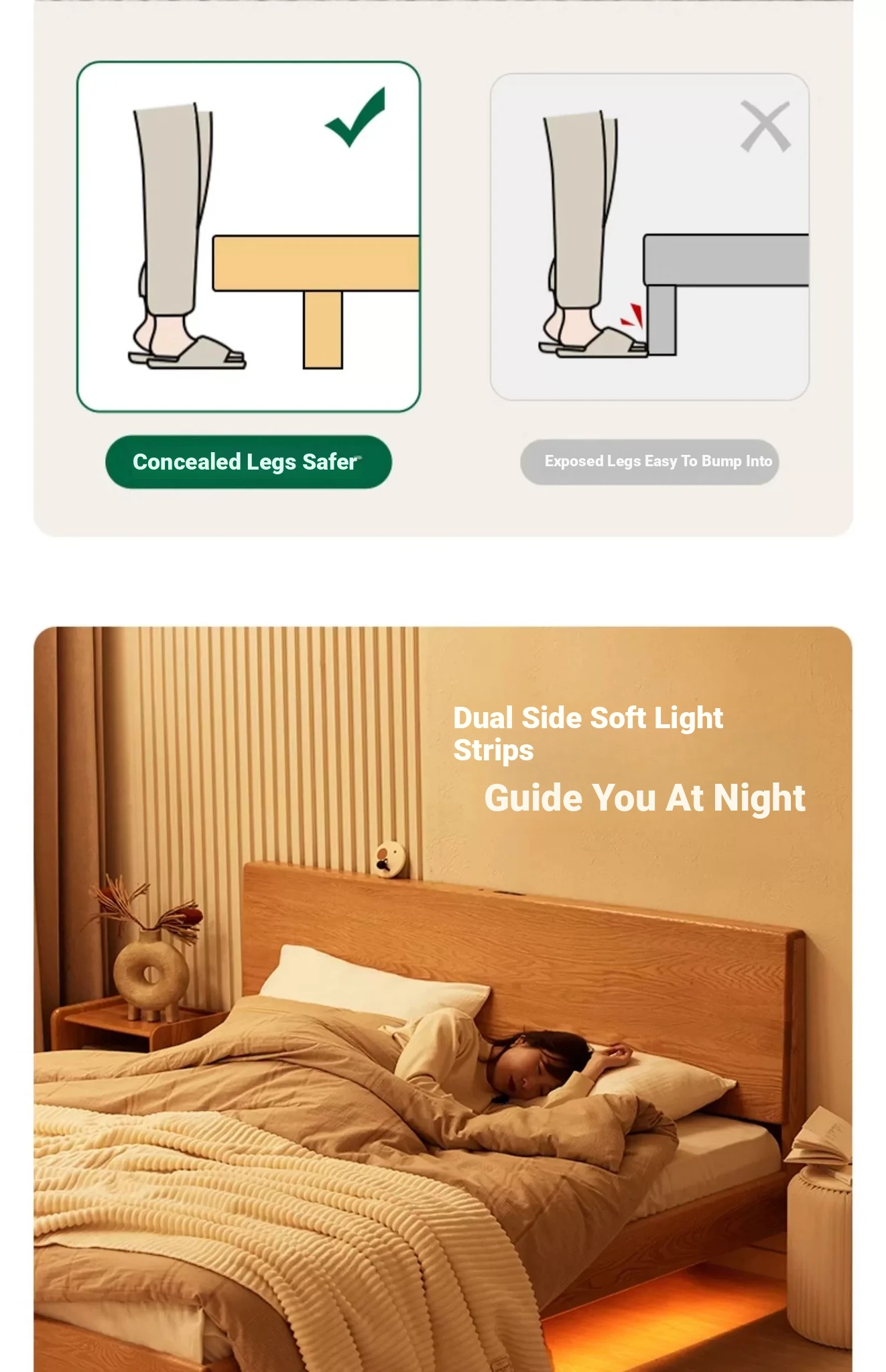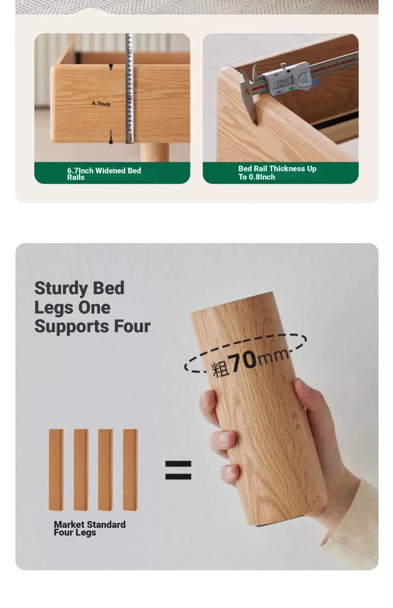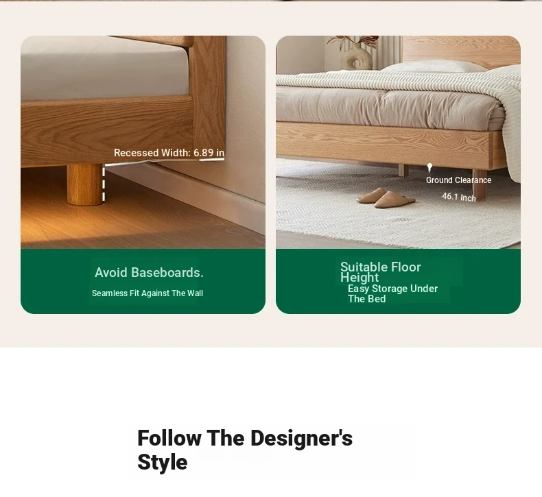 "Modern Minimalist Solid Oak Floating Bed for Small Spaces – Full Wooden Double Bed for Master Bedroom – Elegant Design for Cozy Living"