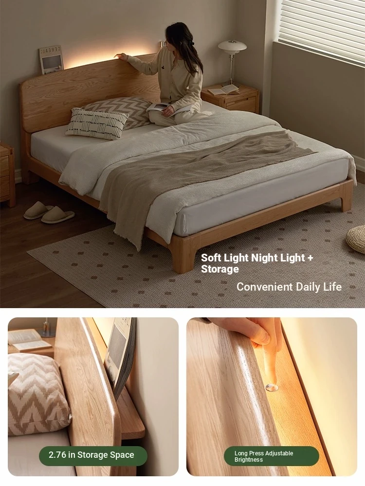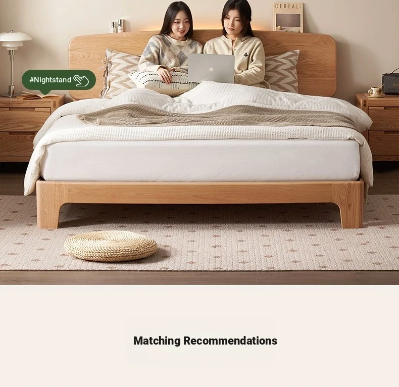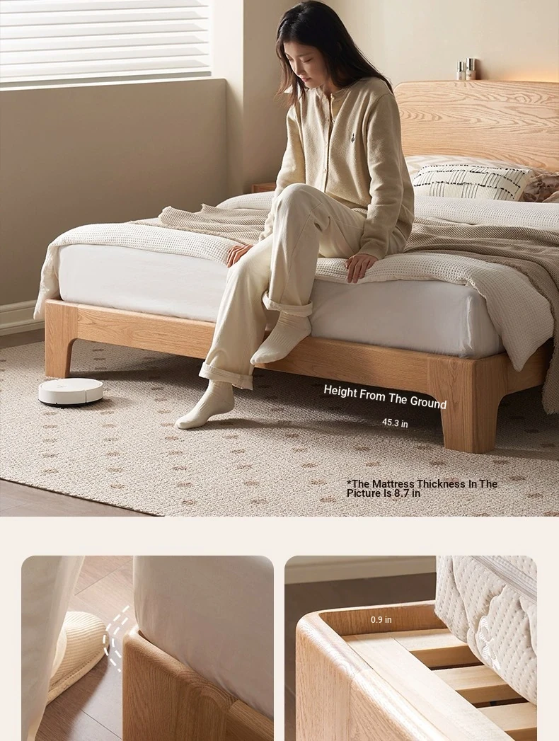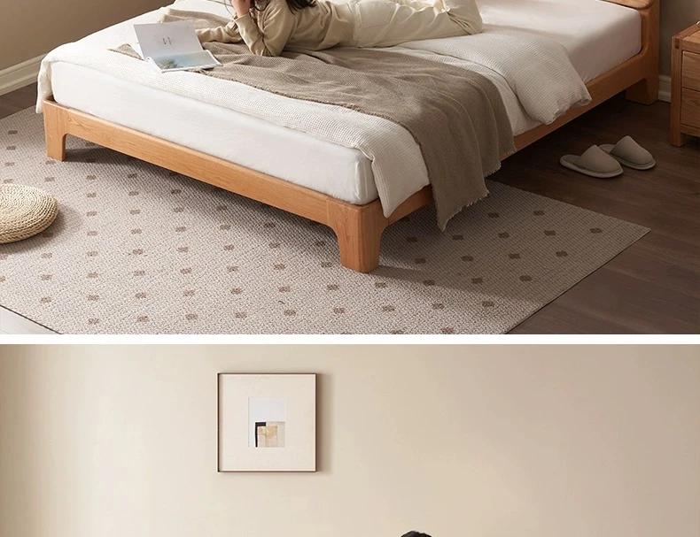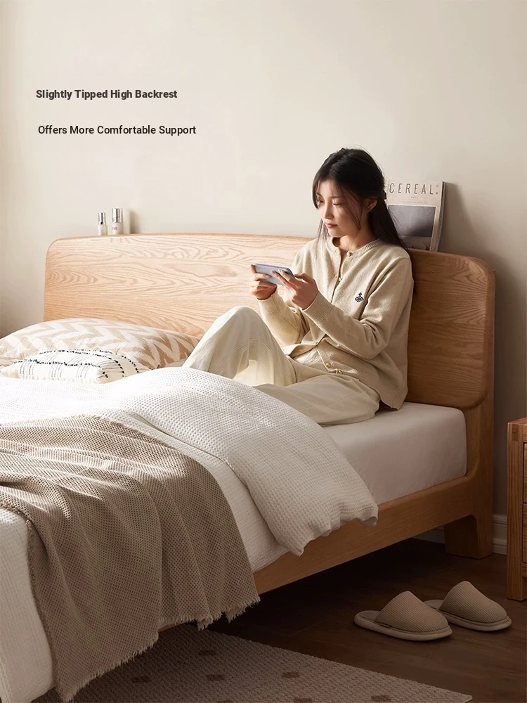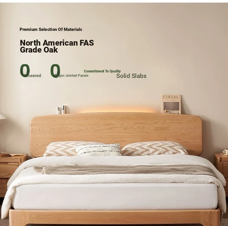 Modern Minimalist Solid Wood Bed - Oak Double Bed for Bedroom, King Size 1.5m/1.8m, Pure Natural Wood Design for Master Bedroom - Elegant, Durable & Stylish!