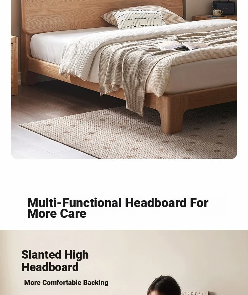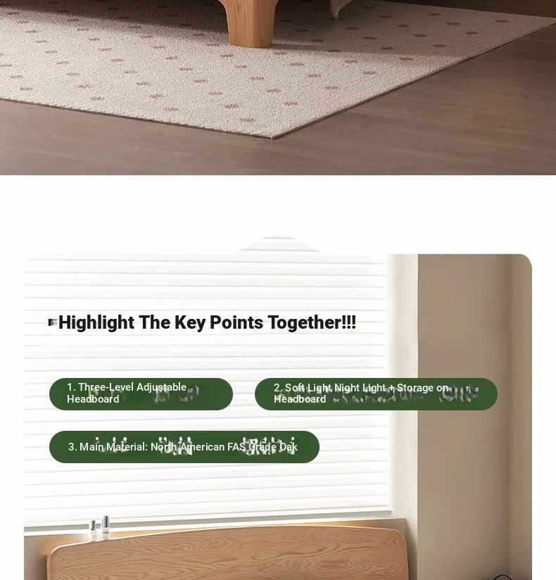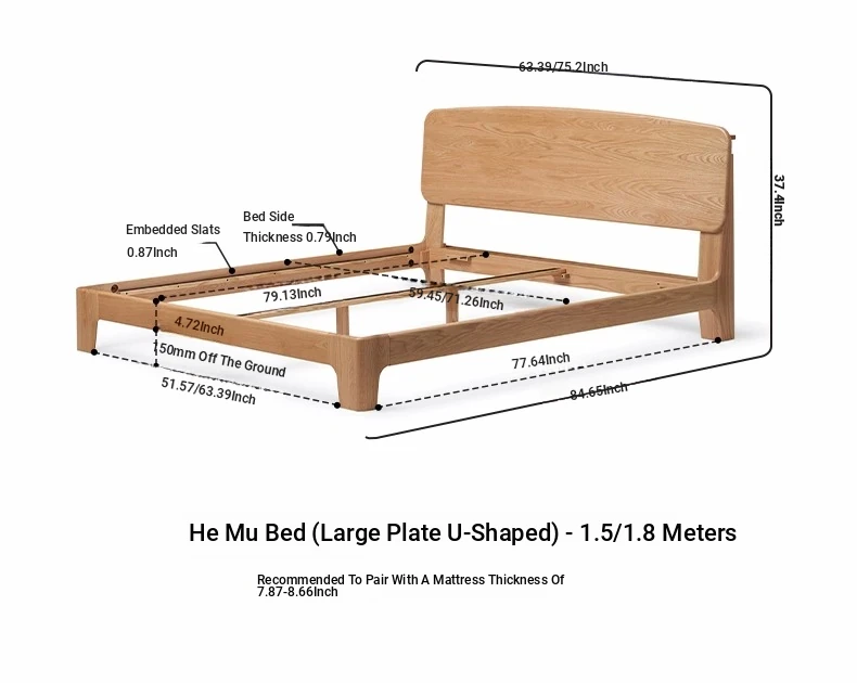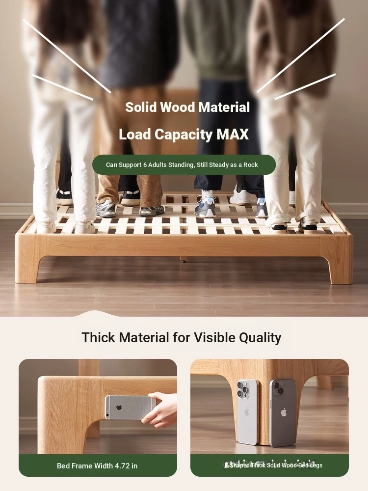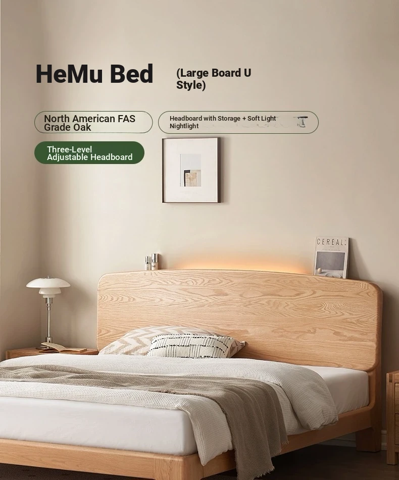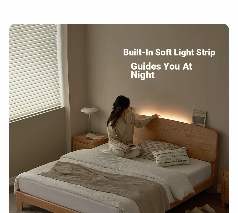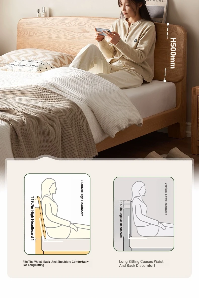 Modern Minimalist Solid Wood Bed - Oak Double Bed for Bedroom, King Size 1.5m/1.8m, Pure Natural Wood Design for Master Bedroom - Elegant, Durable & Stylish!