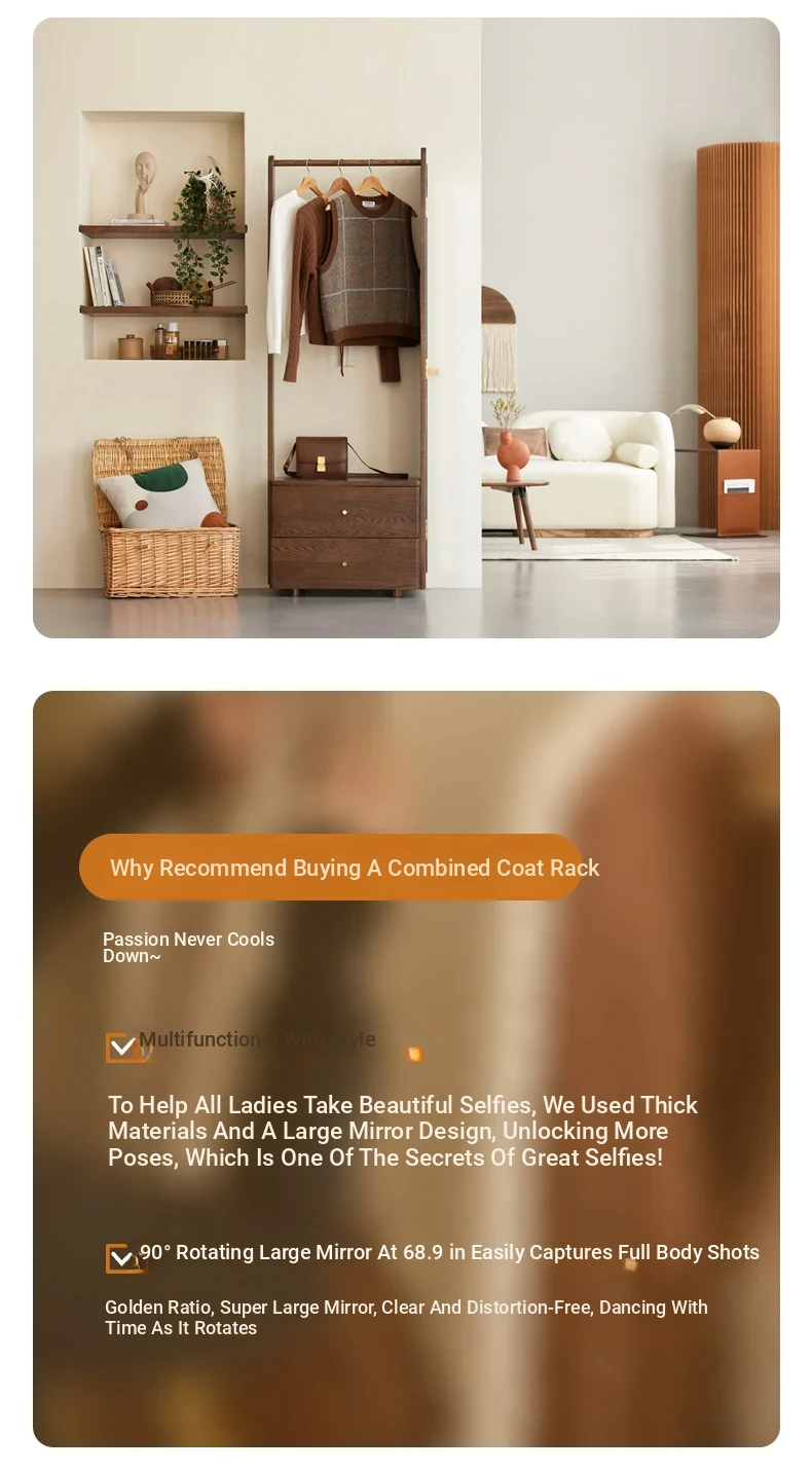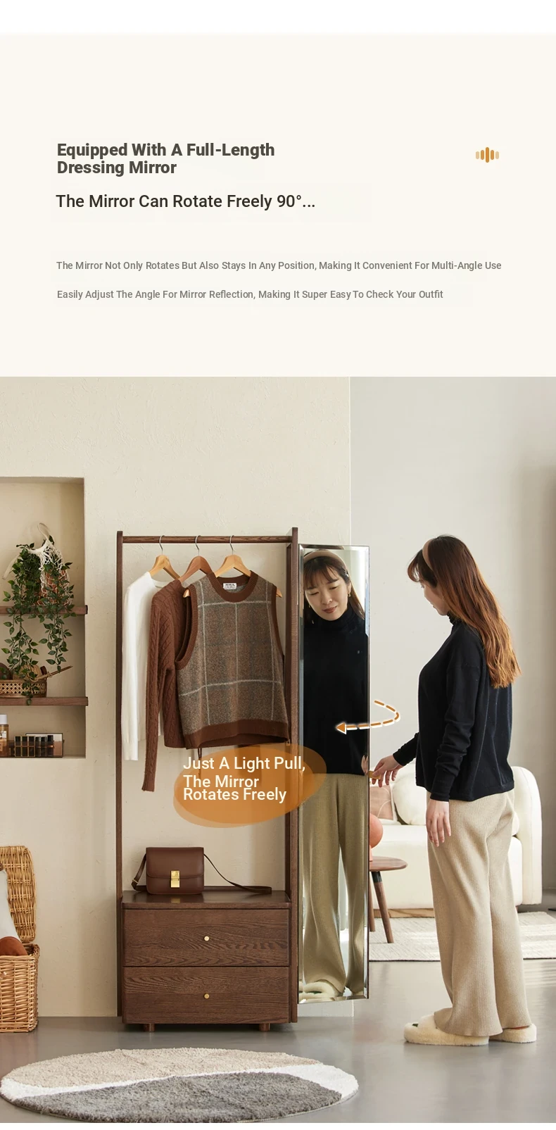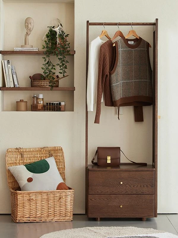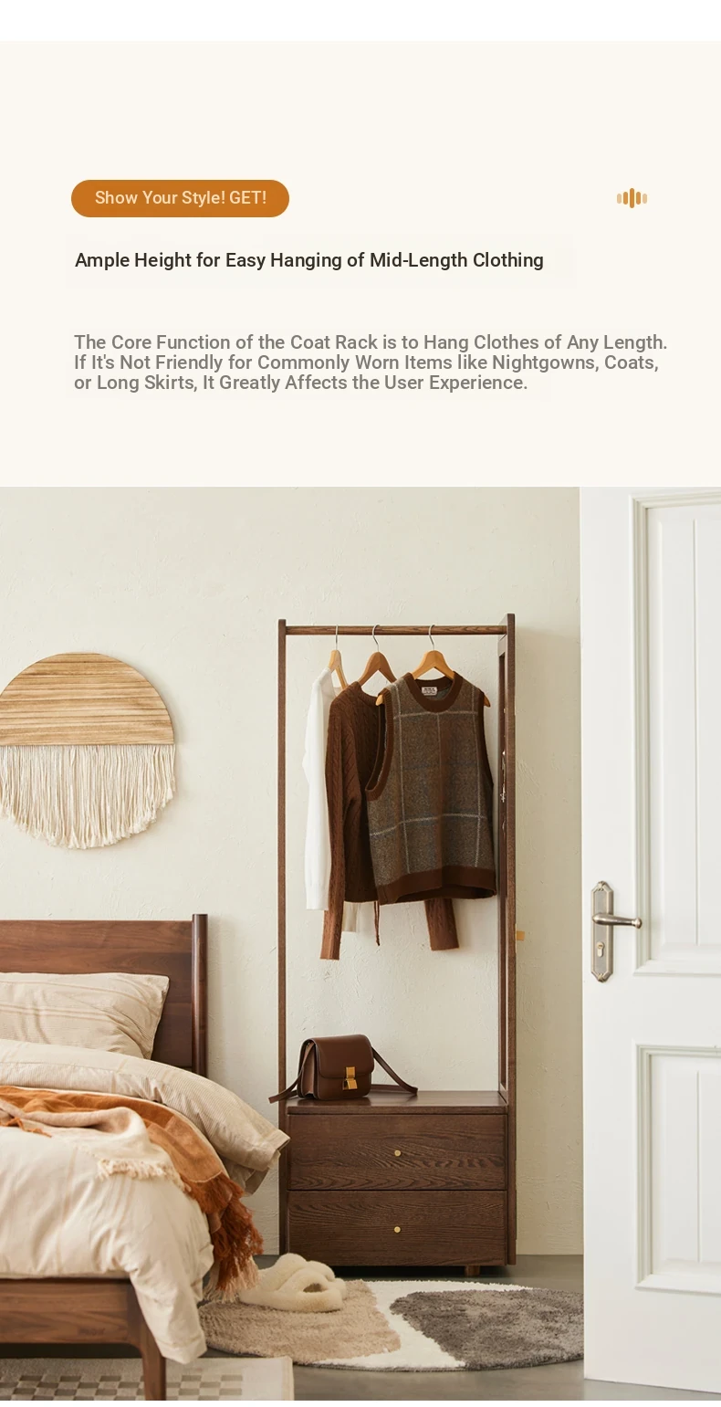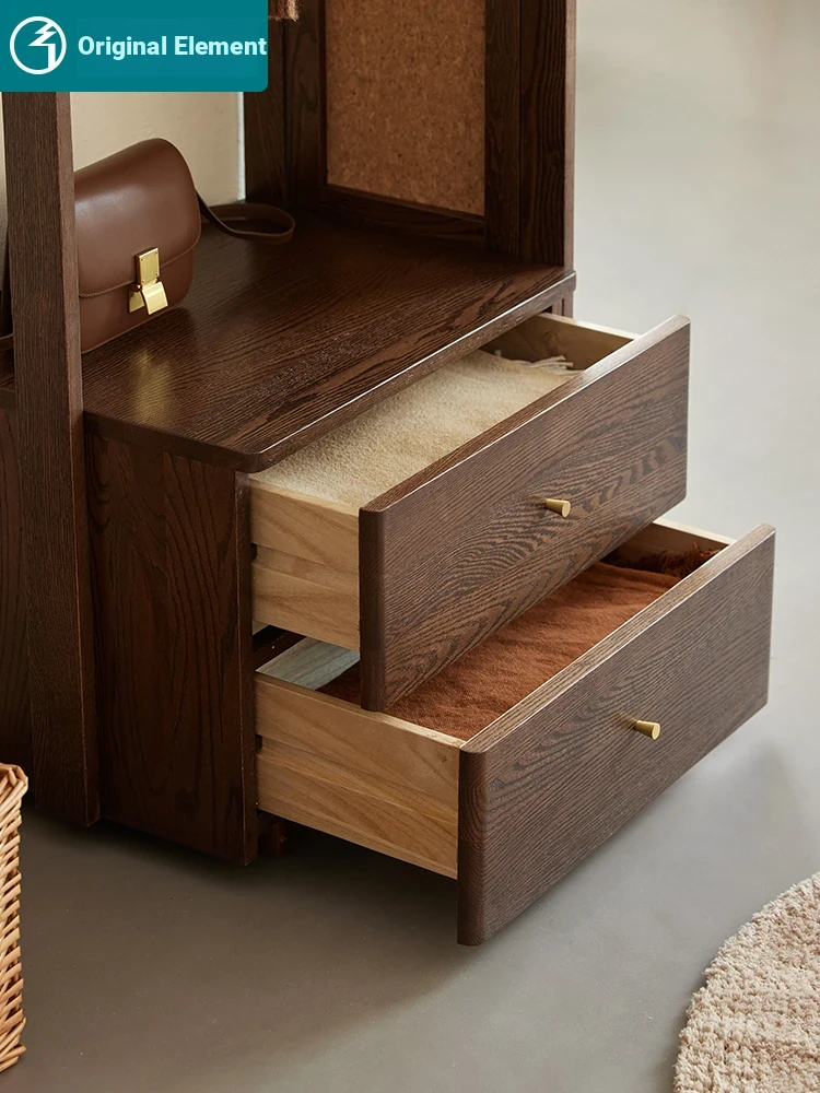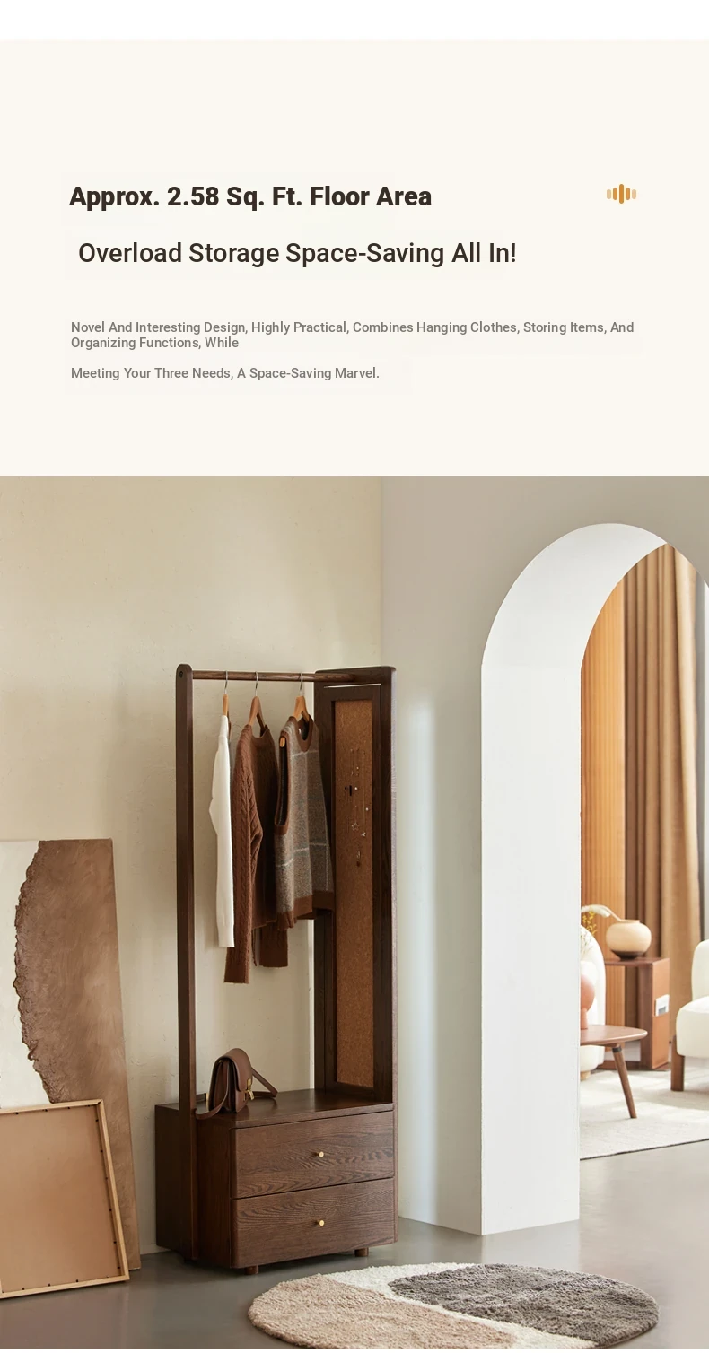 "Modern Minimalist Solid Wood Coat Rack with Dressing Mirror and Shoe Bench – Perfect for Small Bedrooms"