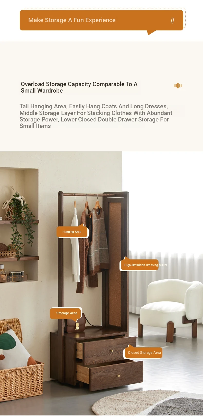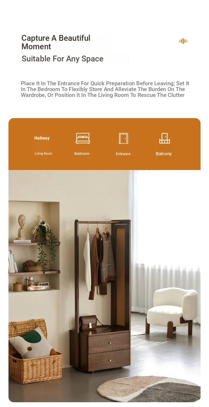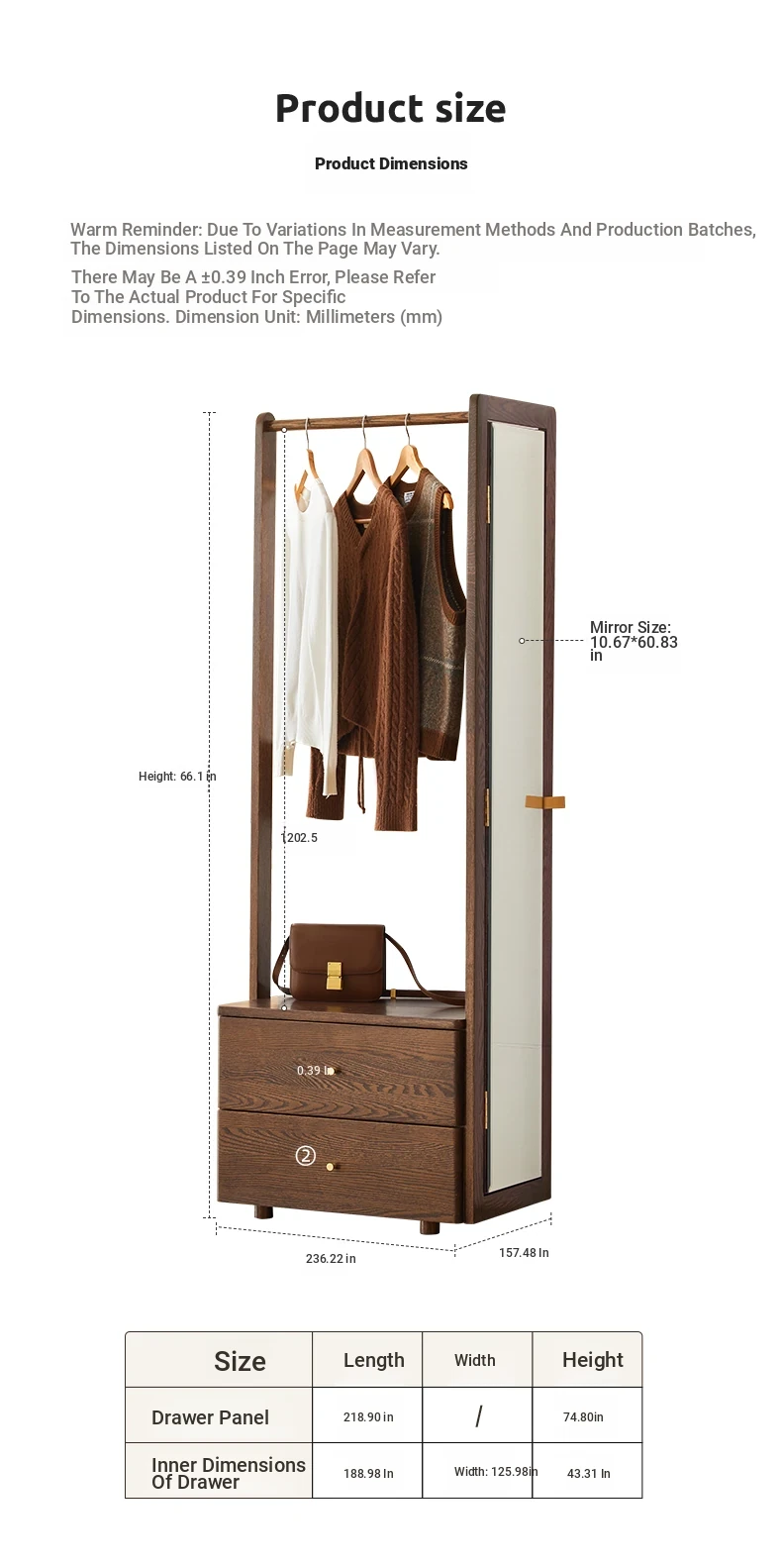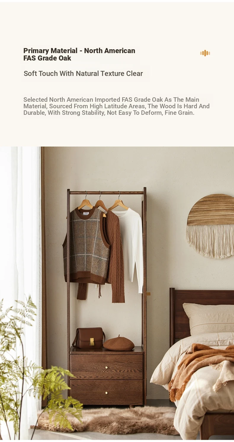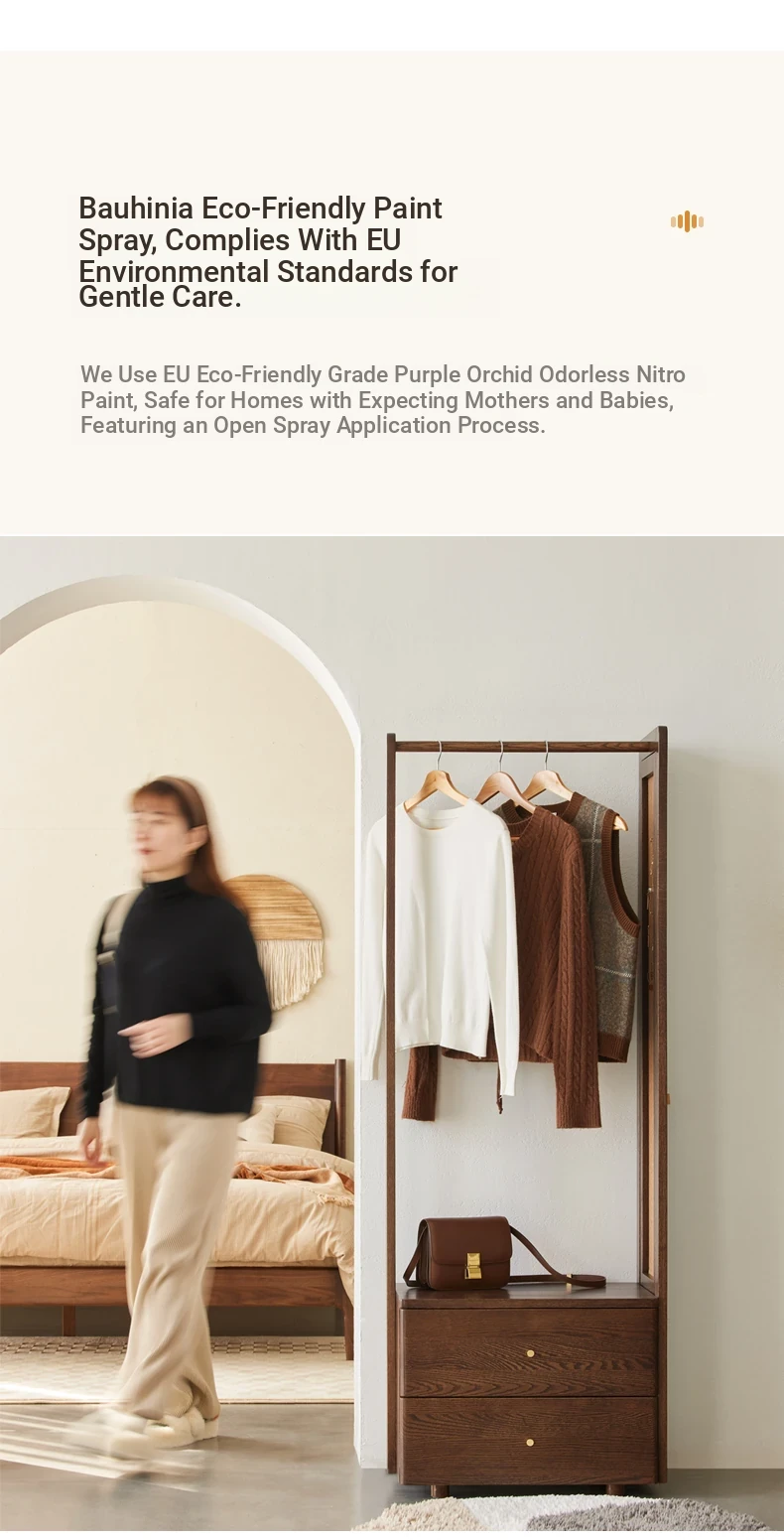 "Modern Minimalist Solid Wood Coat Rack with Dressing Mirror and Shoe Bench – Perfect for Small Bedrooms"