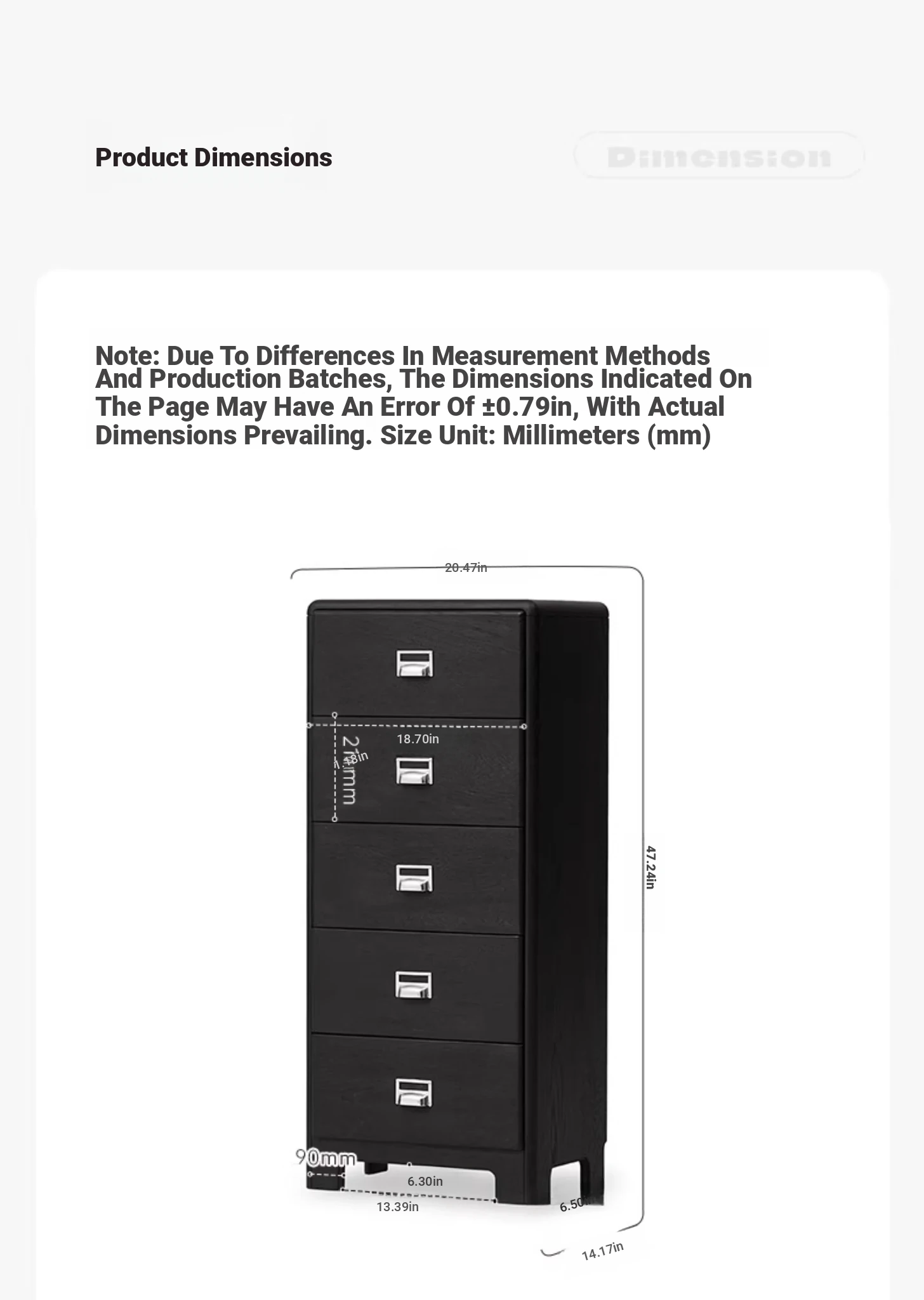 Smoky color-narrow 20.47 in chest of drawers (20.47in*14.17in*47.24in)