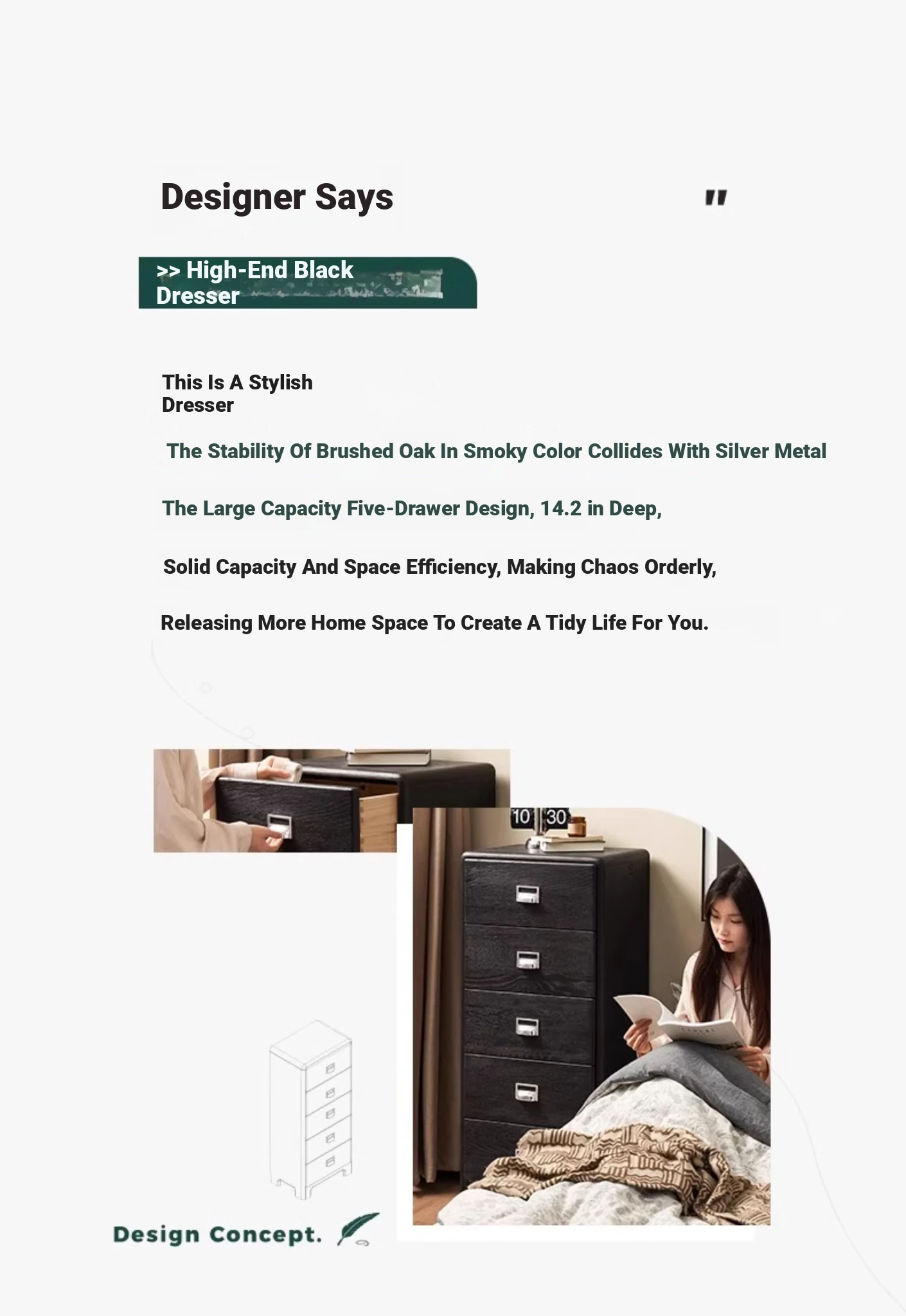 "Modern Minimalist Solid Wood Five-Drawer Dresser - Perfect Storage Solution for Small Spaces & Bedrooms - Stylish & Functional Organizing Cabinet for Your Home"