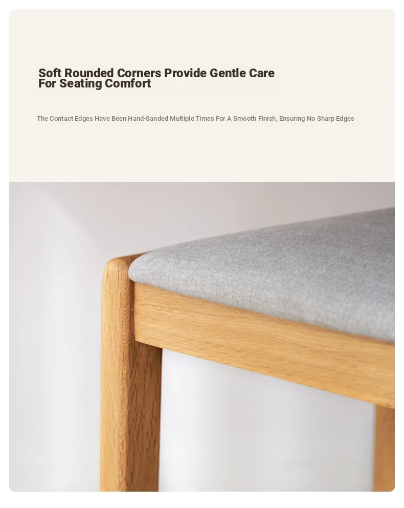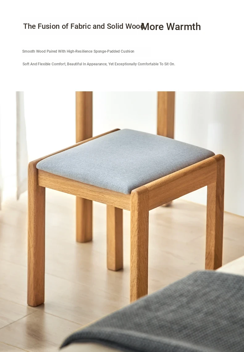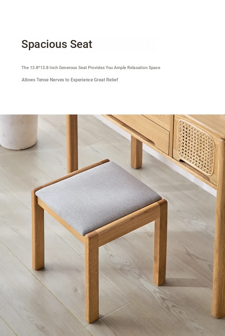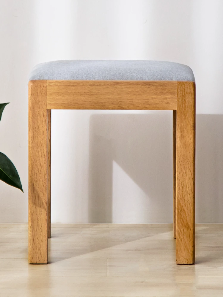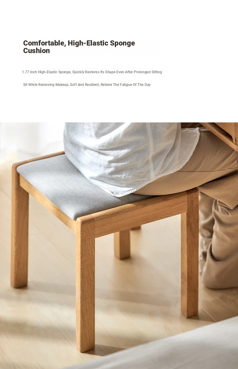 "Modern Minimalist Solid Wood Makeup Stool - Oak Vanity Bench for Small Spaces, Soft Padded Design, Perfect for Bedroom Décor"