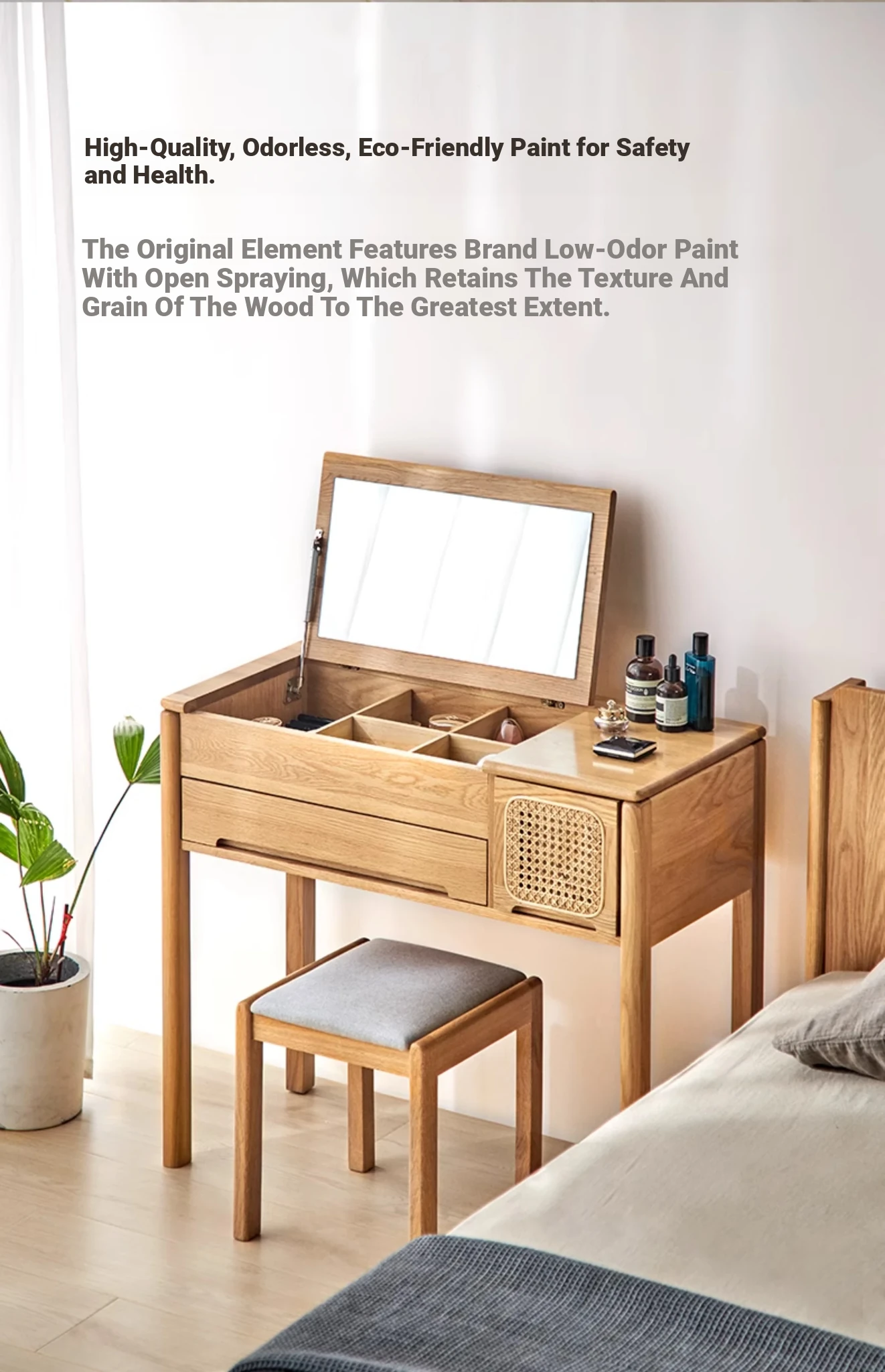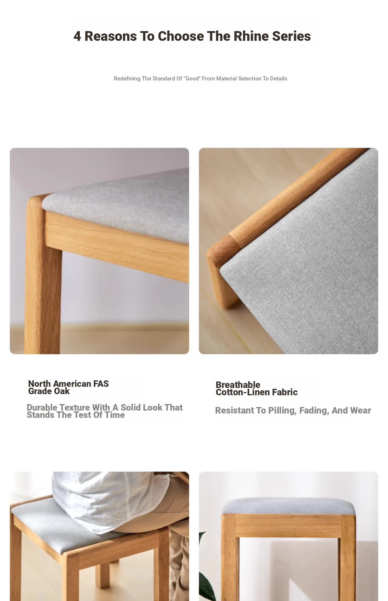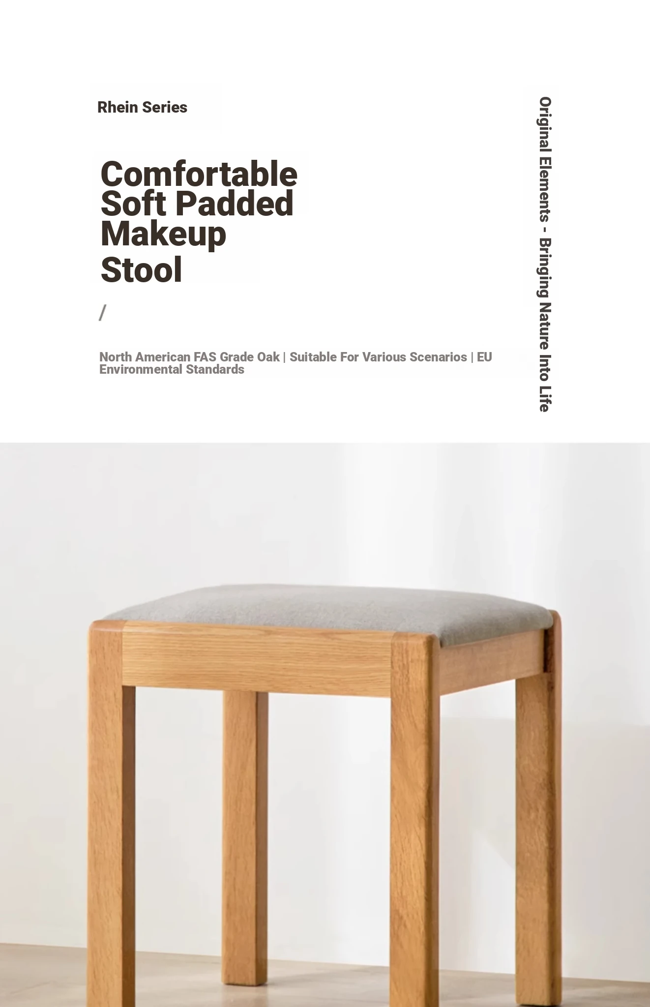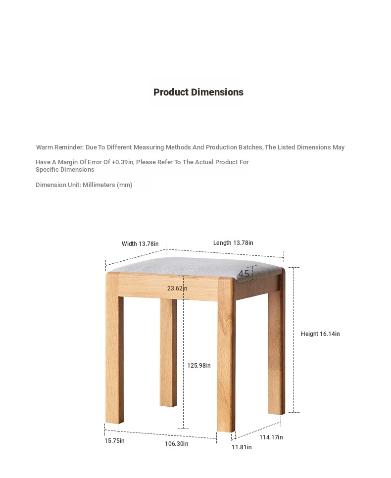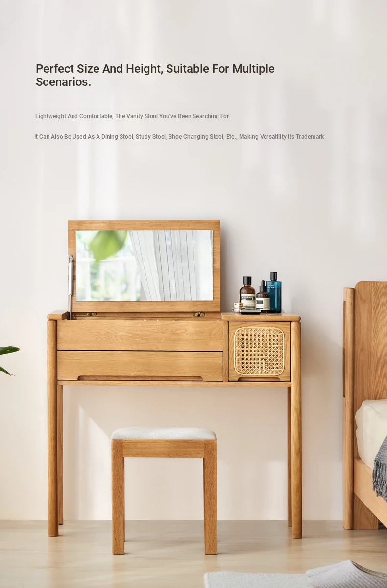 "Modern Minimalist Solid Wood Makeup Stool - Oak Vanity Bench for Small Spaces, Soft Padded Design, Perfect for Bedroom Décor"