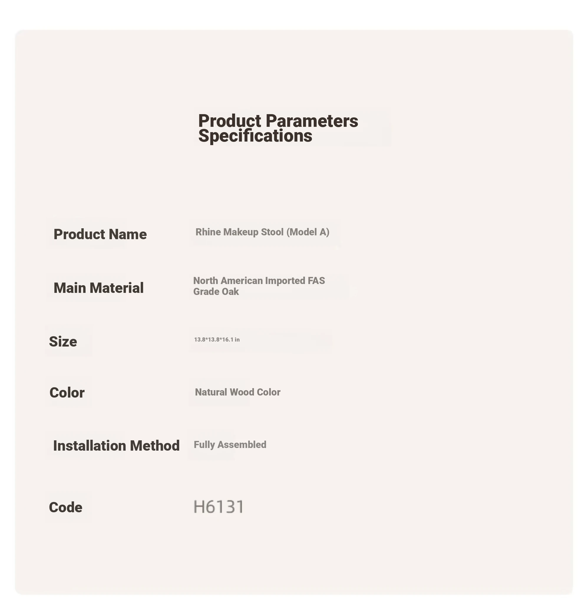Log color-oak dressing stool (13.78in*13.78in*16.14in)