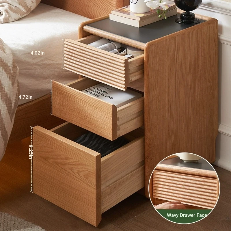 [Oak-Log Color] Hemu Bedside Table (G) Narrow and Three Smokes