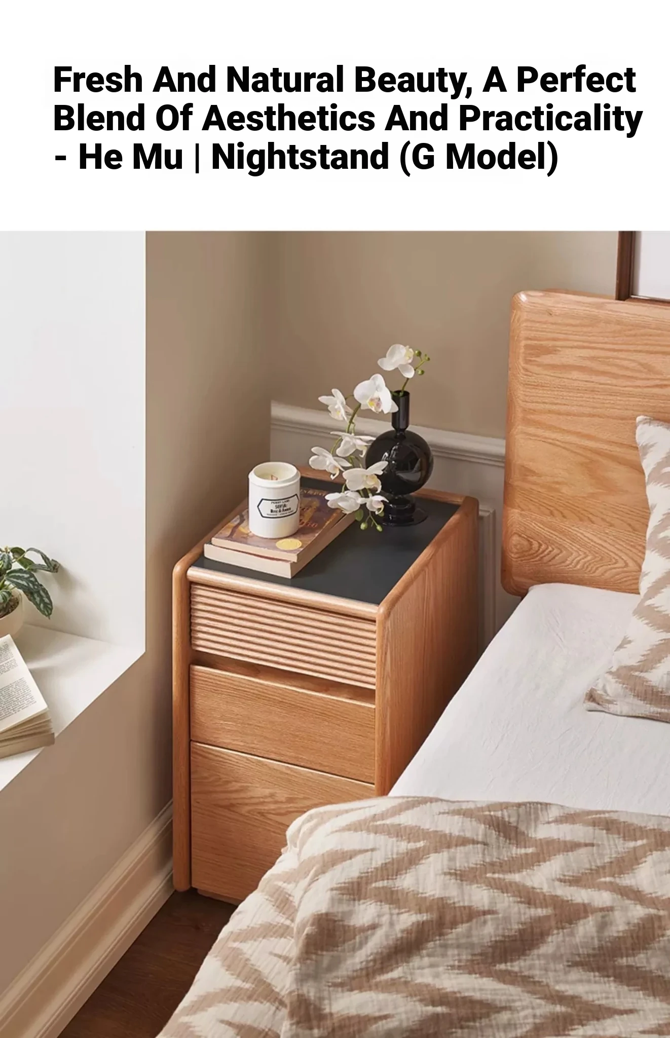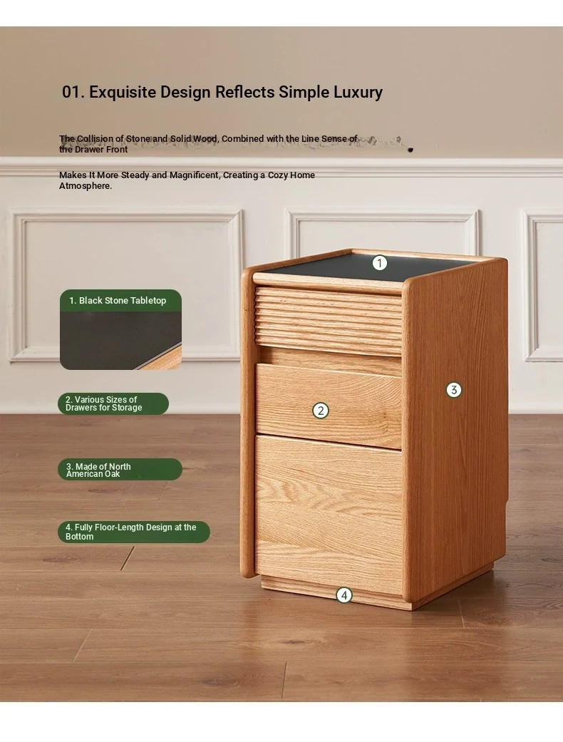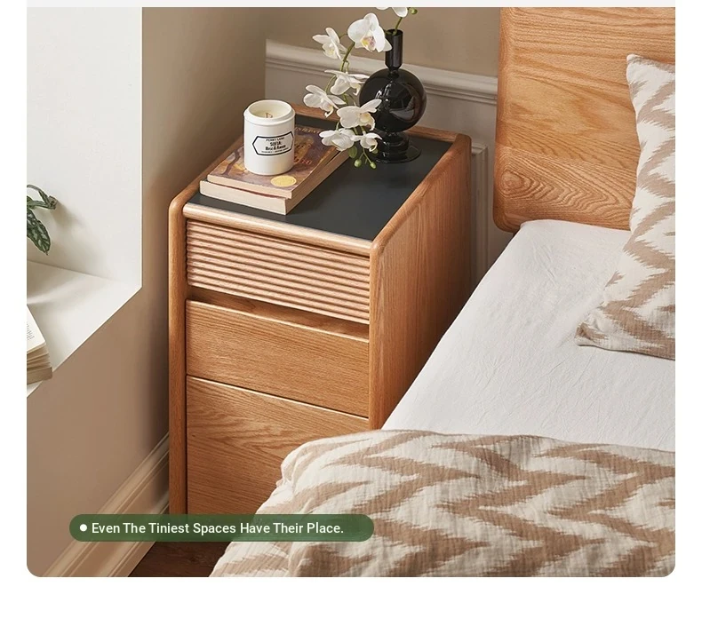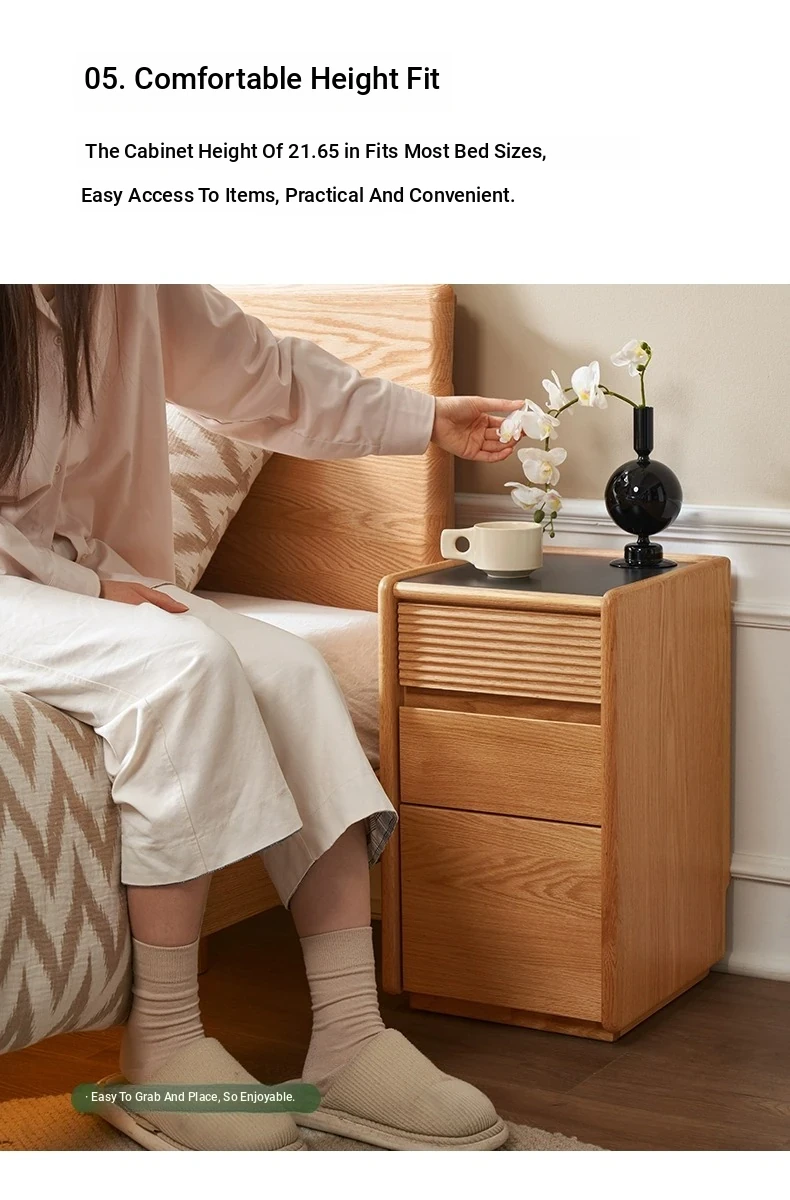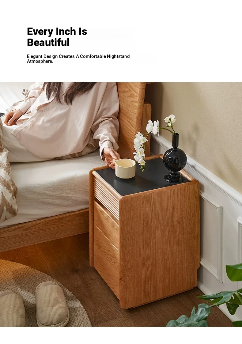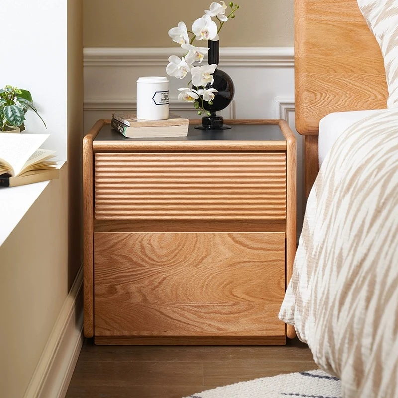 "Modern Minimalist Solid Wood Nightstand - Compact Bedside Storage Cabinet for Your Bedroom, Perfect for Small Spaces"