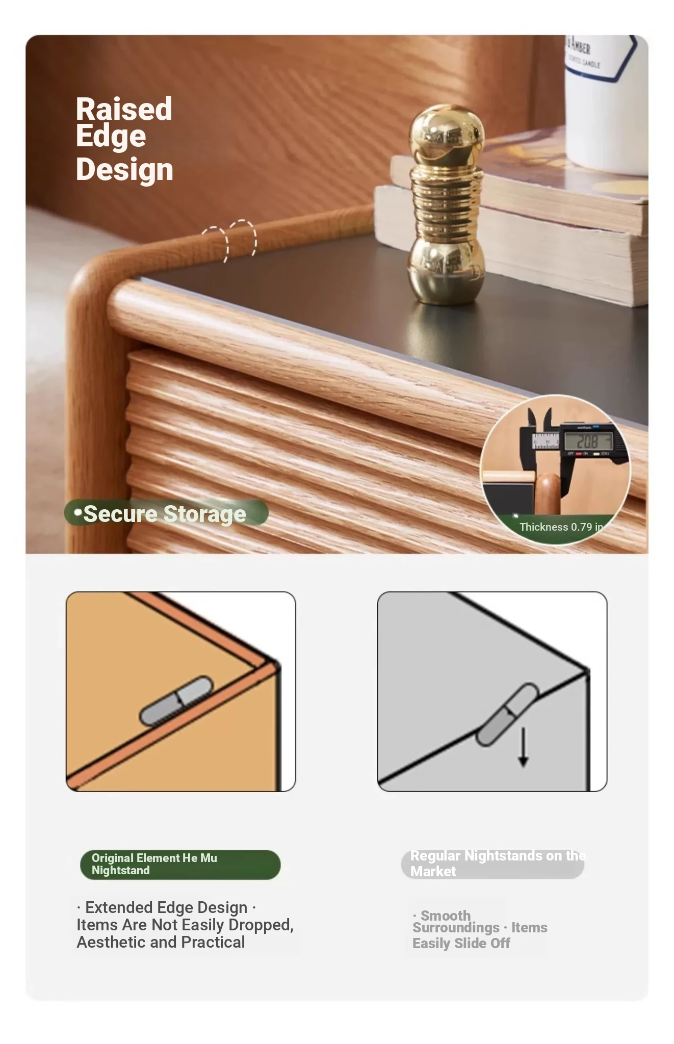Hemu bedside table (G solid wood noodles)-narrow three smoke