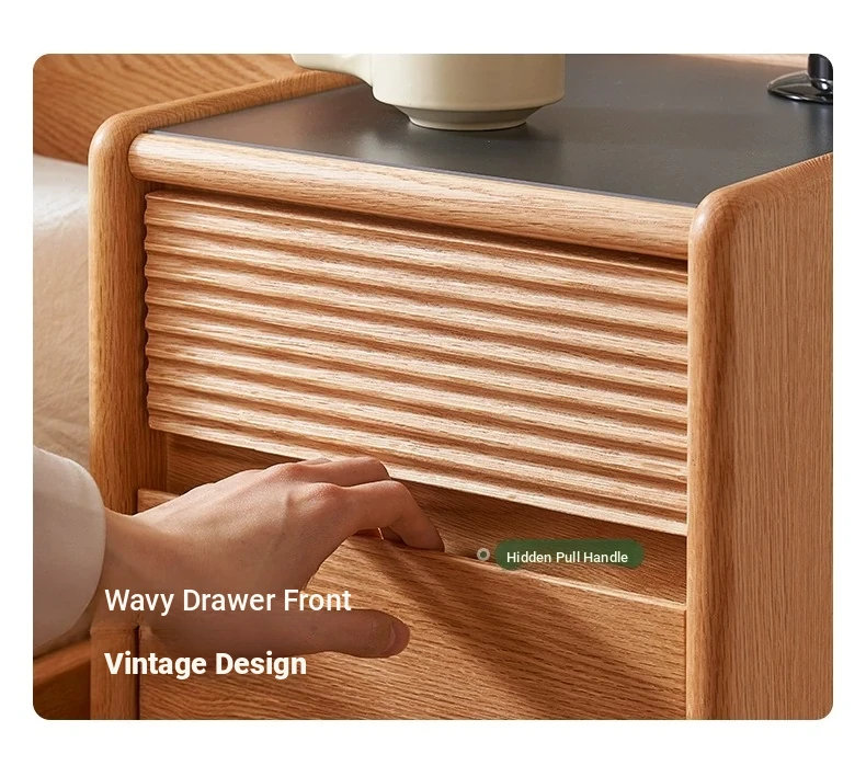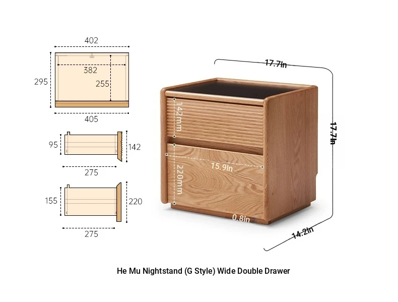 [Oak-Log Color] Hemu Bedside Table (G) Wide Double Pumping