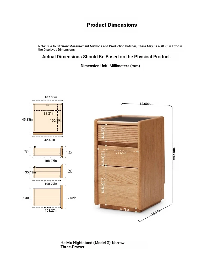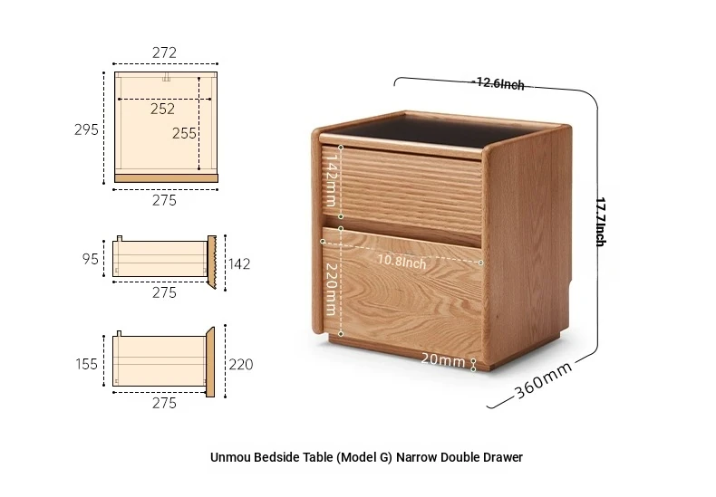 [Oak-Log Color] Hemu Bedside Table (G) Narrow Double Pumping