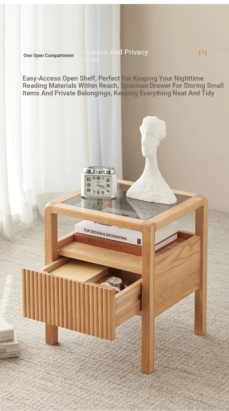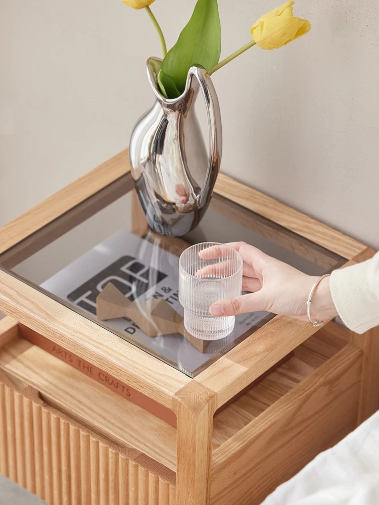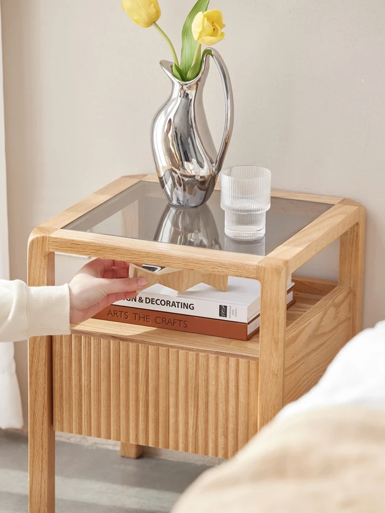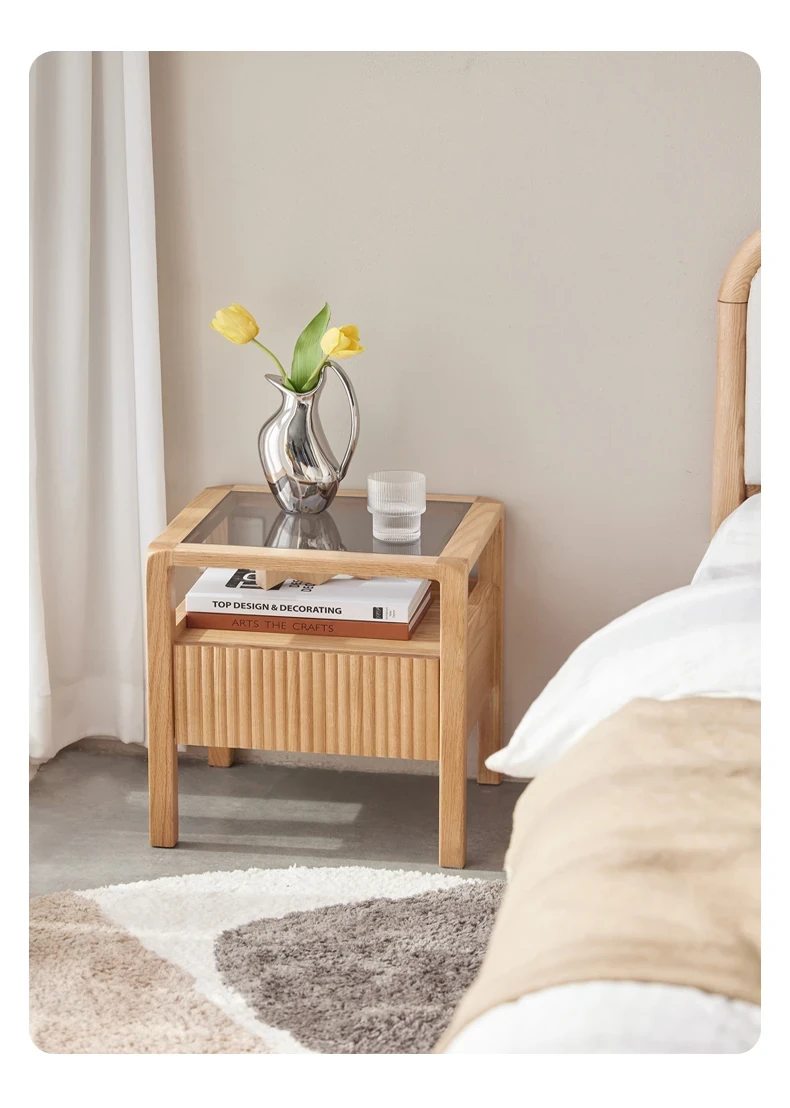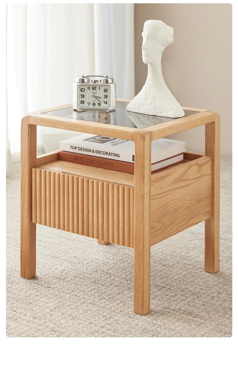Modern Minimalist Solid Wood Nightstand - Scandinavian Style Oak Bedside Storage Cabinet for Bedroom Organization