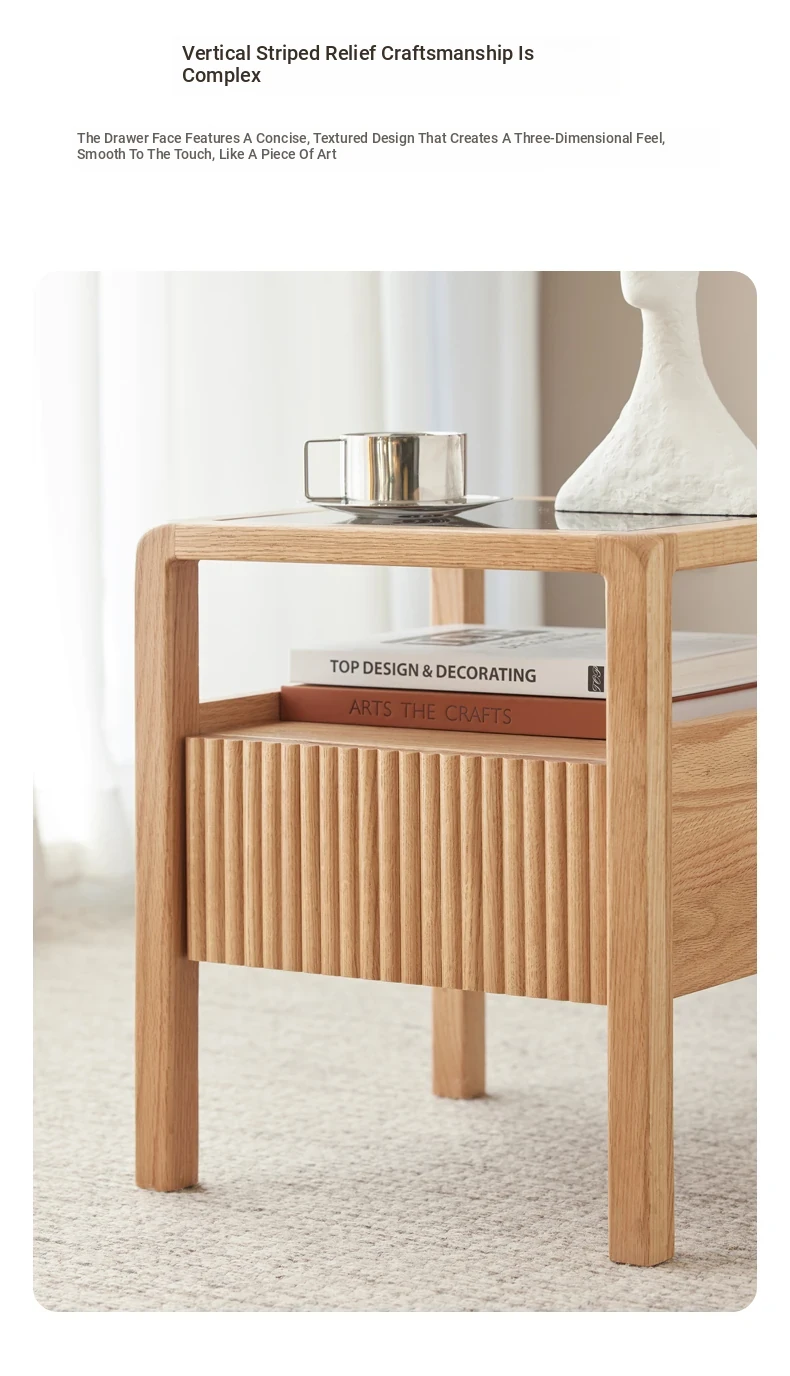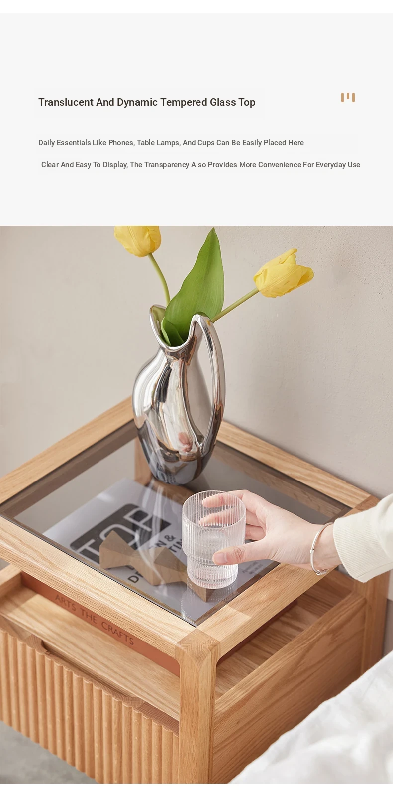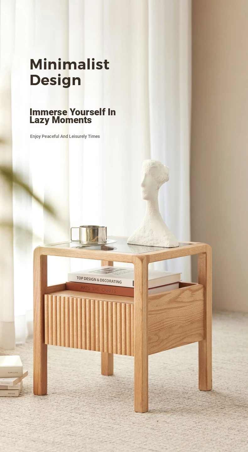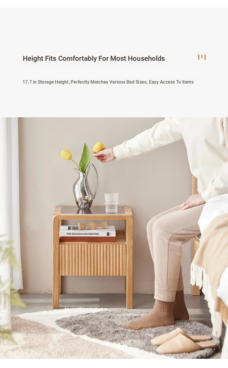 Modern Minimalist Solid Wood Nightstand - Scandinavian Style Oak Bedside Storage Cabinet for Bedroom Organization