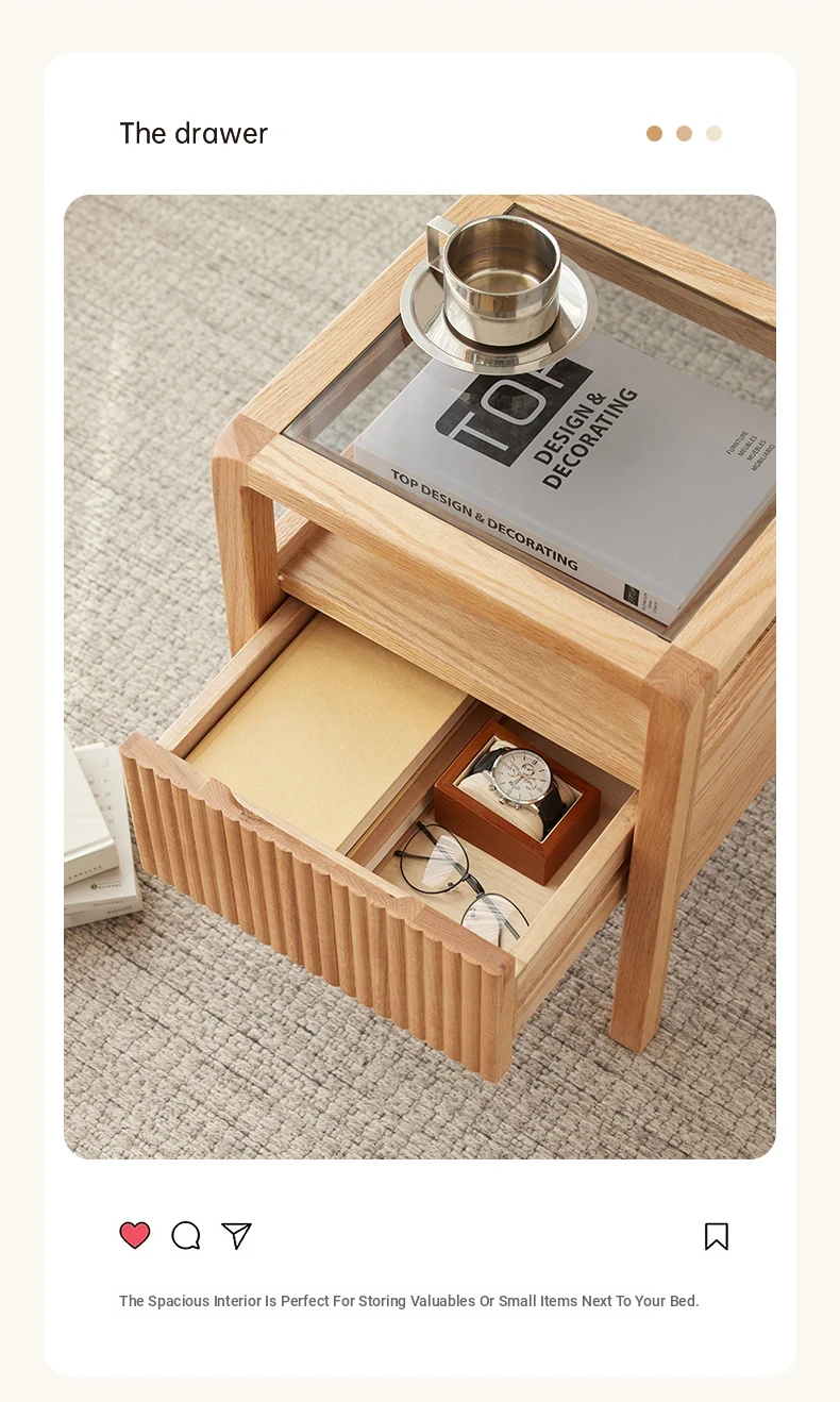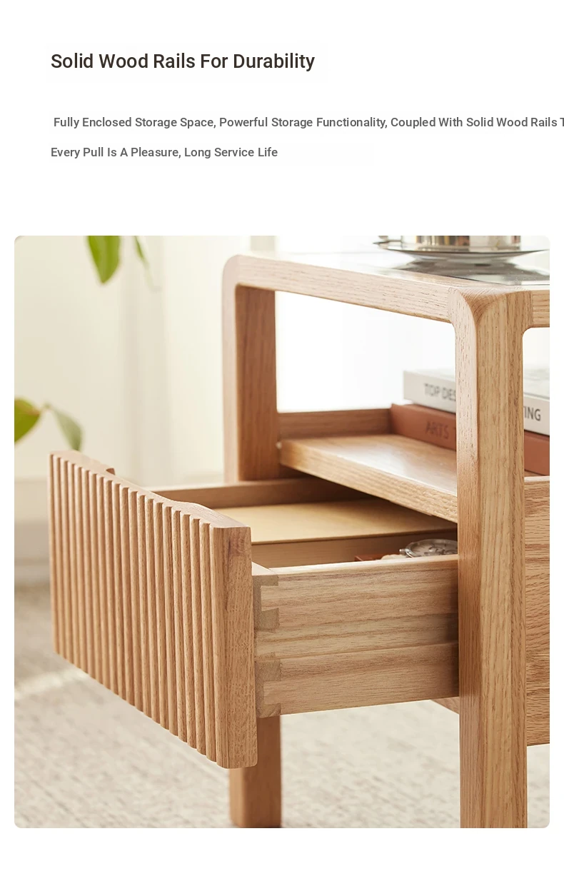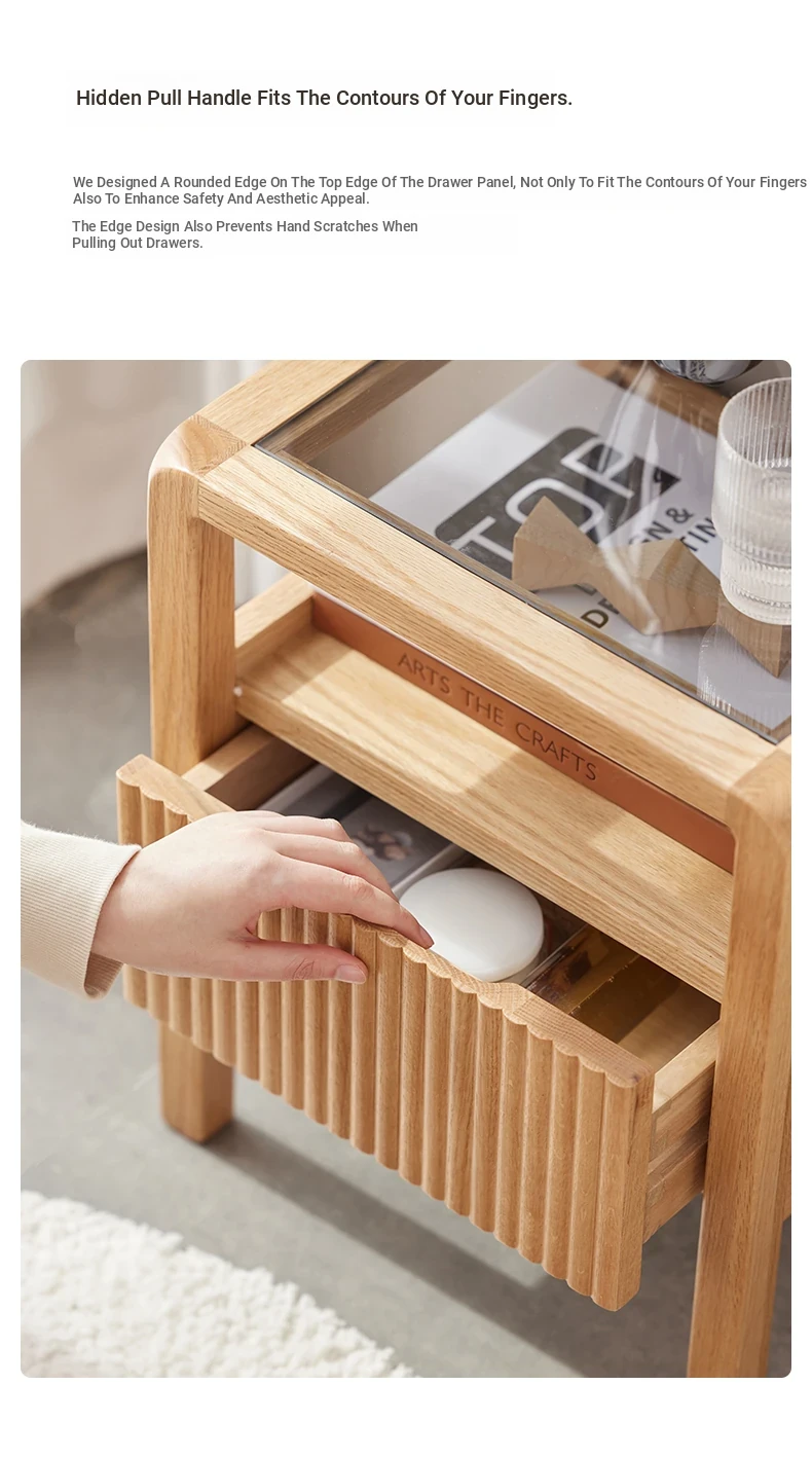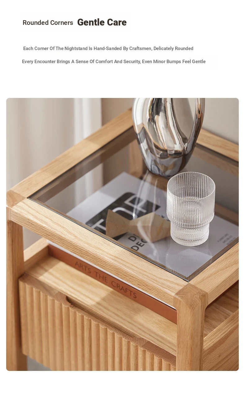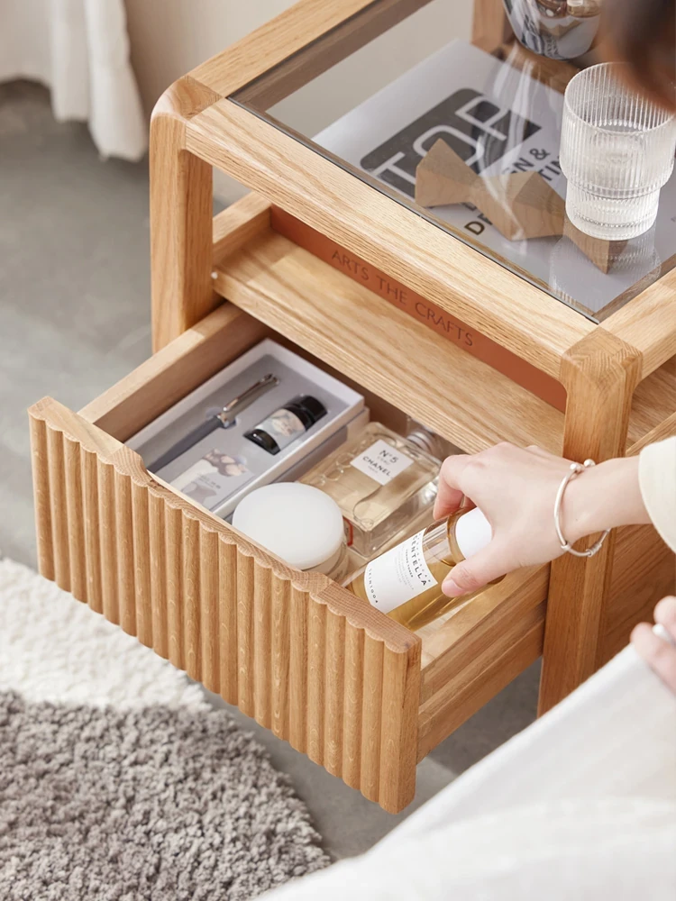Modern Minimalist Solid Wood Nightstand - Scandinavian Style Oak Bedside Storage Cabinet for Bedroom Organization