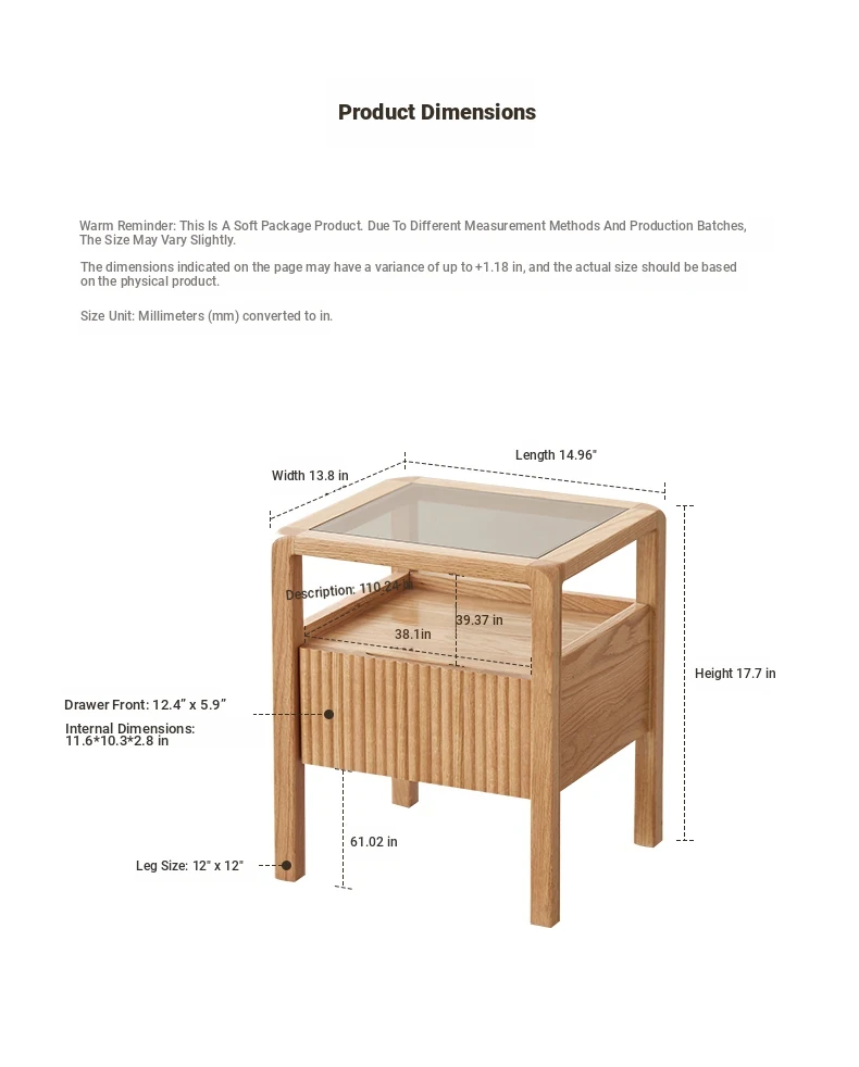 Log Color-Oak Bedside Cabinet (K3023)(14.96in*13.78in*17.72in)