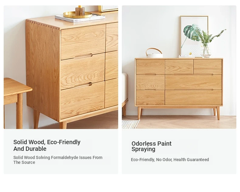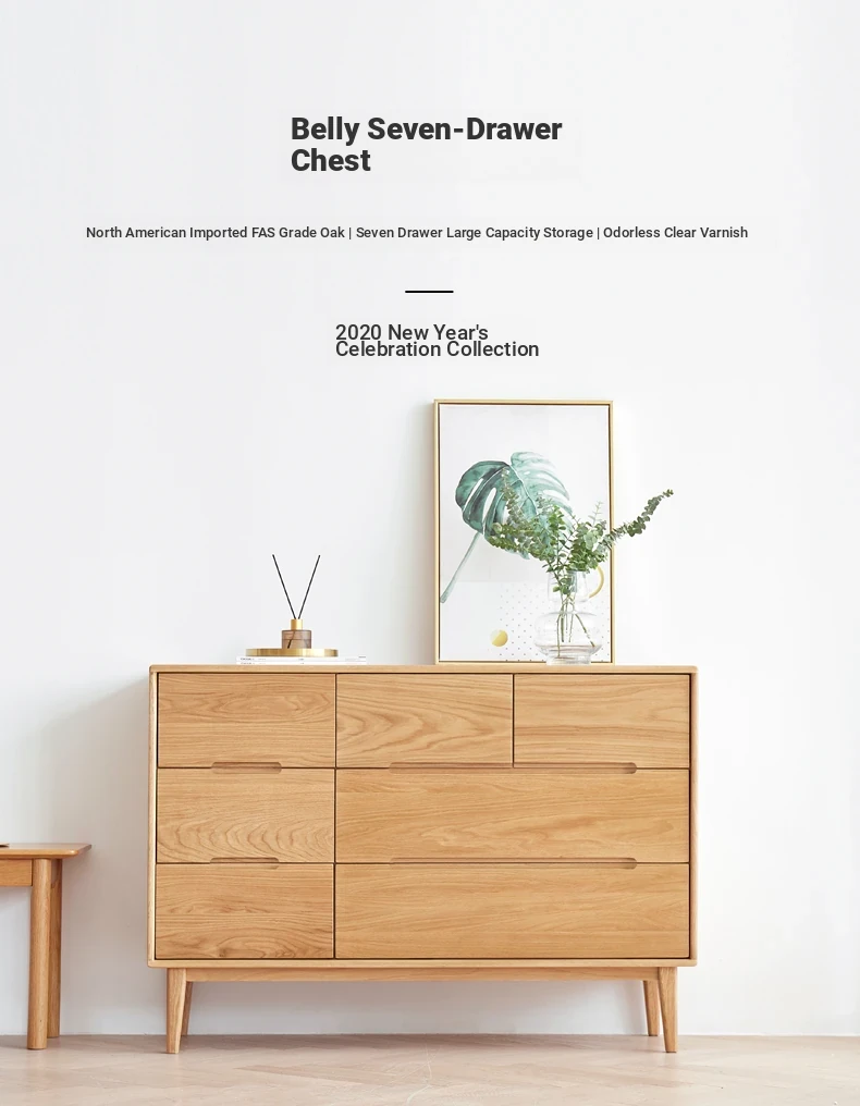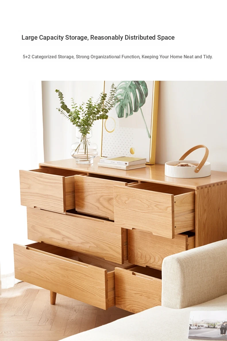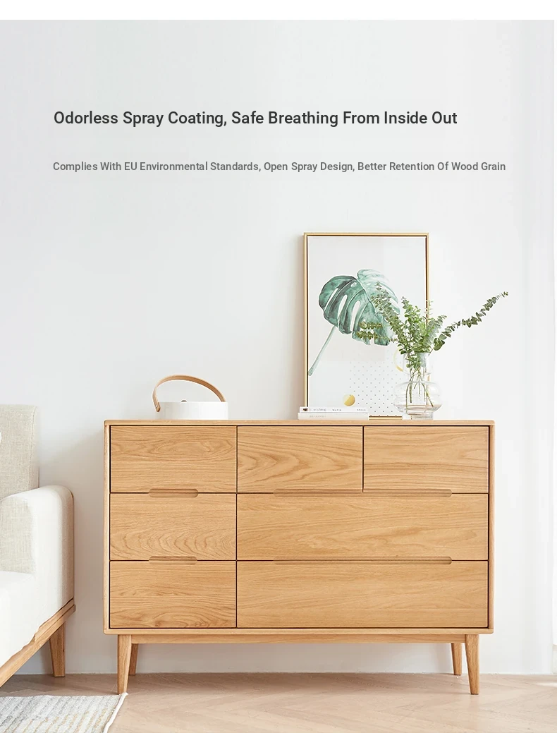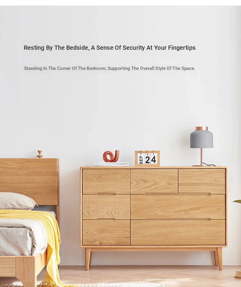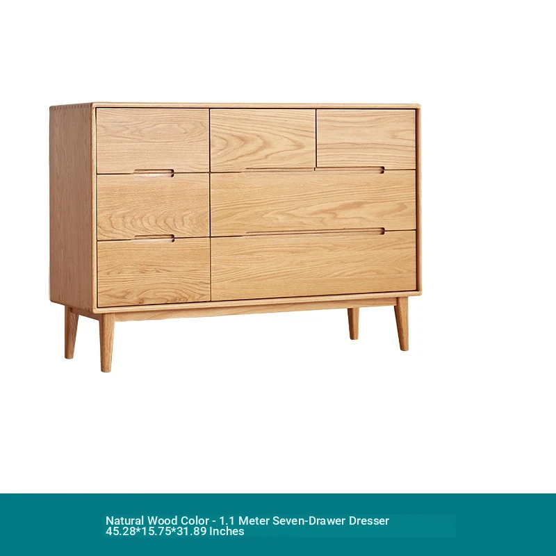 "Modern Minimalist Solid Wood Seven-Drawer Cabinet – Scandinavian Oak Storage Solutions for Bedroom Organization"