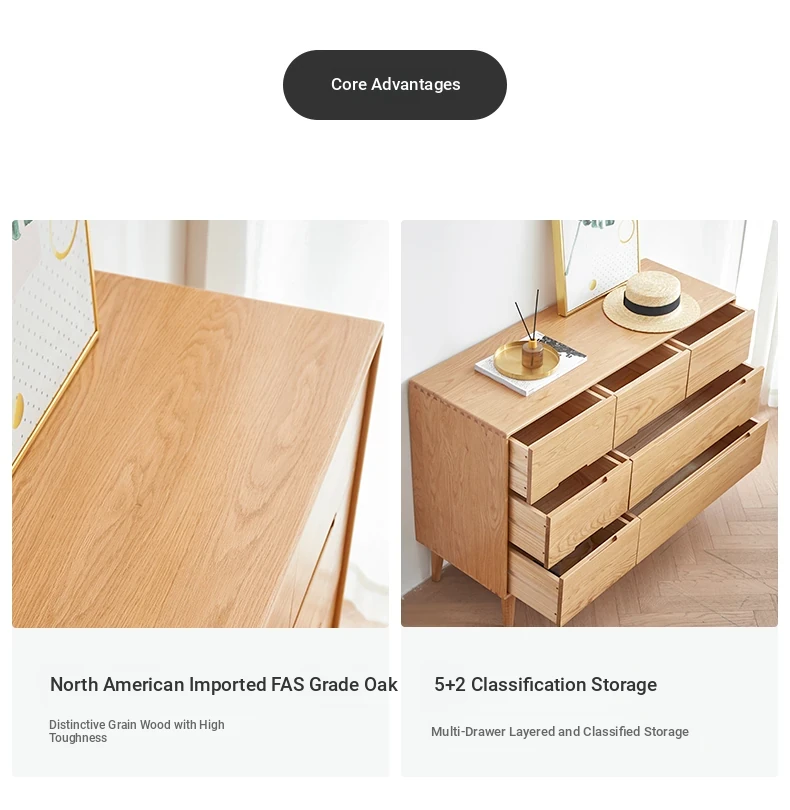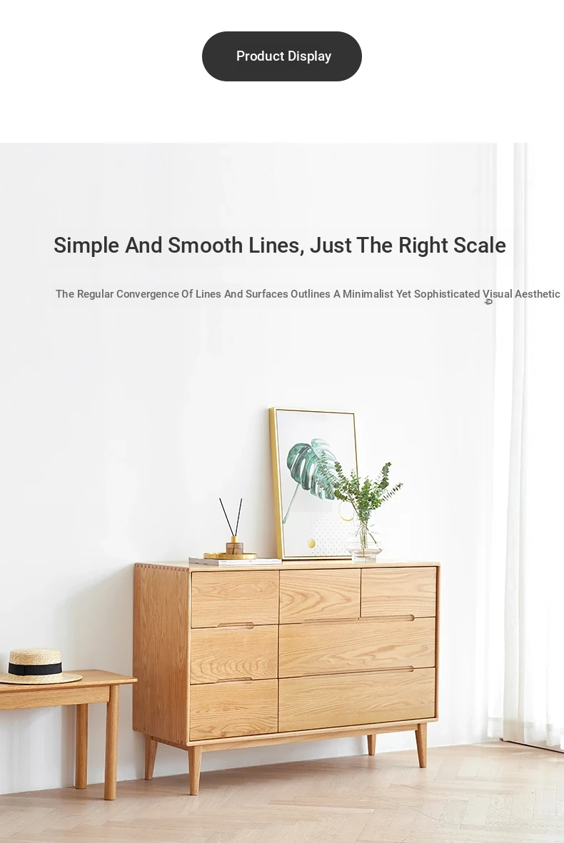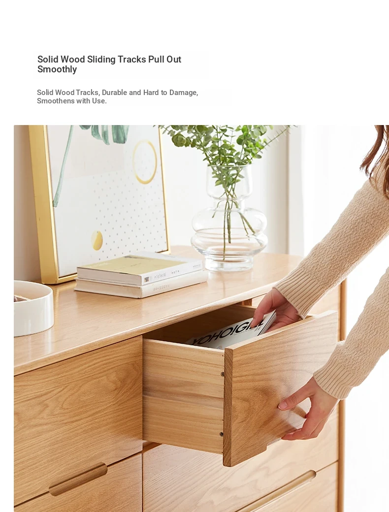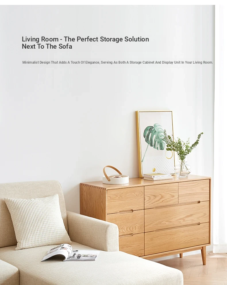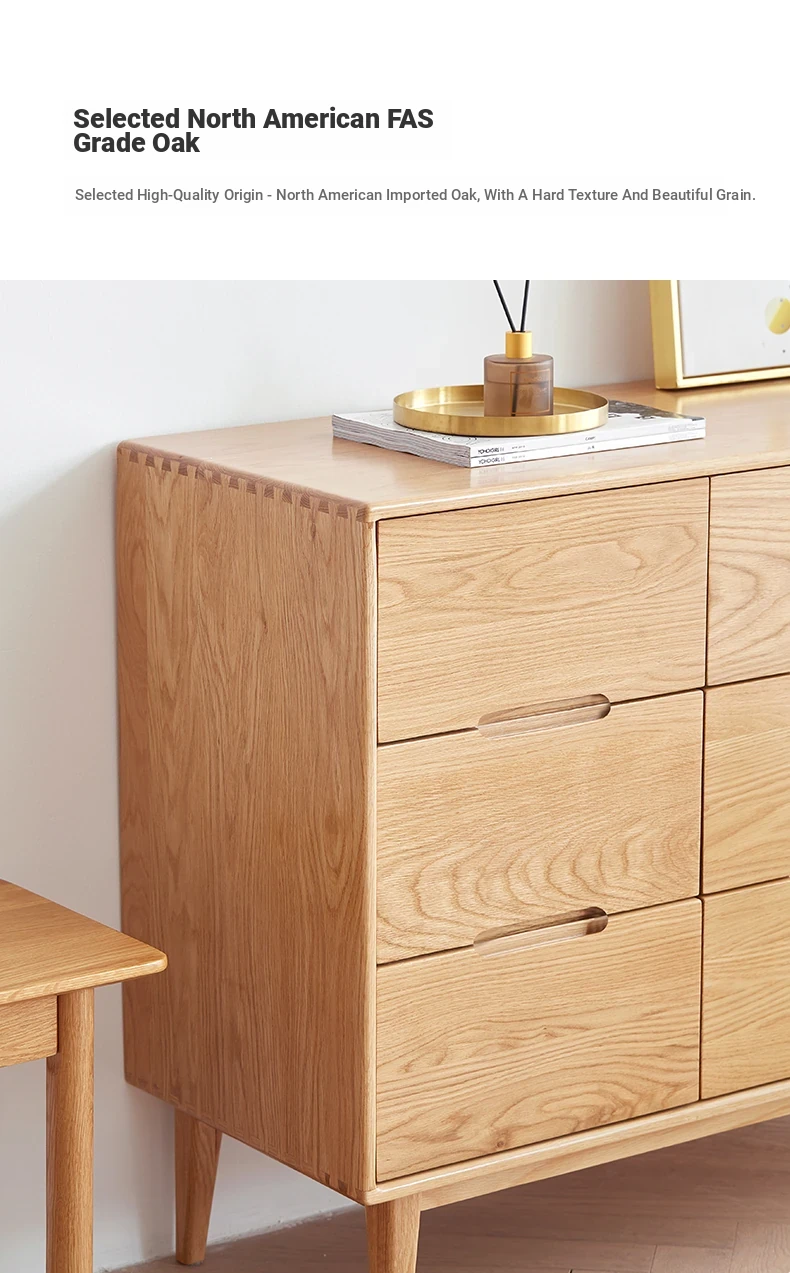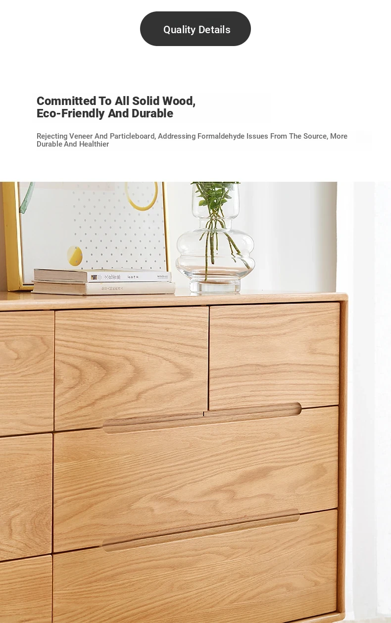 "Modern Minimalist Solid Wood Seven-Drawer Cabinet – Scandinavian Oak Storage Solutions for Bedroom Organization"