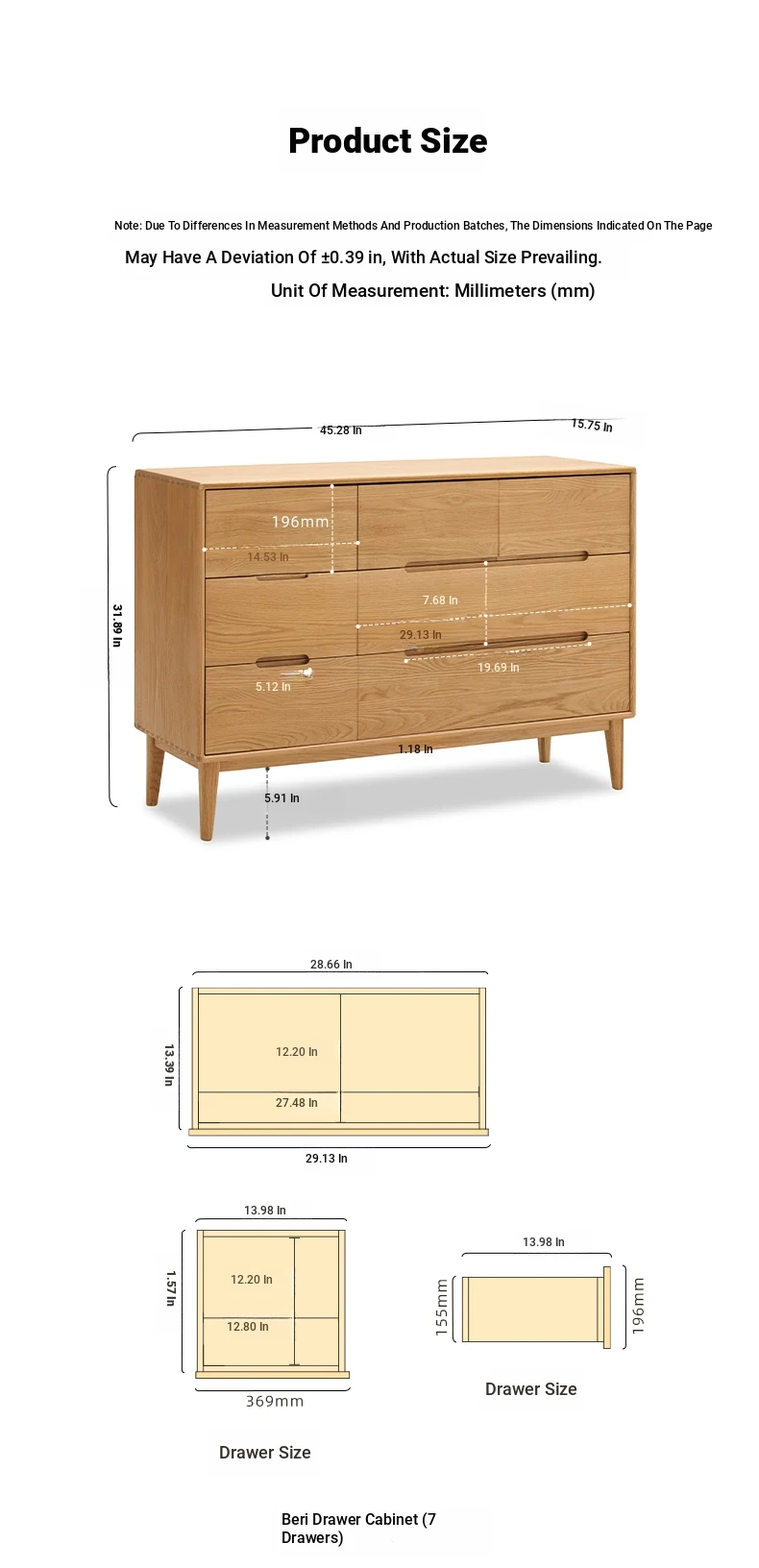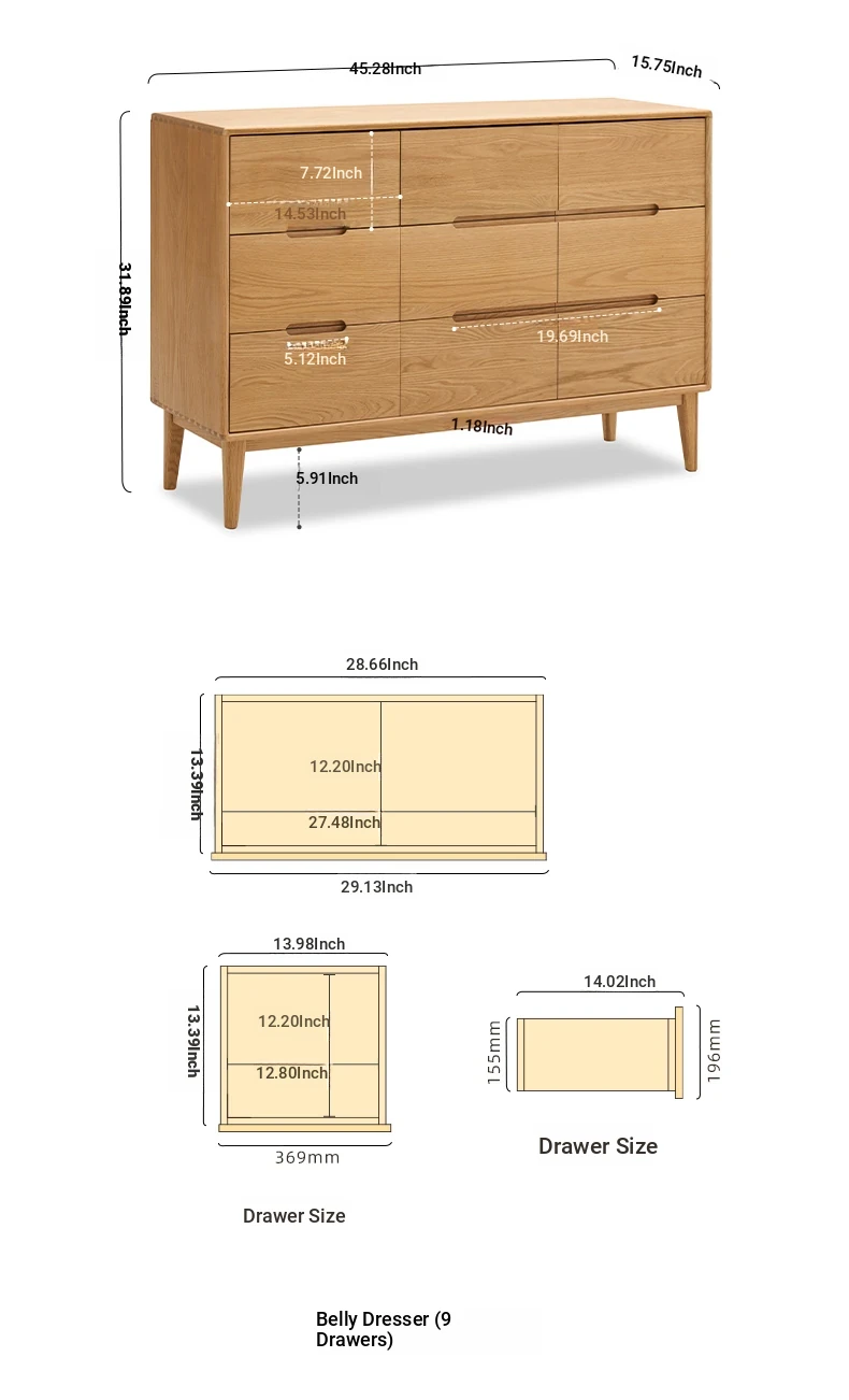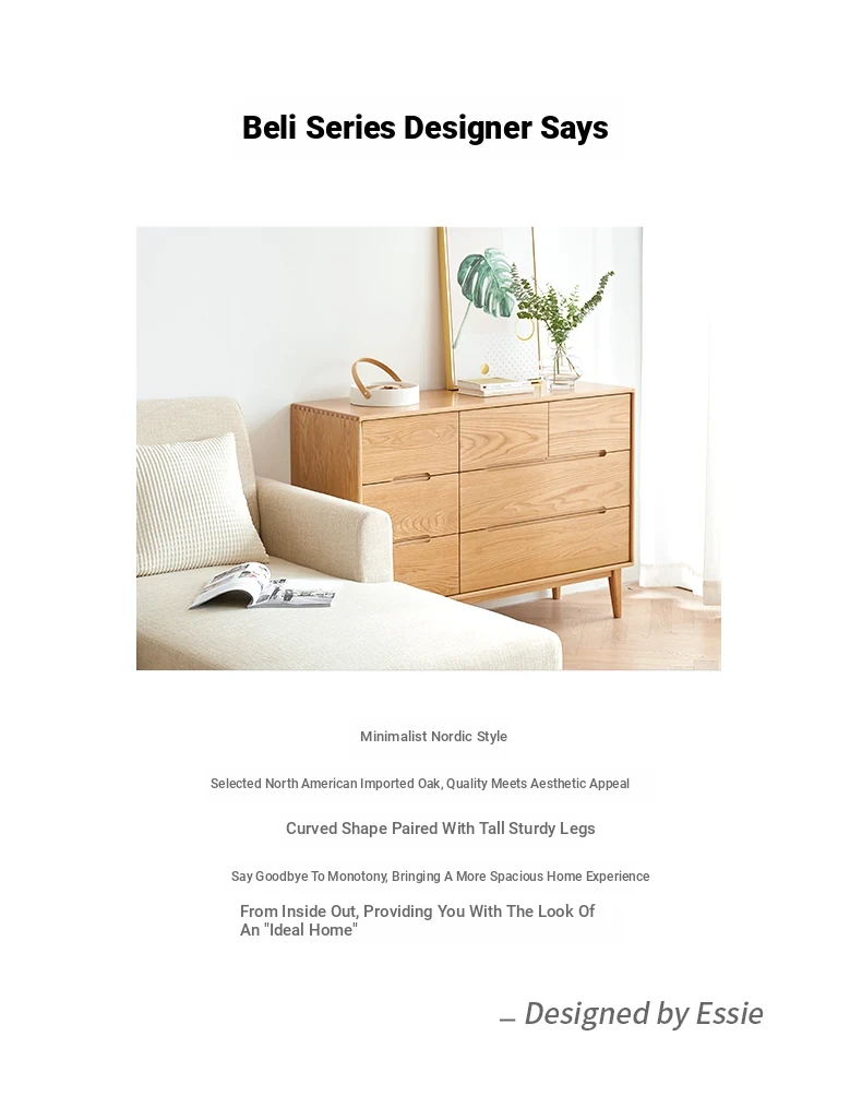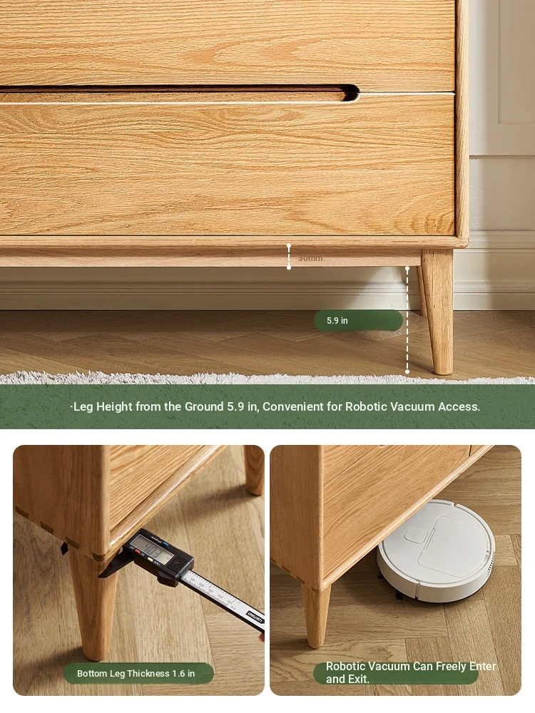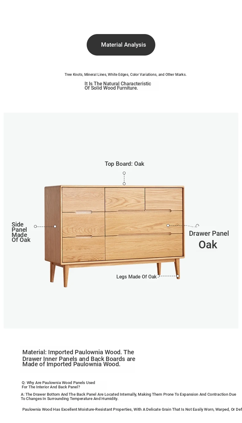 "Modern Minimalist Solid Wood Seven-Drawer Cabinet – Scandinavian Oak Storage Solutions for Bedroom Organization"