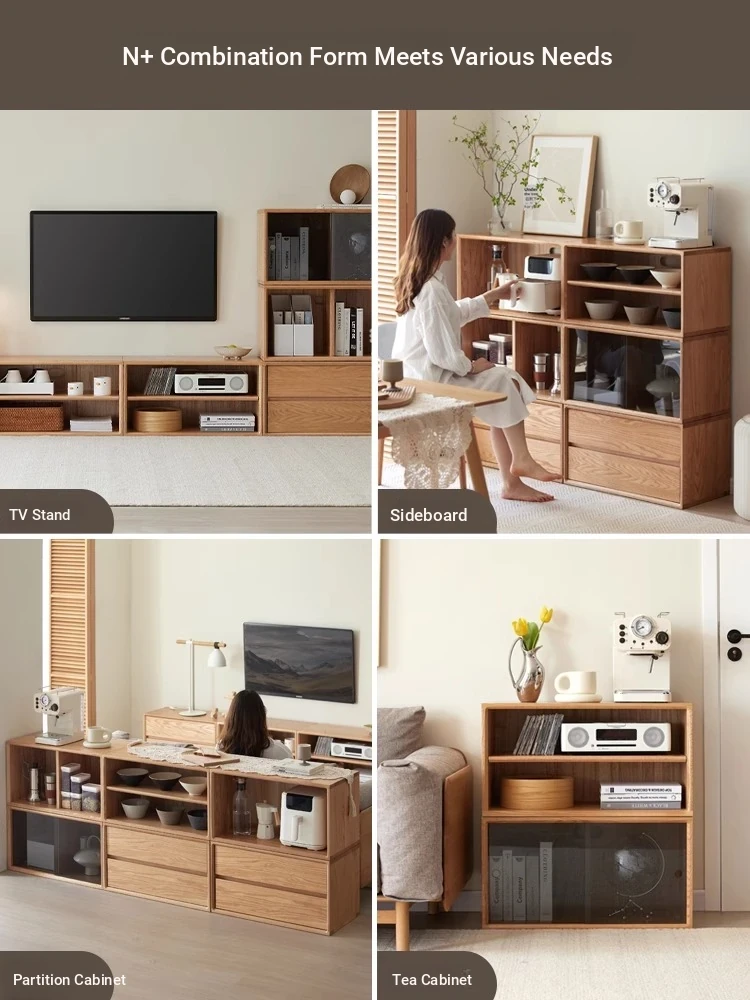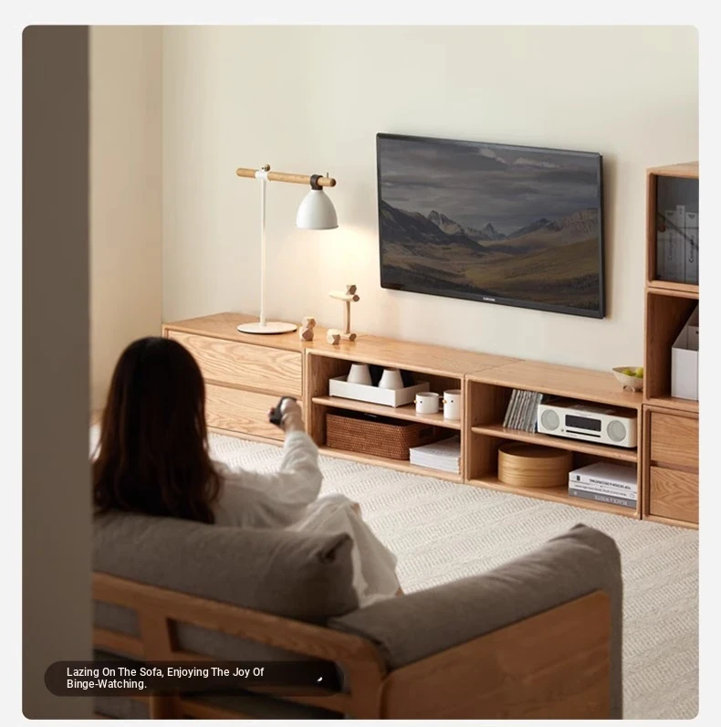 Modern Minimalist Solid Wood TV Stand with Versatile Storage and Customizable Arrangement – Perfect for Stylish Living Spaces!