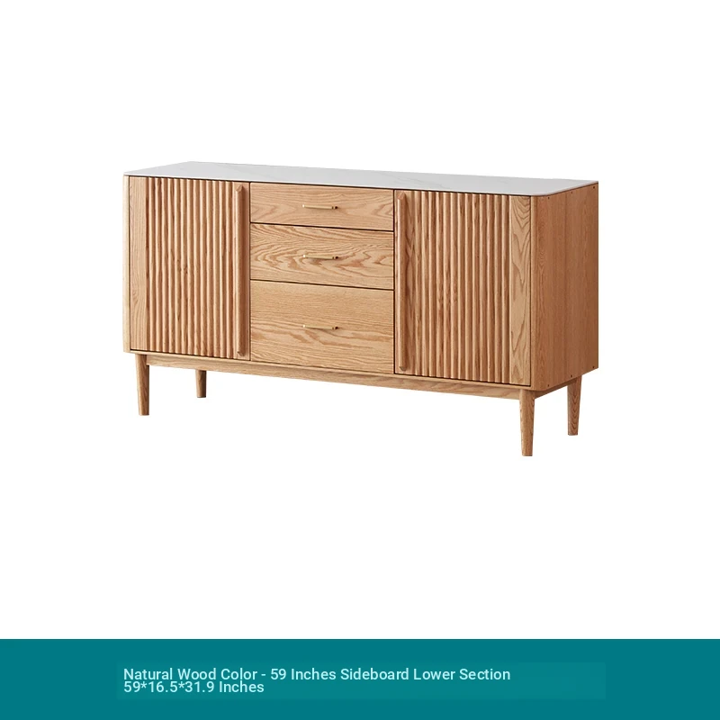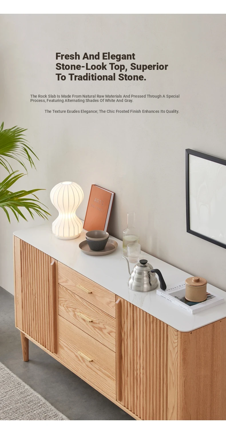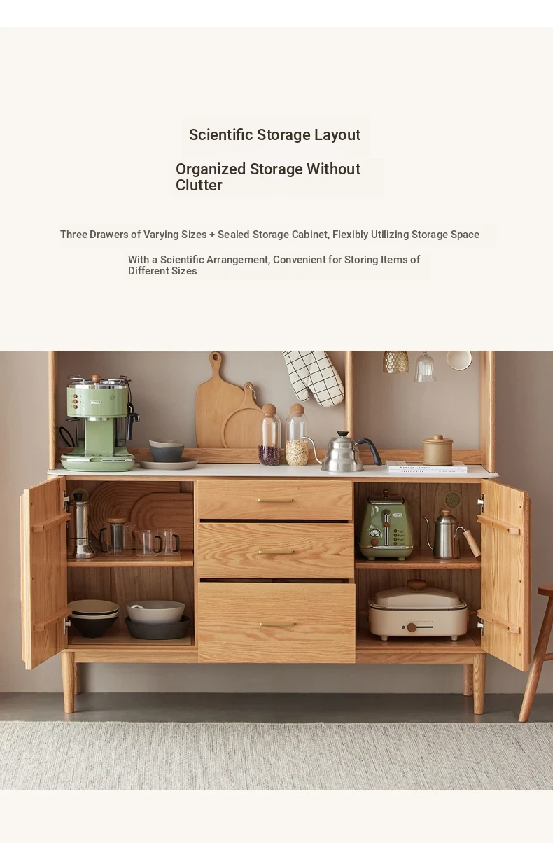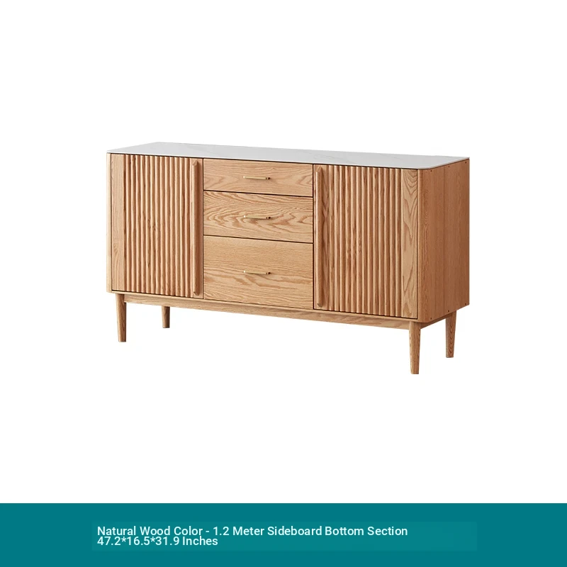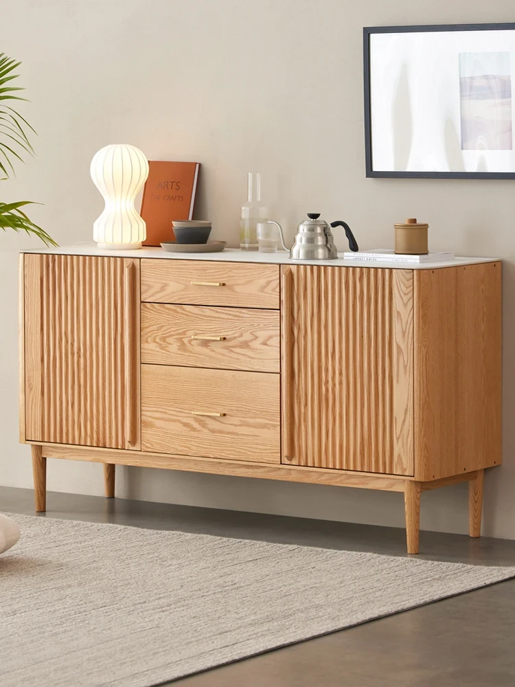 Modern Simple Oak Sideboard with Rock Slab Top - Nordic Wooden Storage Cabinet for Dining and Bedroom, Perfect for Organizing Essentials and Enhancing Your Space