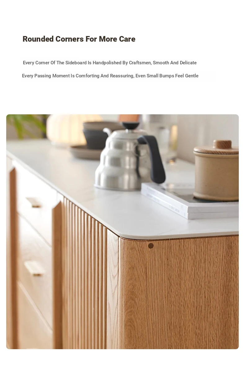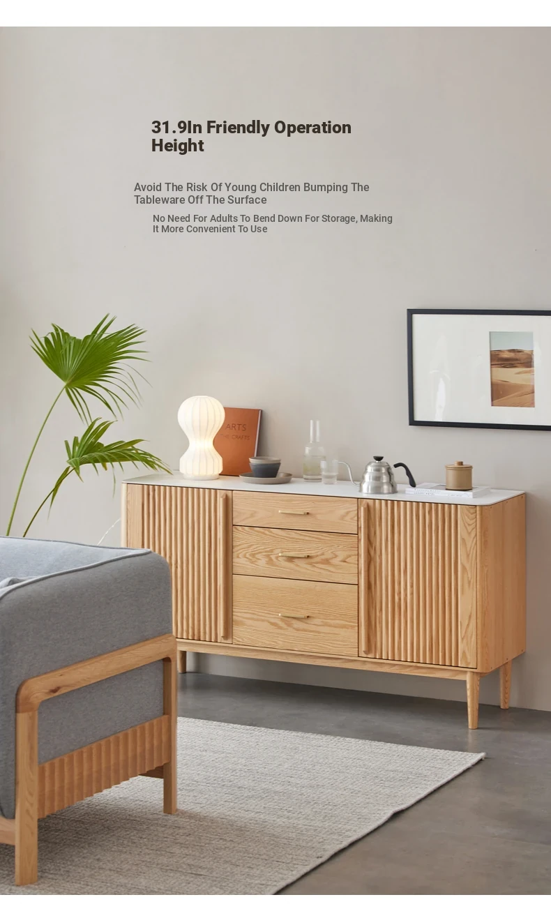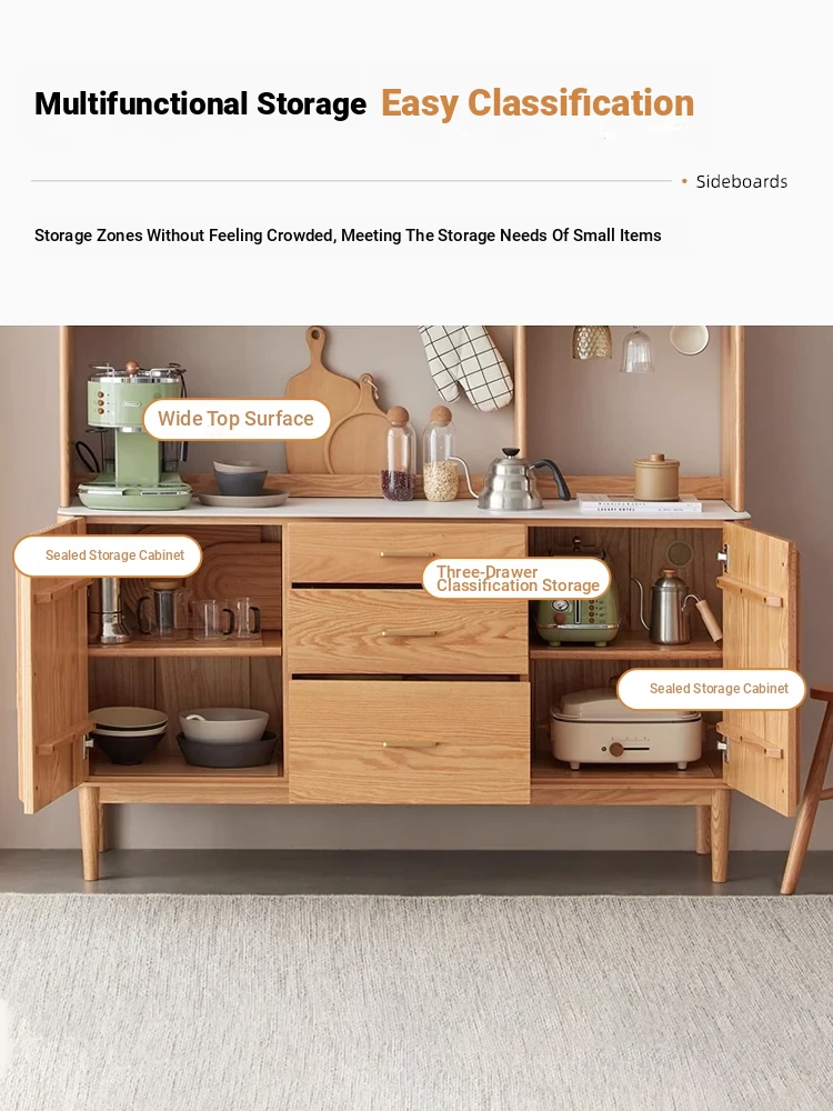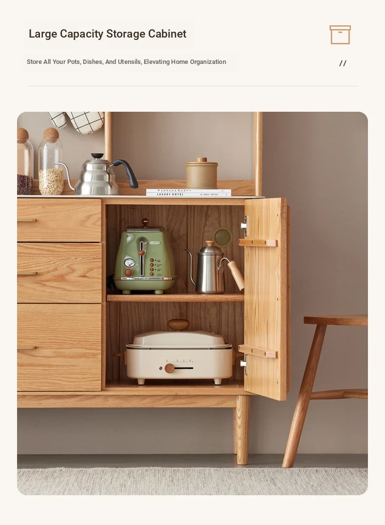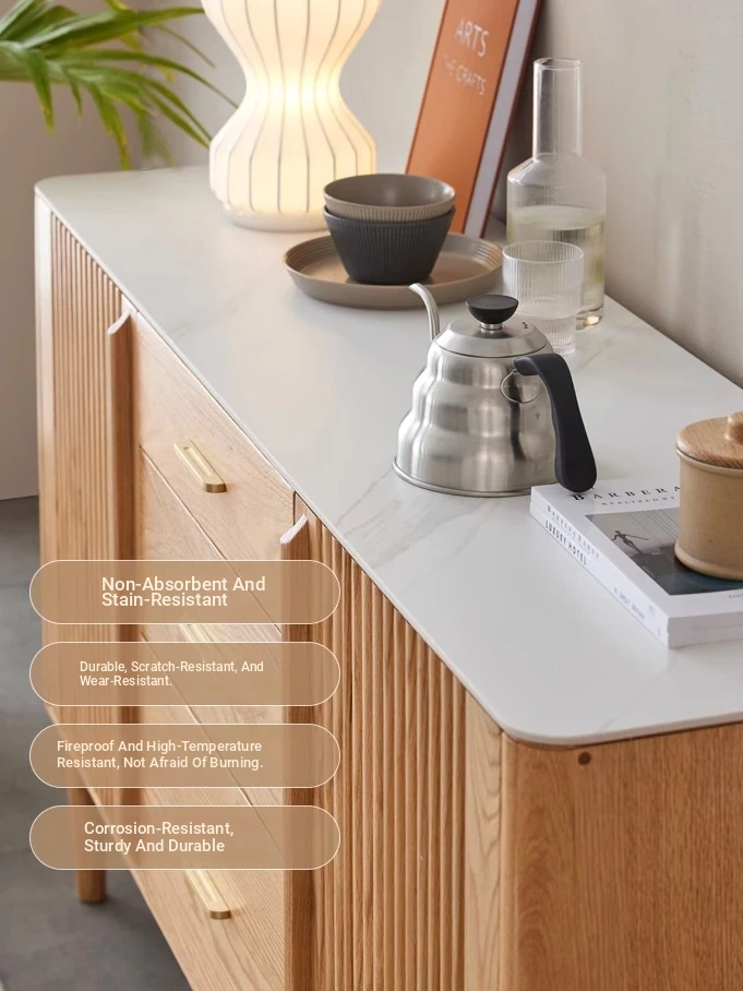 Modern Simple Oak Sideboard with Rock Slab Top - Nordic Wooden Storage Cabinet for Dining and Bedroom, Perfect for Organizing Essentials and Enhancing Your Space