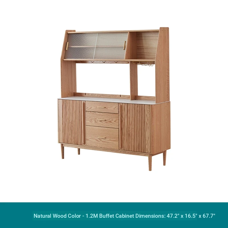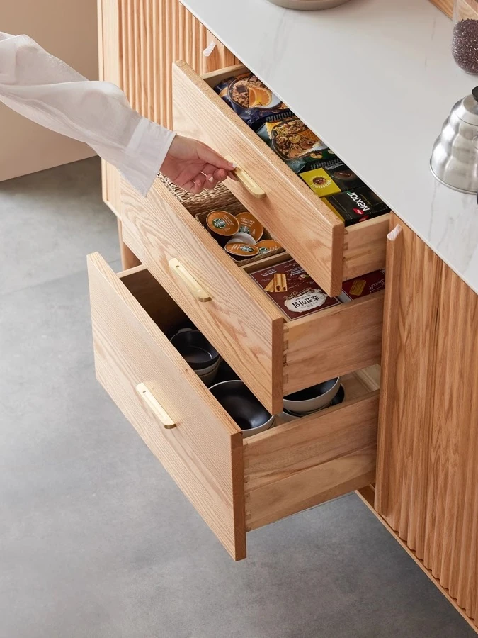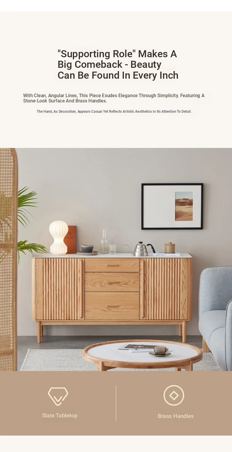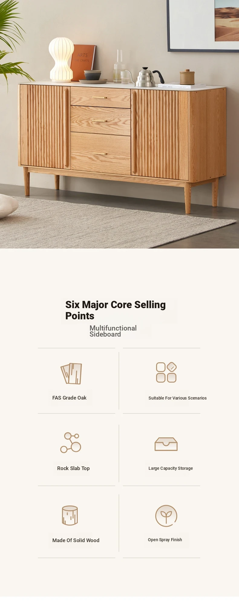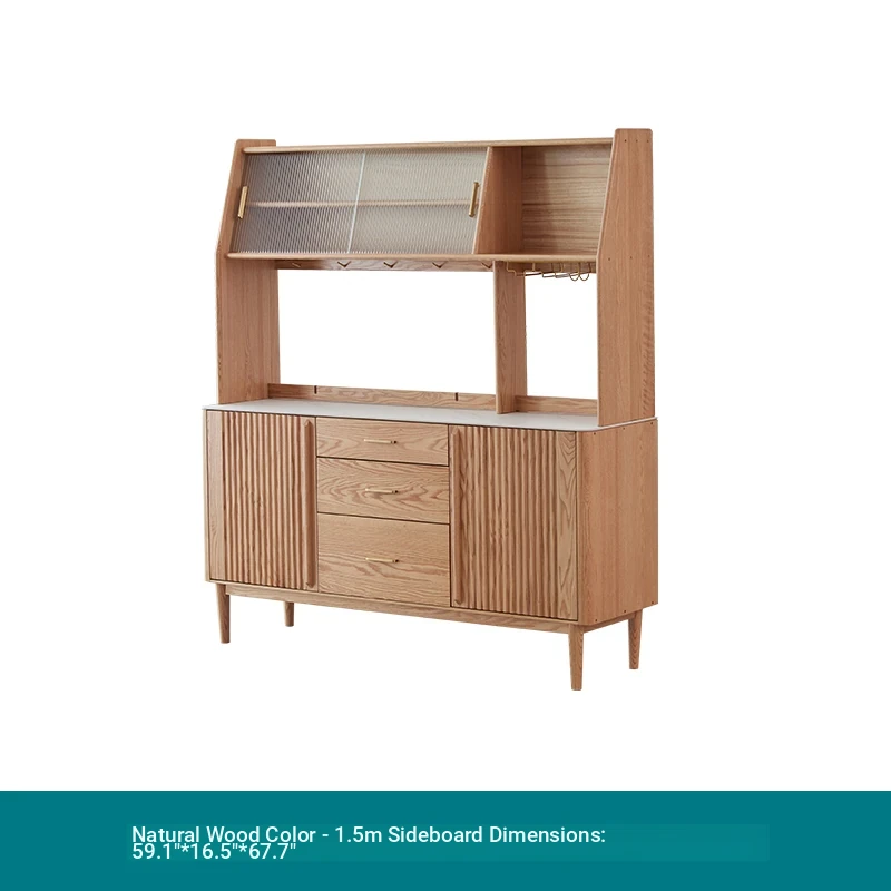 Modern Simple Oak Sideboard with Rock Slab Top - Nordic Wooden Storage Cabinet for Dining and Bedroom, Perfect for Organizing Essentials and Enhancing Your Space