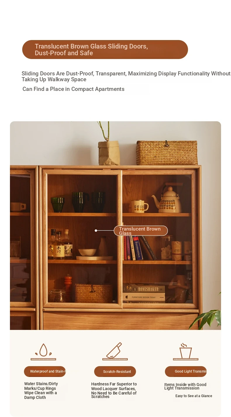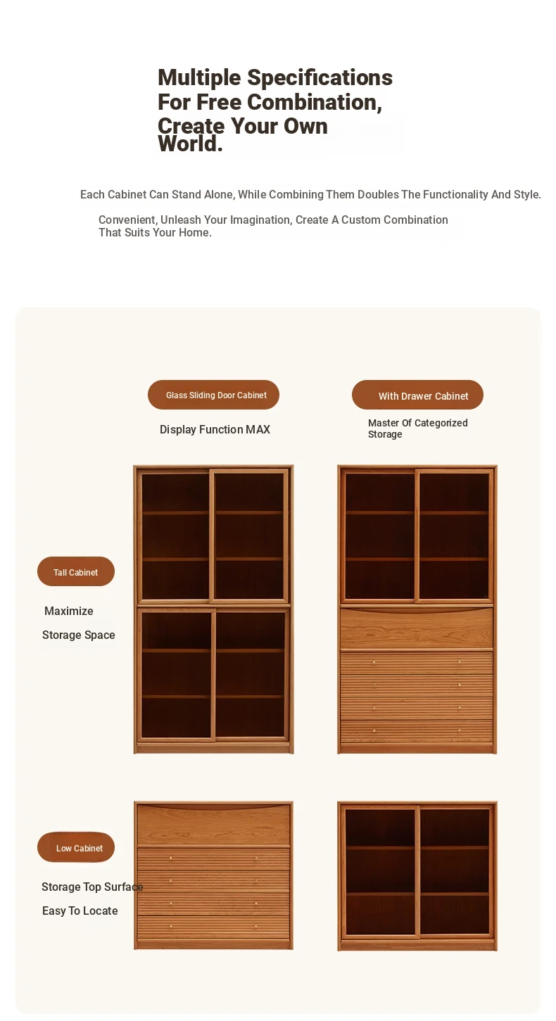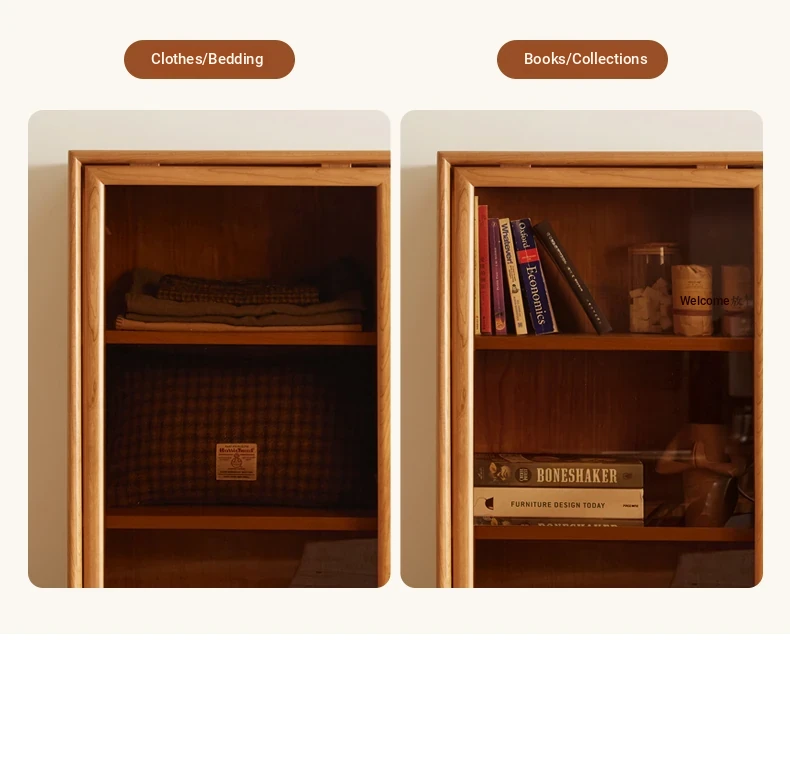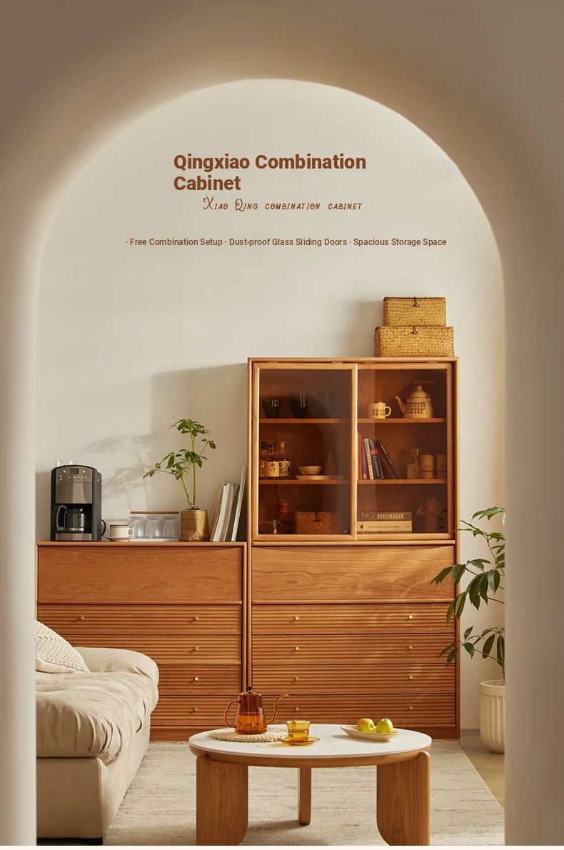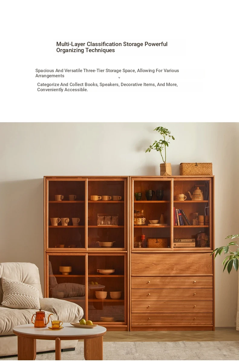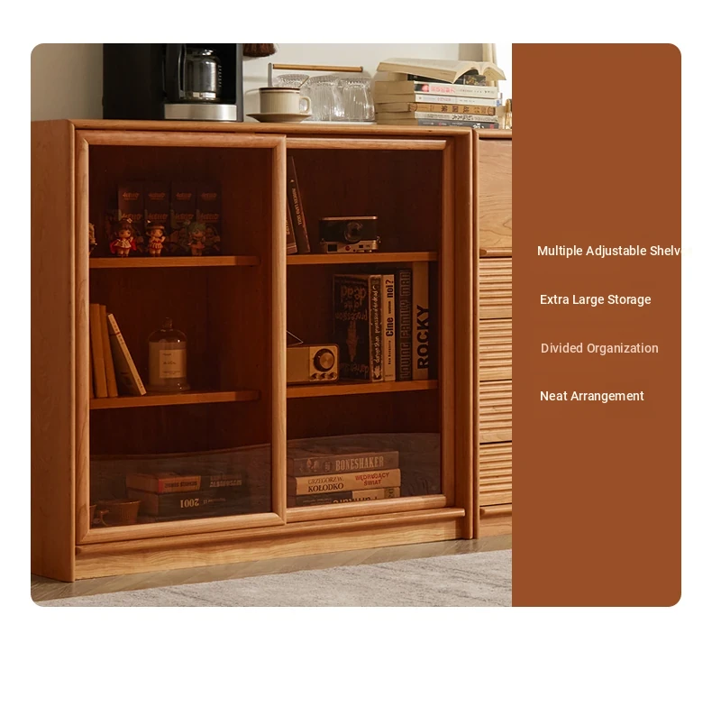 "Modern Solid Wood Bookshelf with Glass Storage Cabinet - Stylish Nordic and Japanese Cherry Wood Floor Cabinet for Organized Living Spaces"