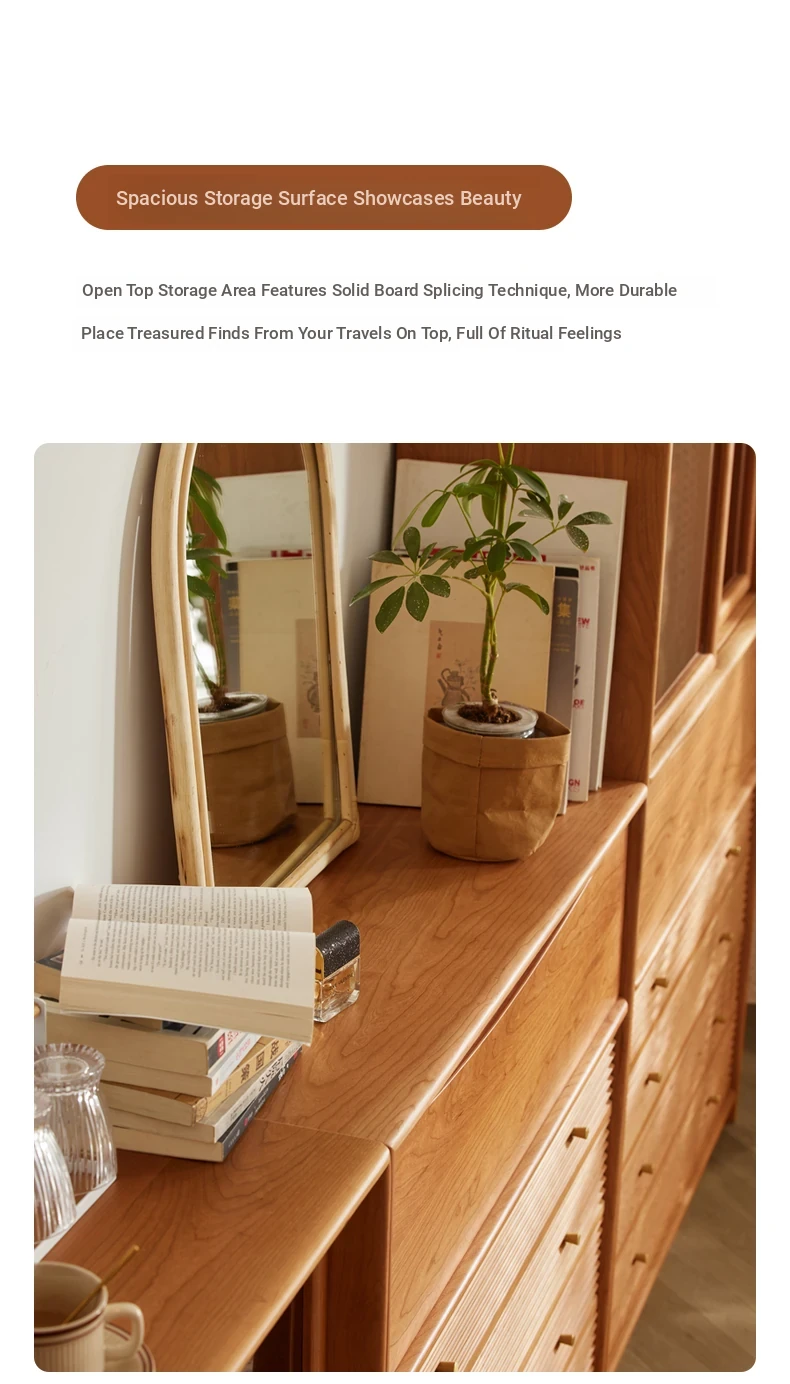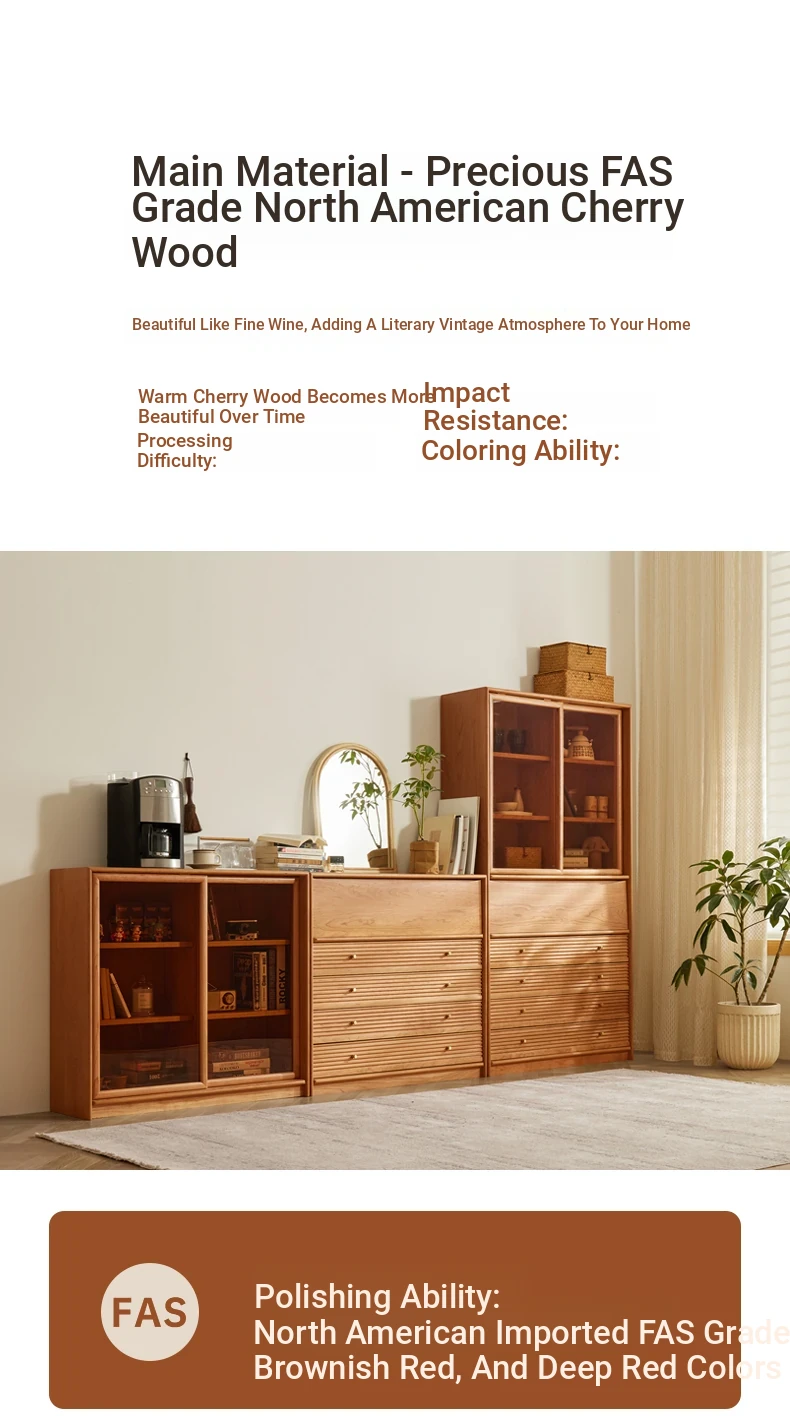 Cherry Wood-A bookcase (glass high cabinet) +((Drawer high cabinet))