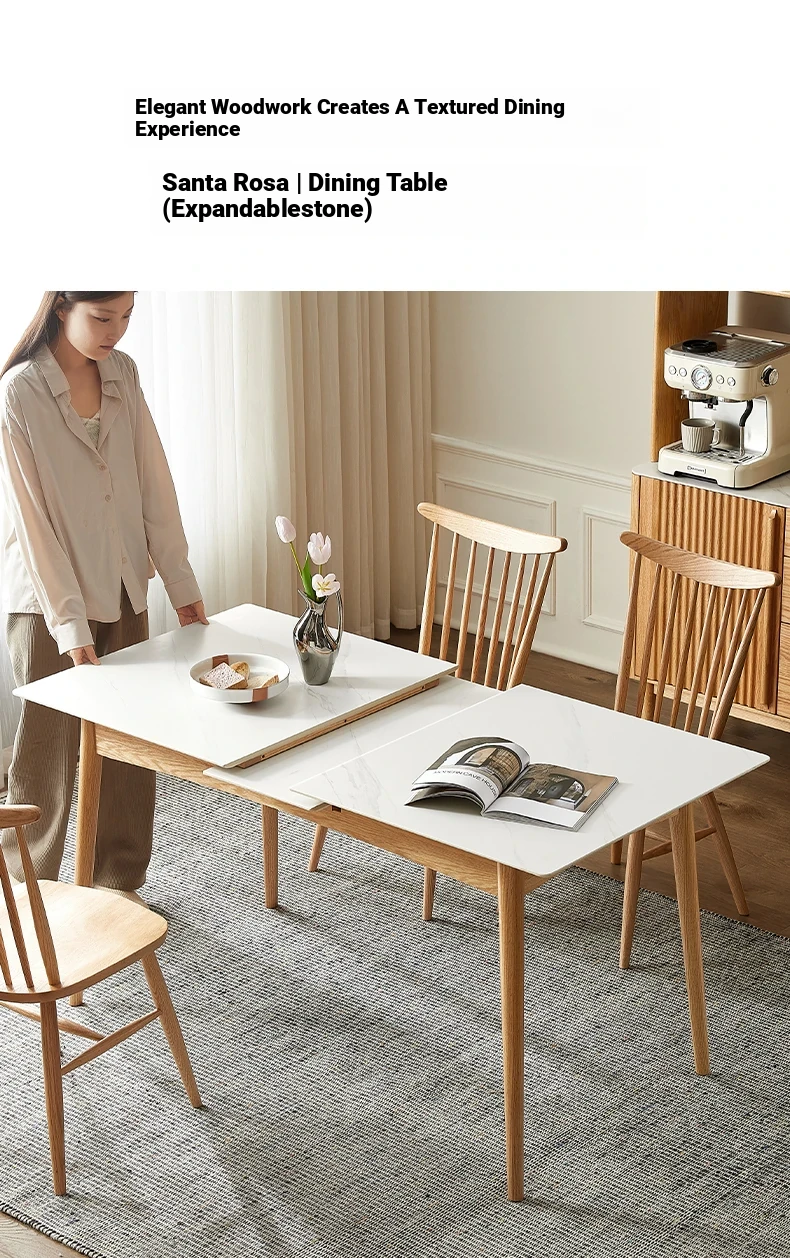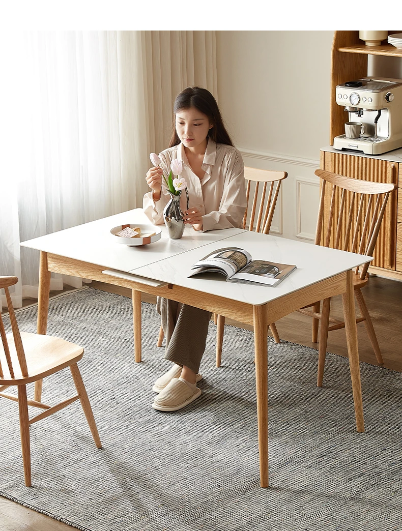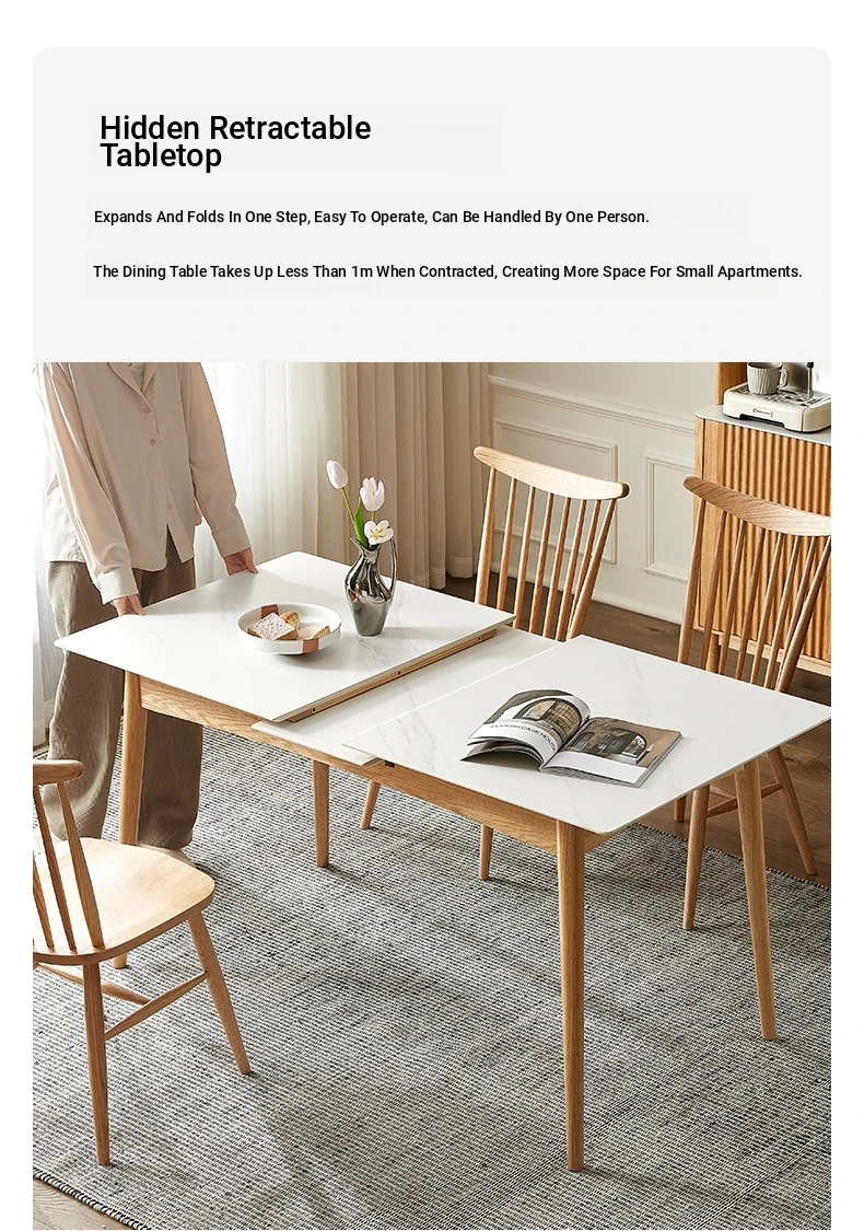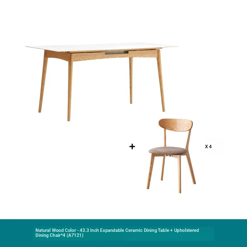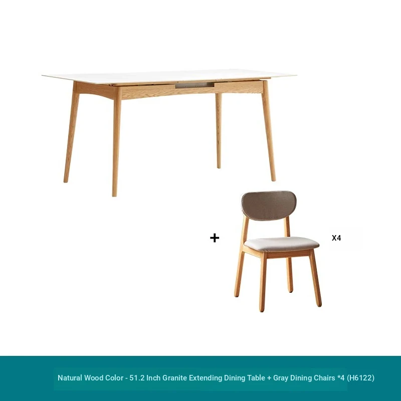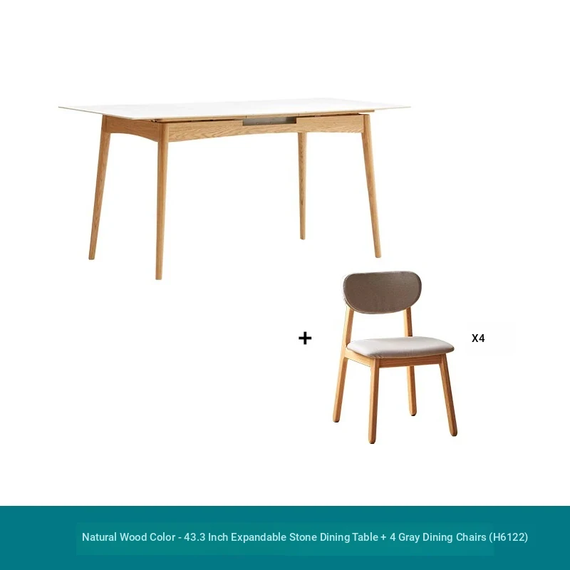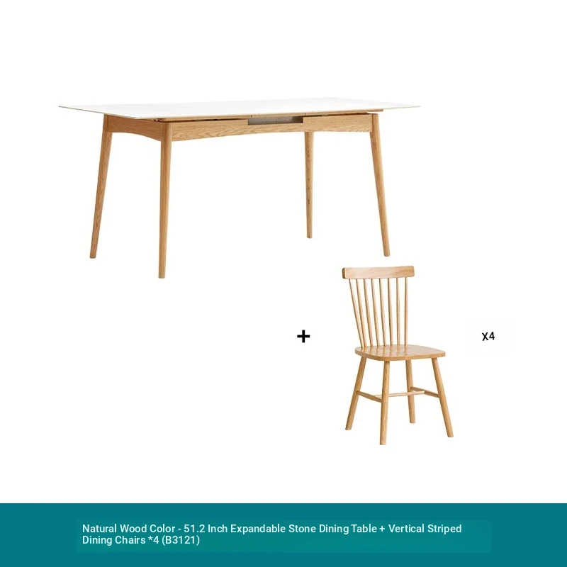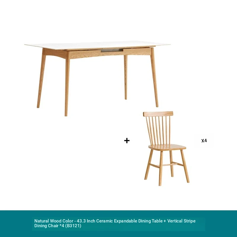 Modern Solid Wood Dining Table Set with Extendable Oak Table and Chairs - Minimalist Design for Small Spaces, Perfect for Contemporary Dining Experience.