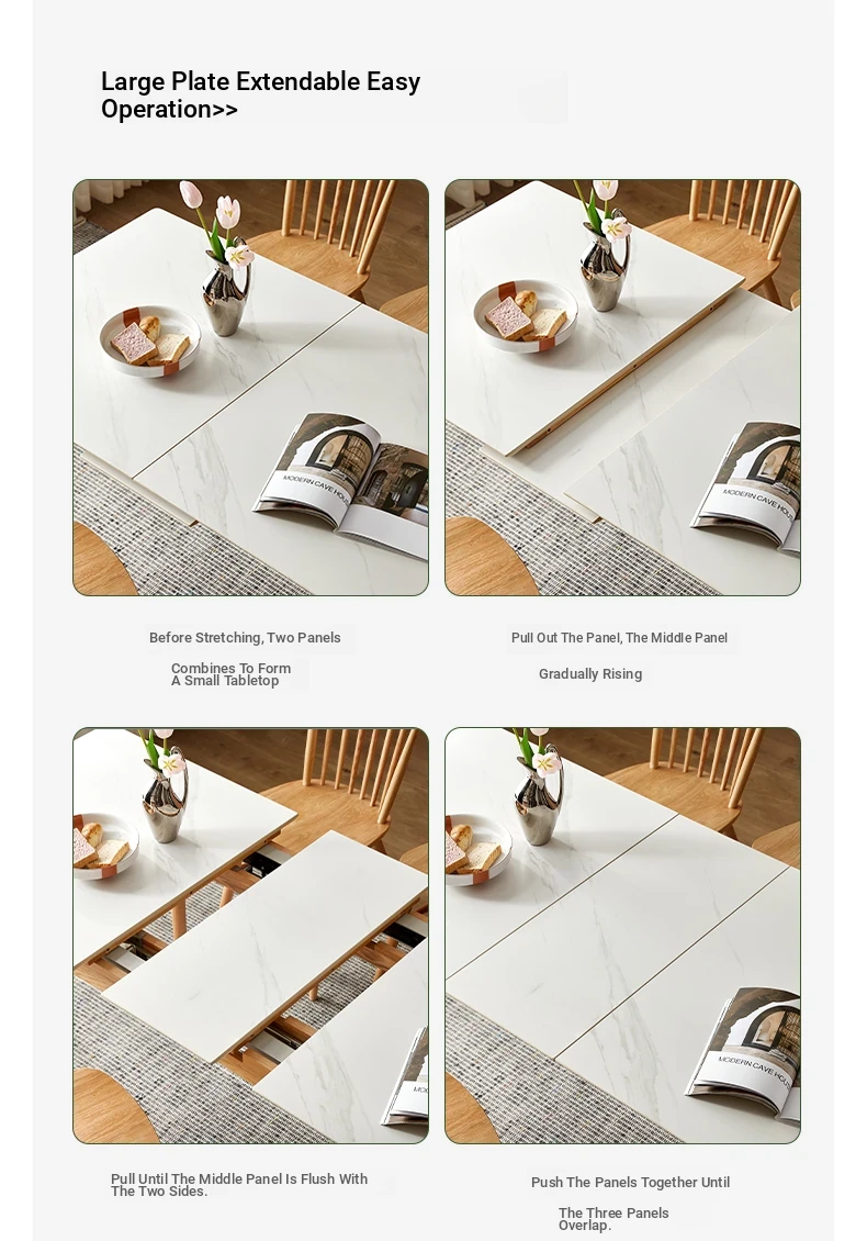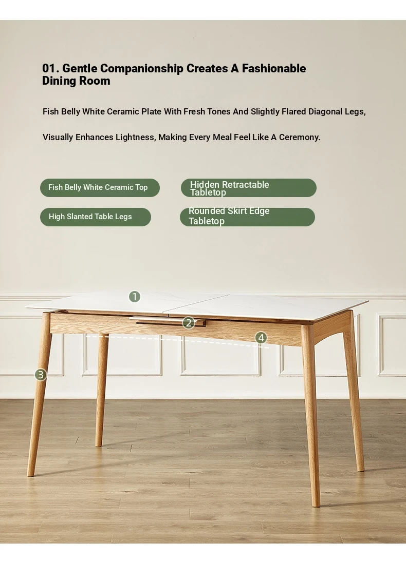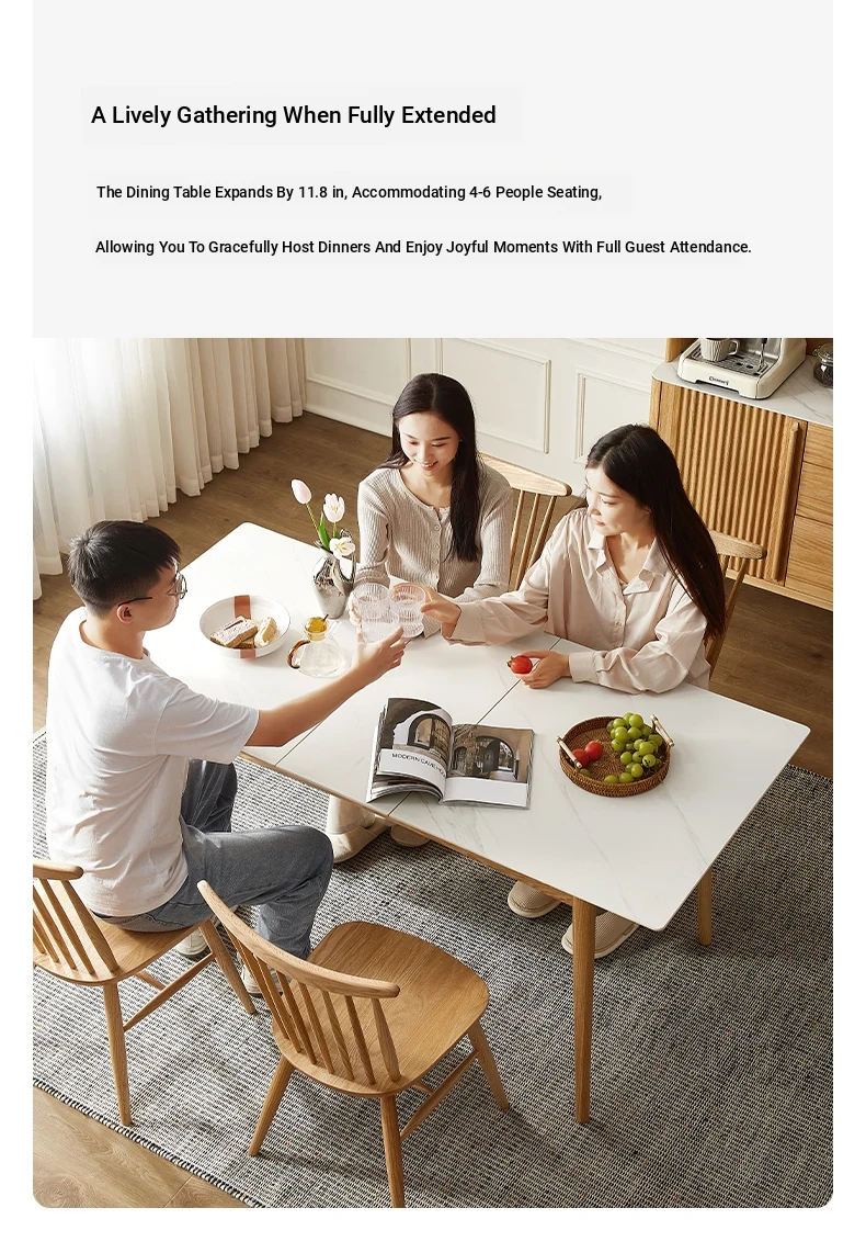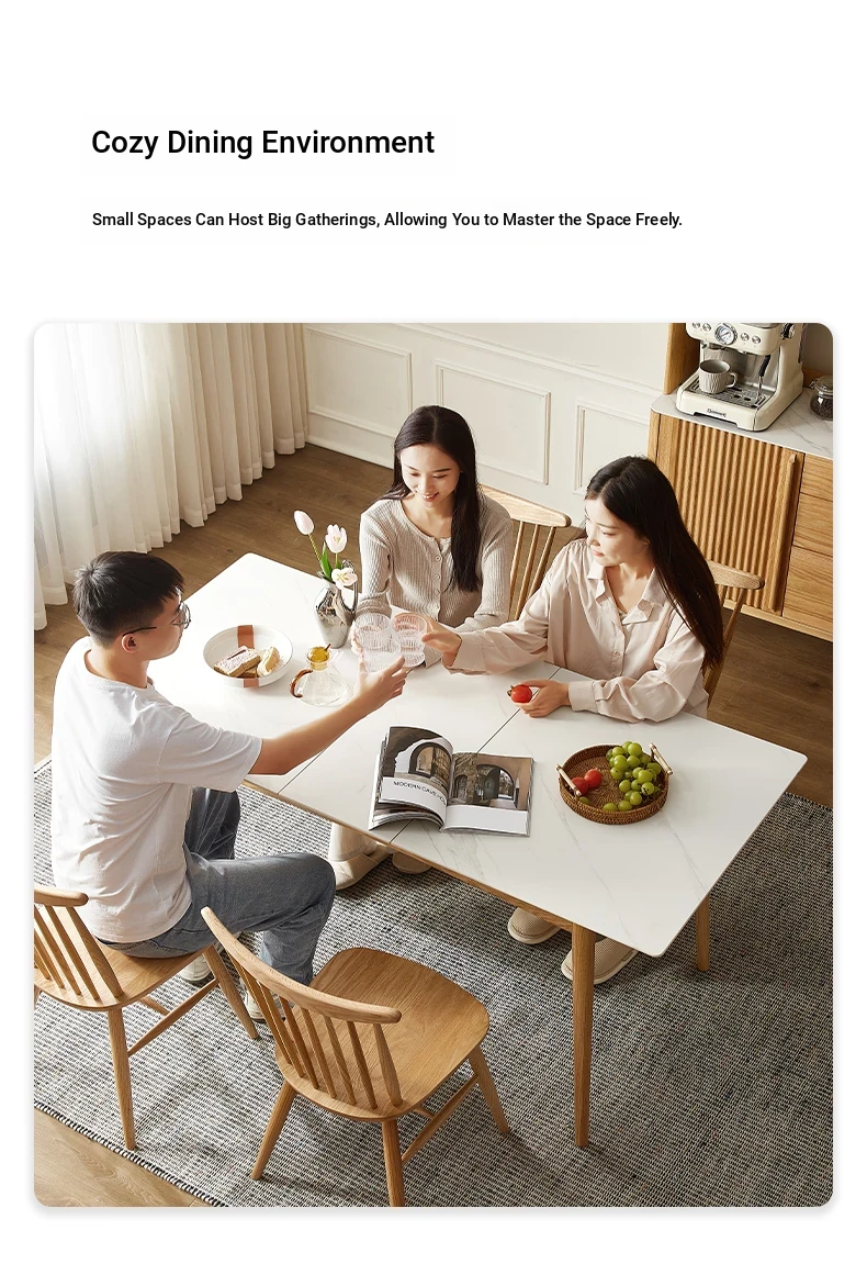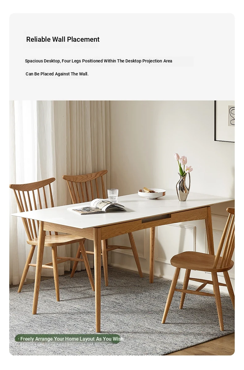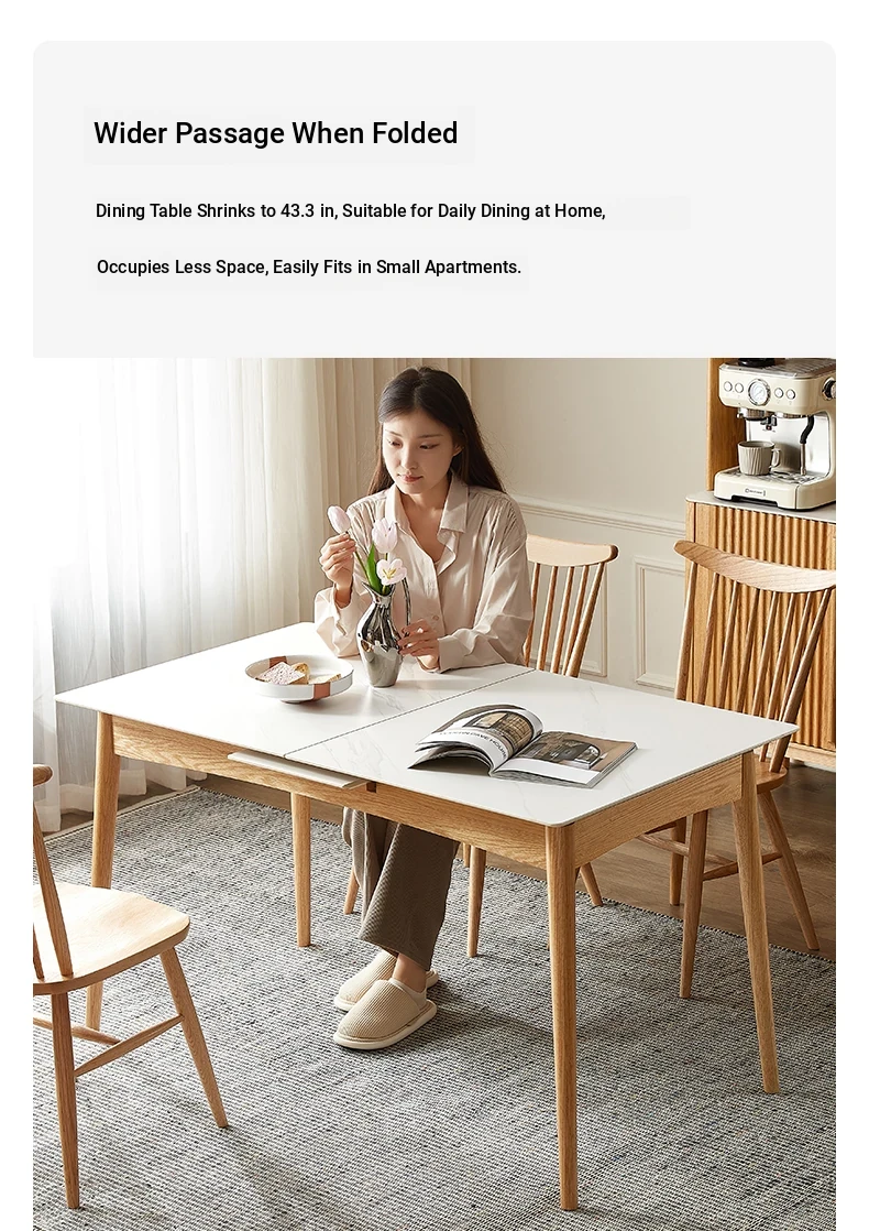 Modern Solid Wood Dining Table Set with Extendable Oak Table and Chairs - Minimalist Design for Small Spaces, Perfect for Contemporary Dining Experience.