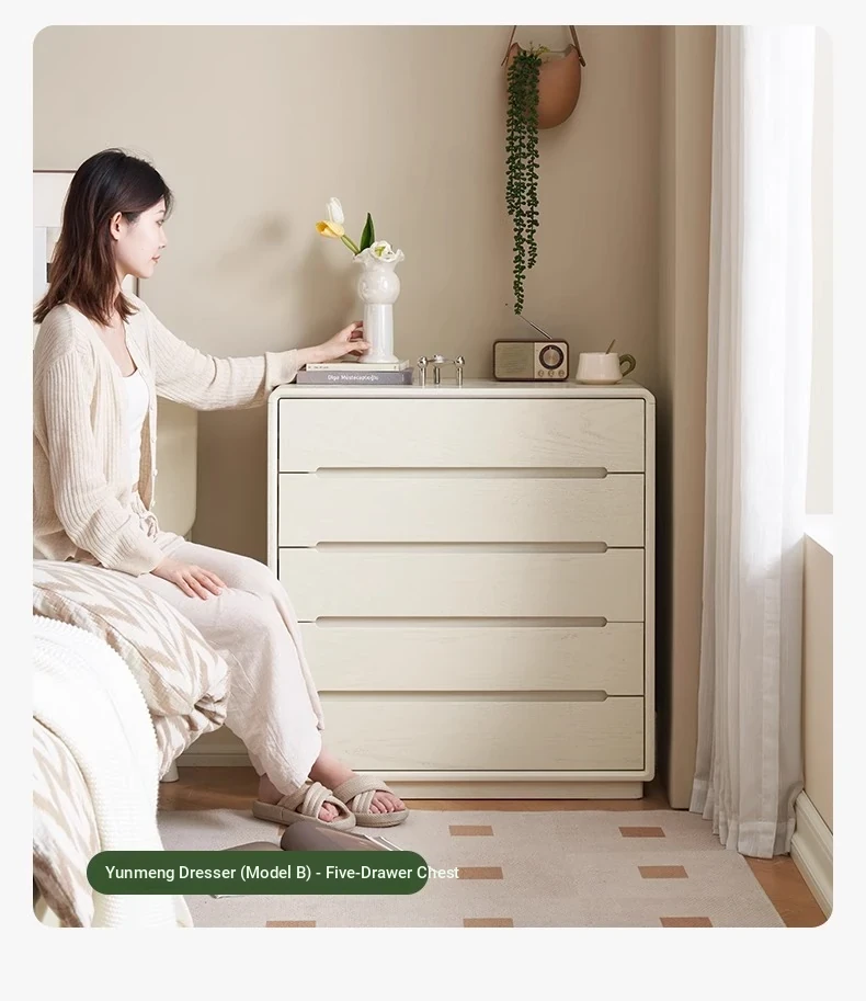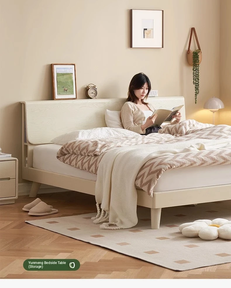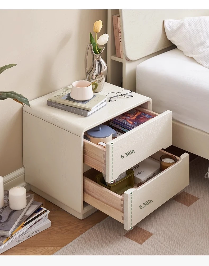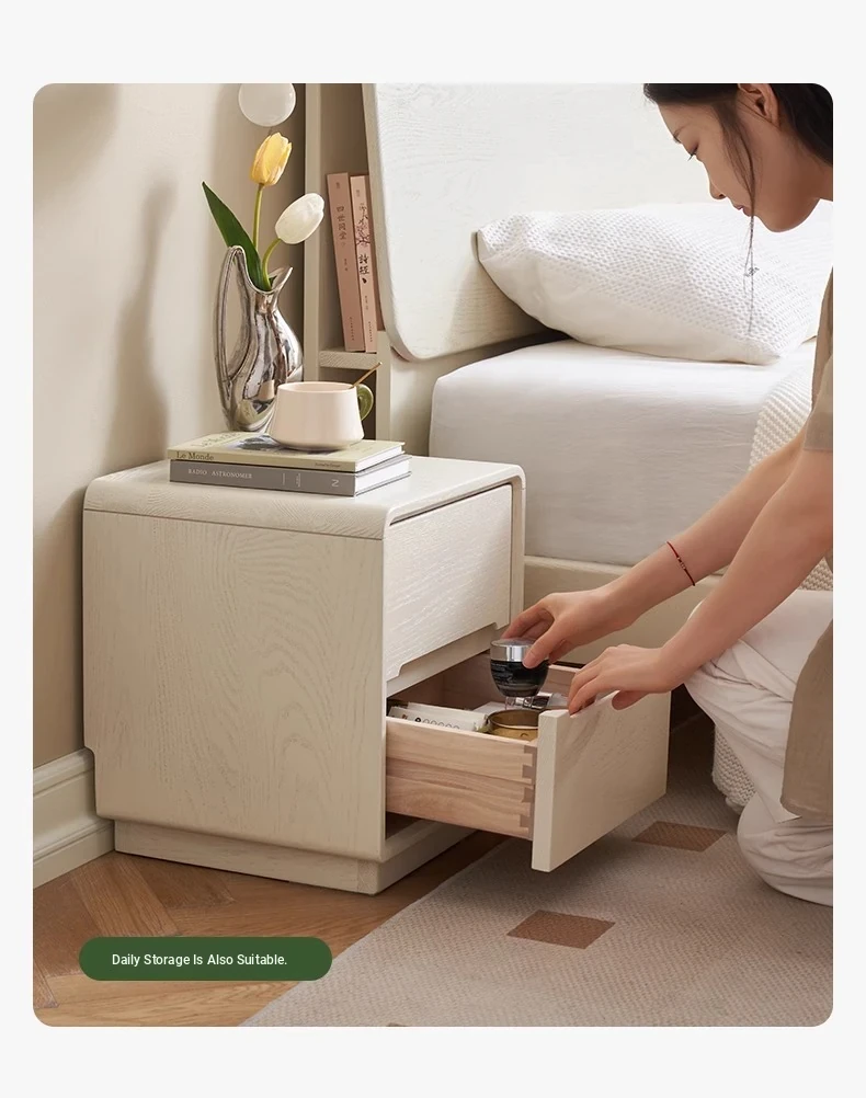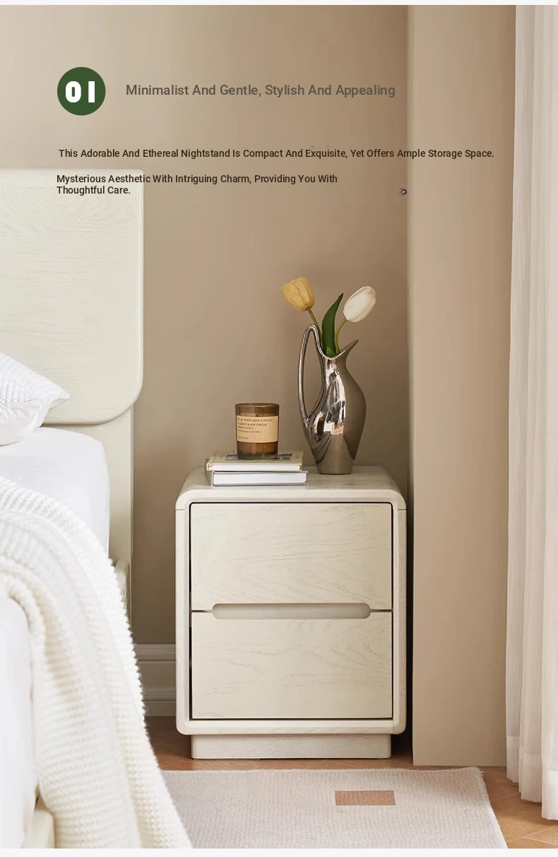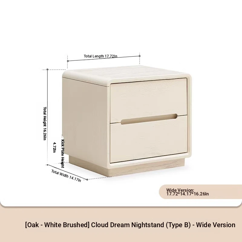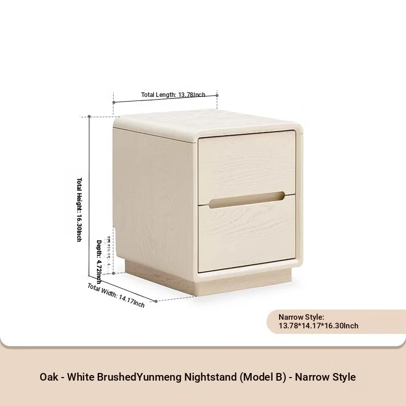 White brushed-Yunmeng Bedside Cabinet (Section B)-Wide