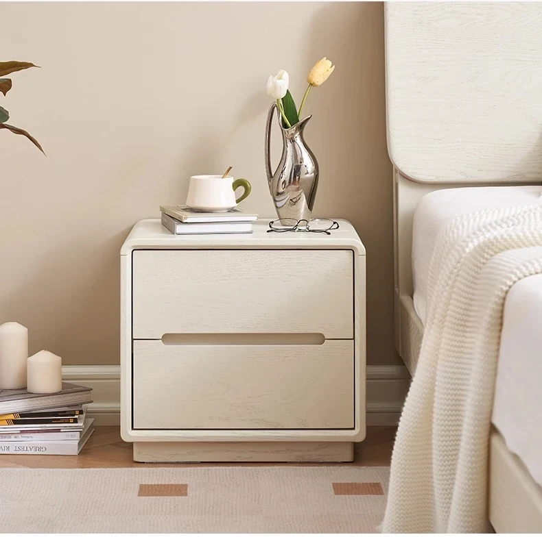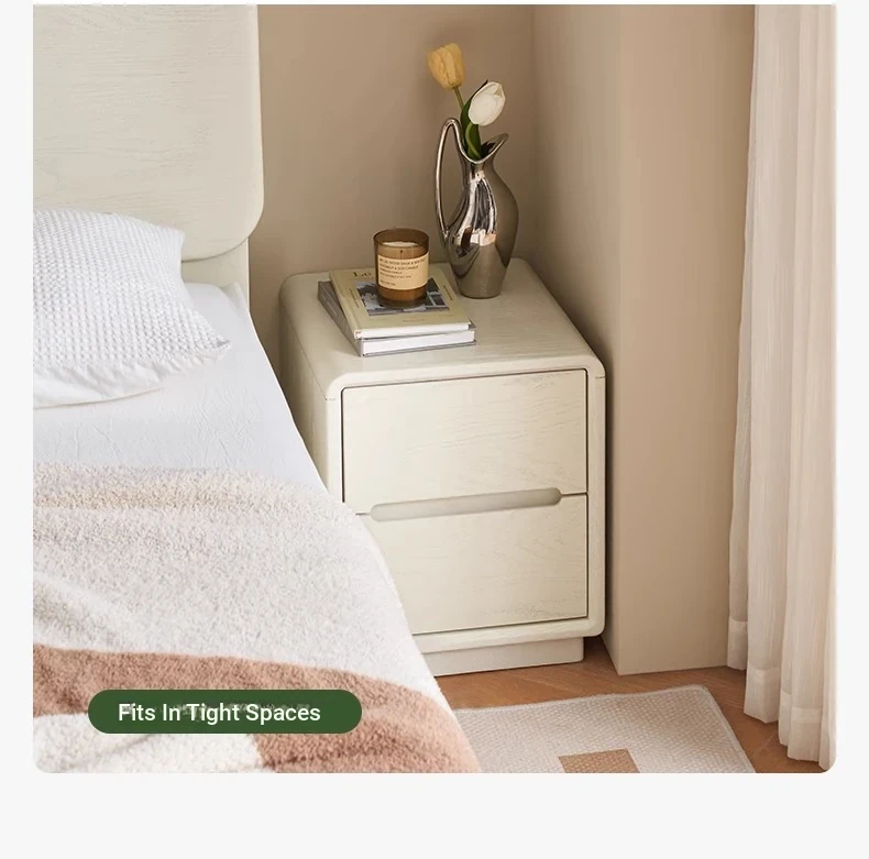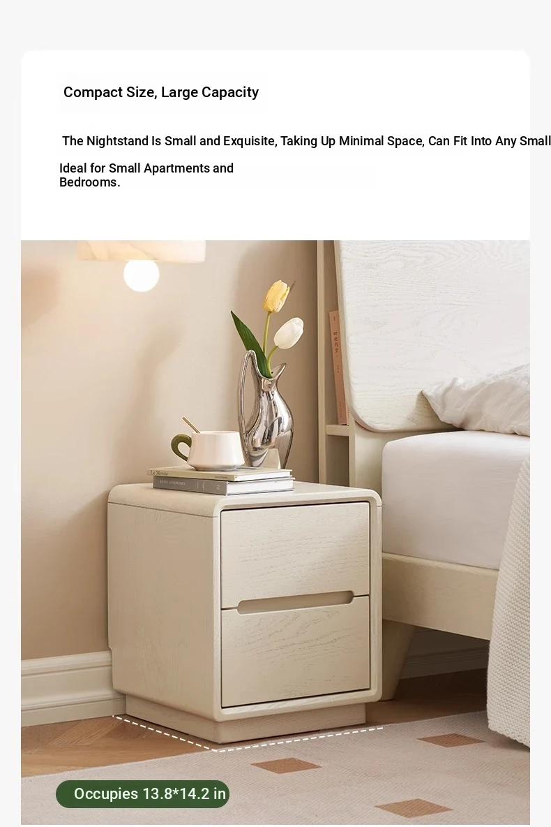 Narrow Solid Wood Nightstand - Modern Minimalist Oak Cream-Style Side Cabinet with Storage - Perfect Small Space Solution!