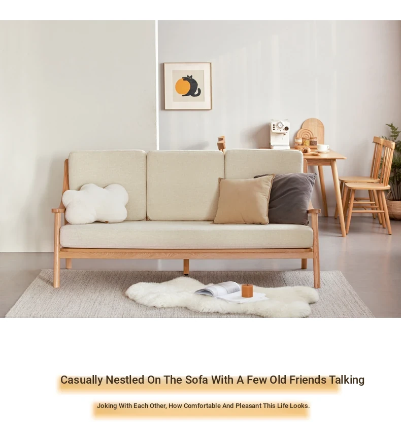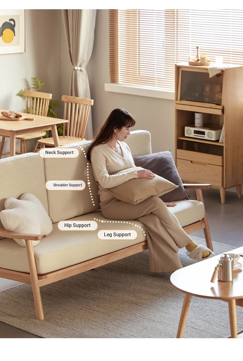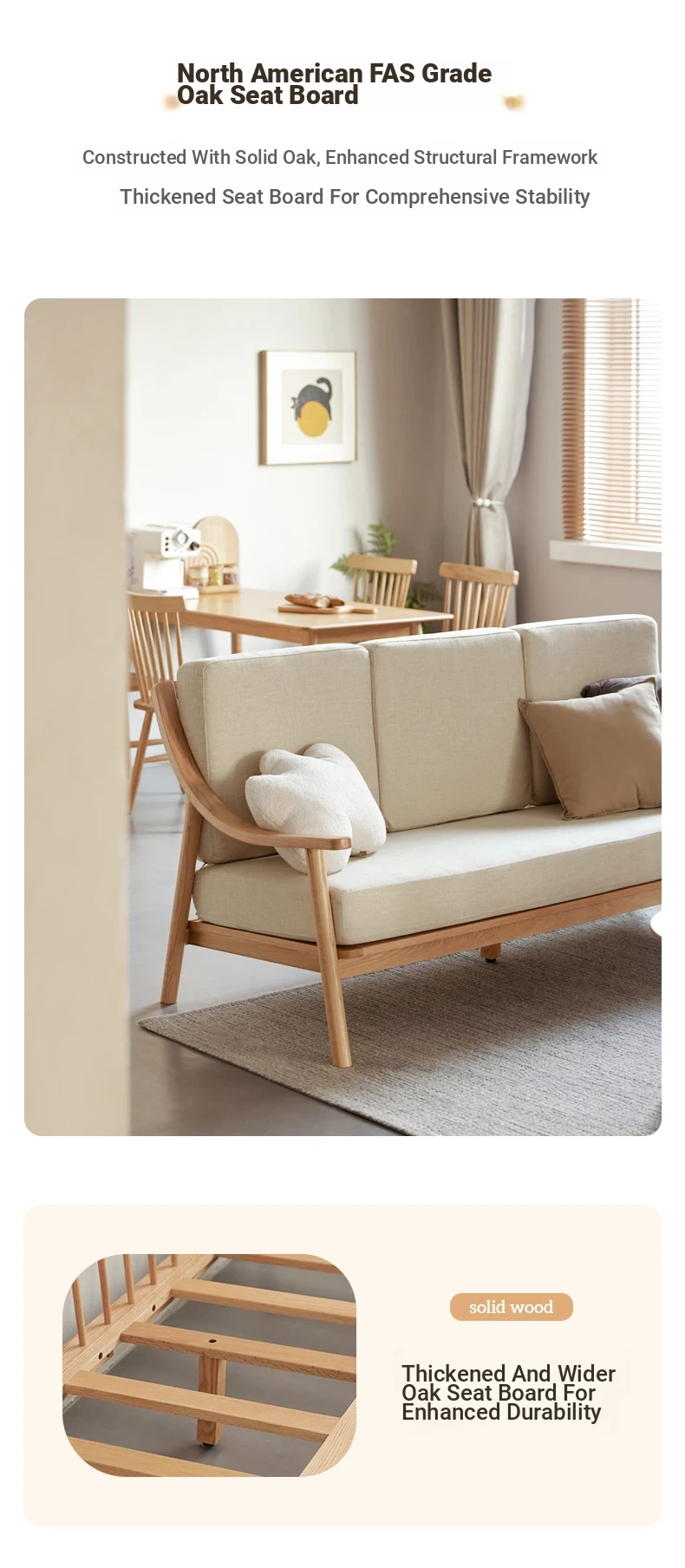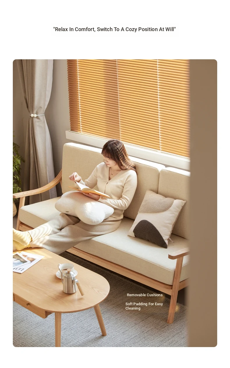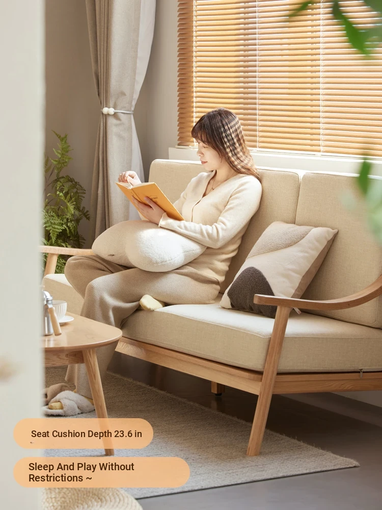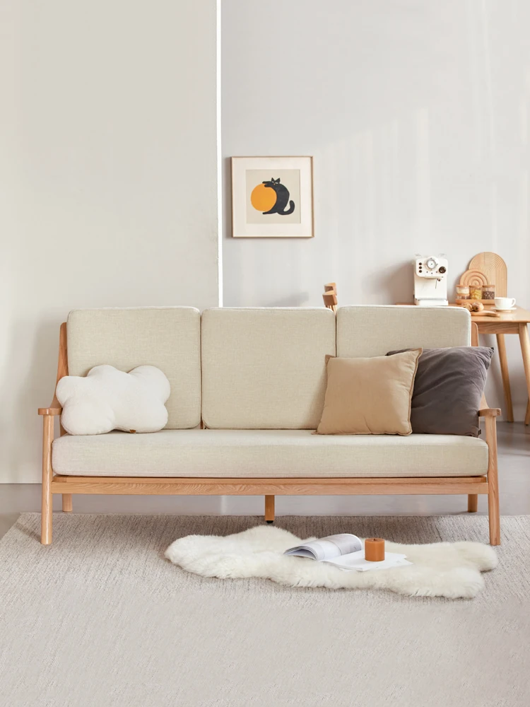Natural Element Solid Wood Sofa - Nordic Japanese Minimalist 3-Seater Couch for Cozy Living Rooms, Perfect for Small Spaces.