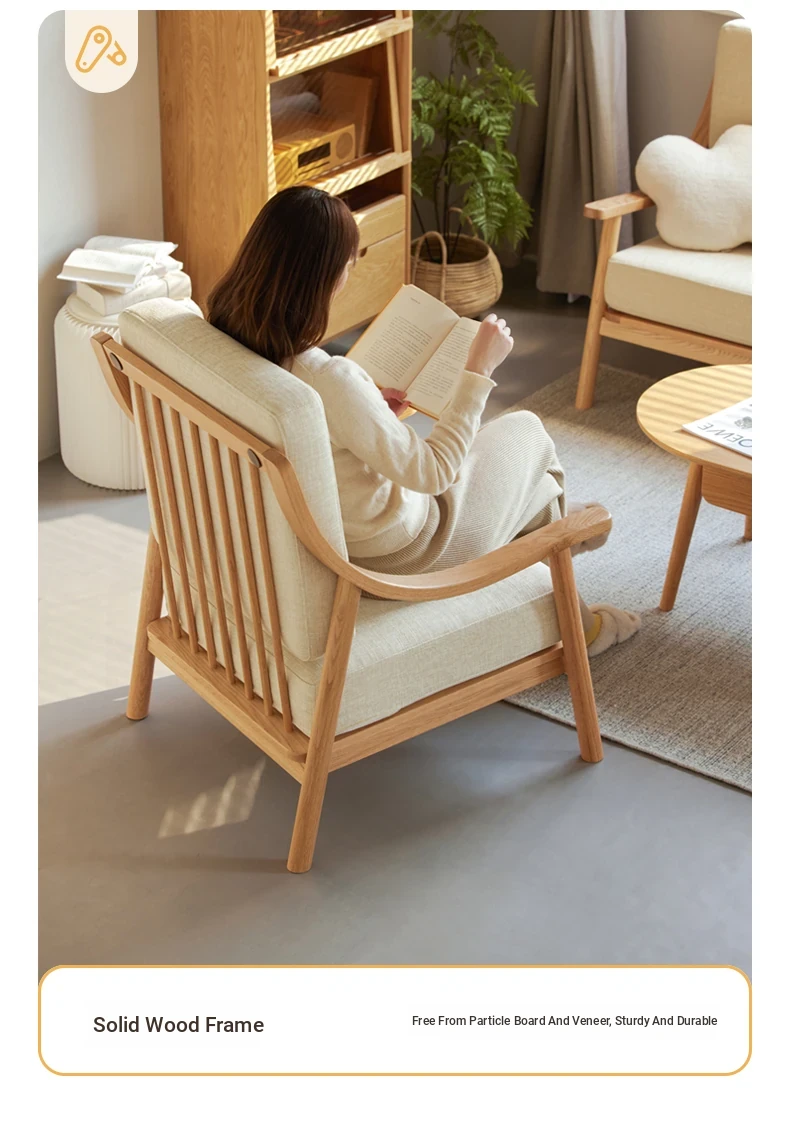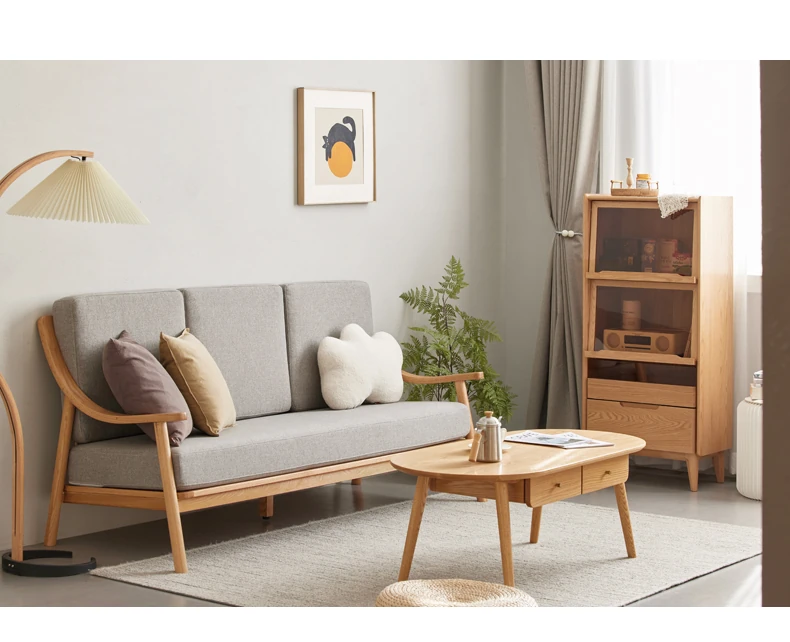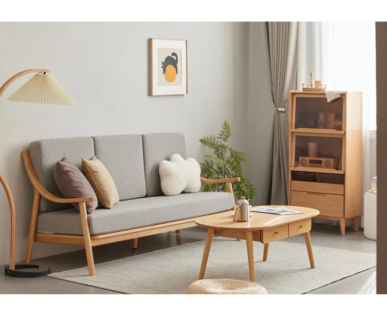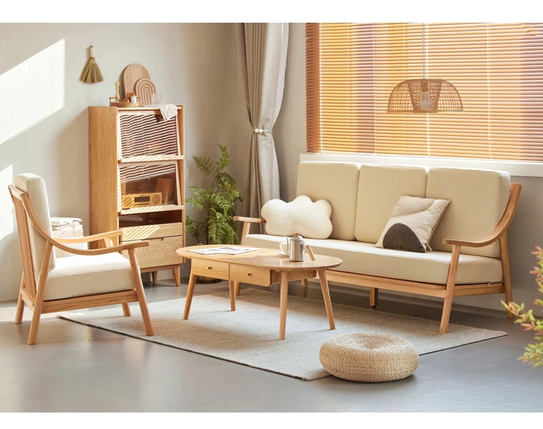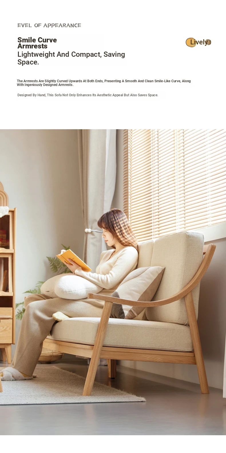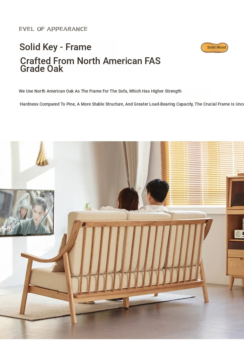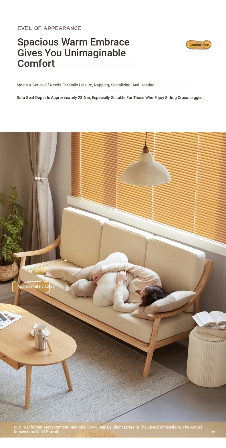 Natural Element Solid Wood Sofa - Nordic Japanese Minimalist 3-Seater Couch for Cozy Living Rooms, Perfect for Small Spaces.