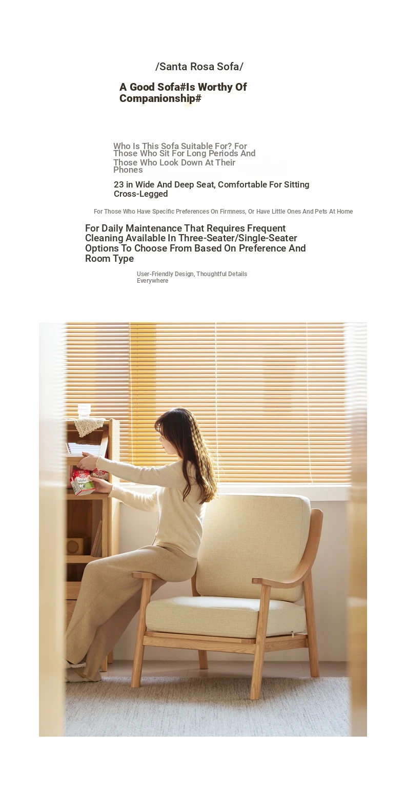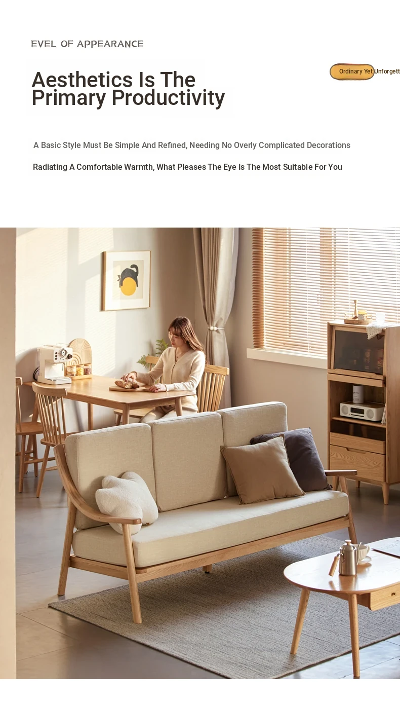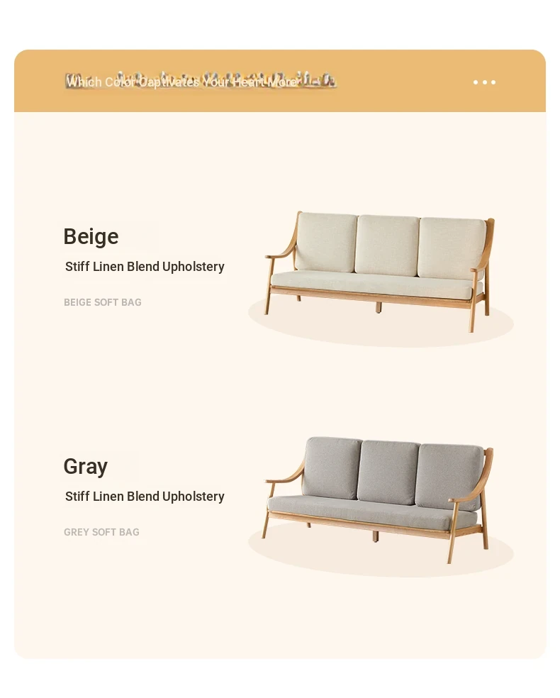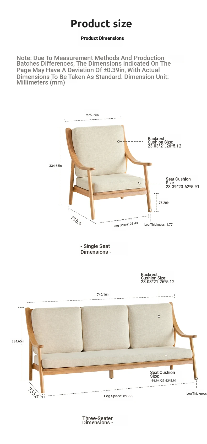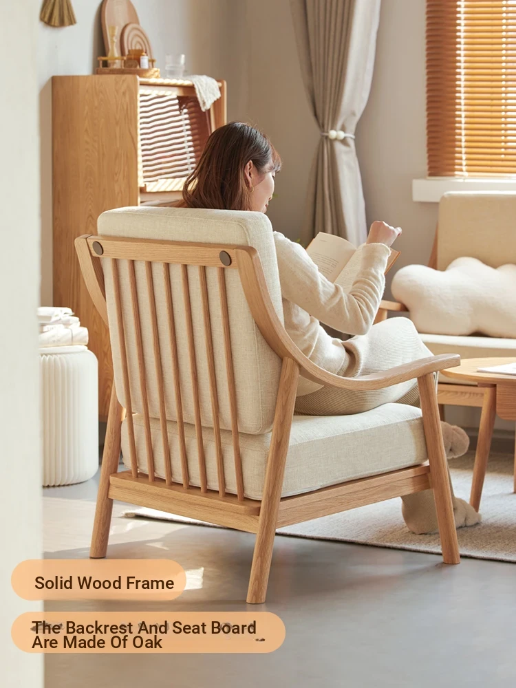 Natural Element Solid Wood Sofa - Nordic Japanese Minimalist 3-Seater Couch for Cozy Living Rooms, Perfect for Small Spaces.