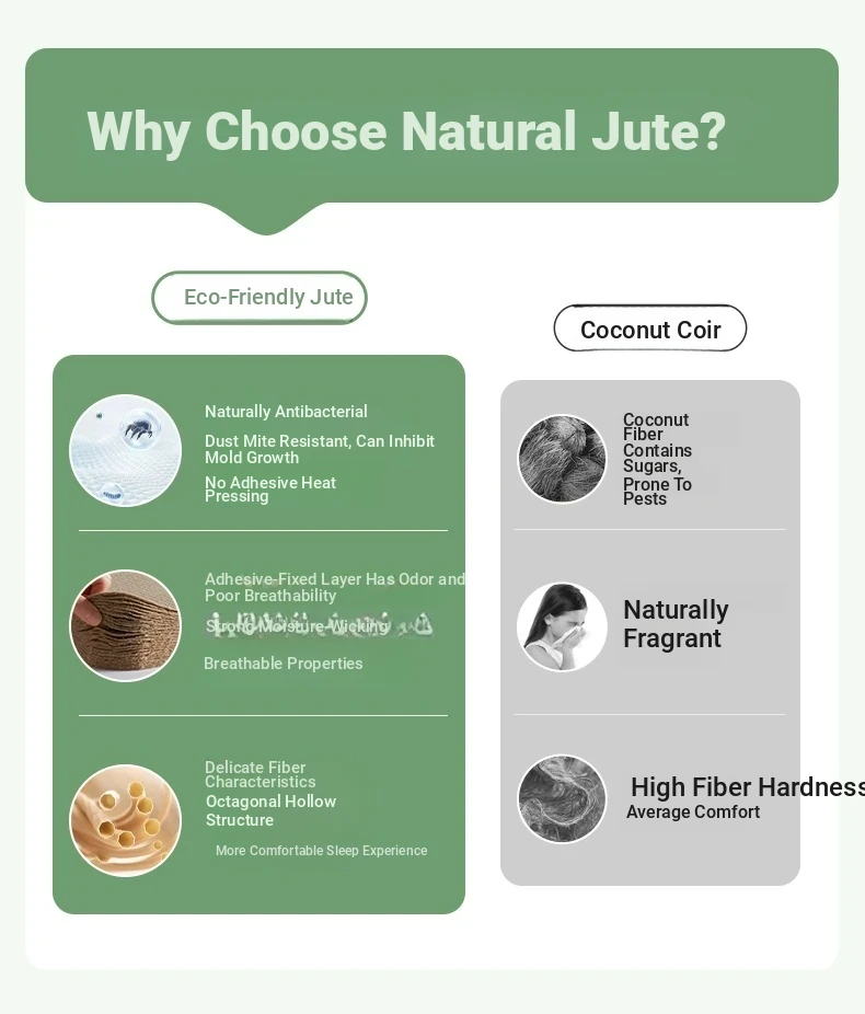 "Natural Jute Brown Mattress with Zero Glue - Eco-Friendly, Spine Supportive, Soft and Spring Latex Bed Mattress for Home Bedroom Use"