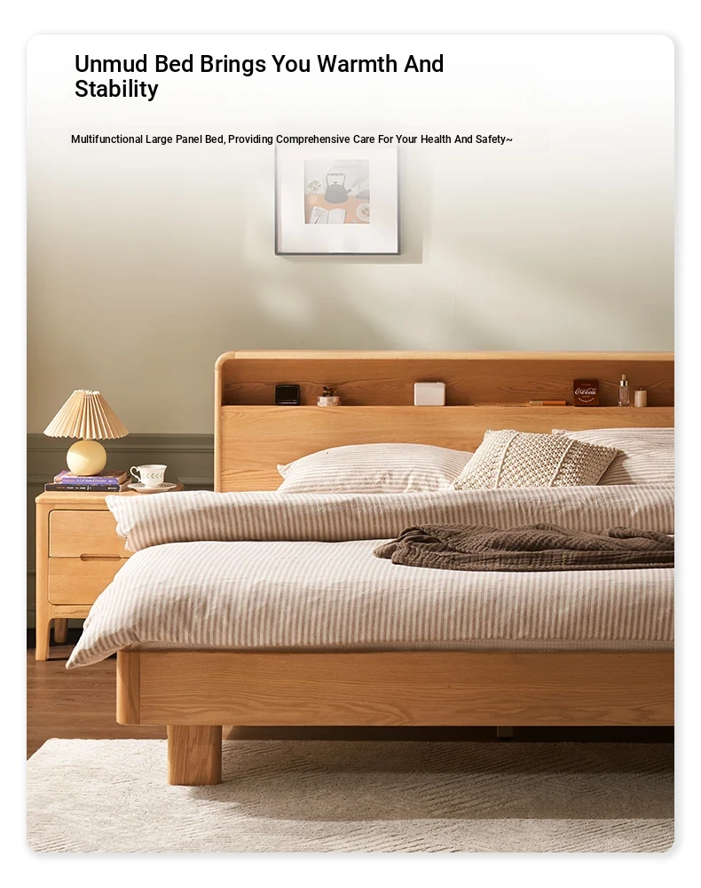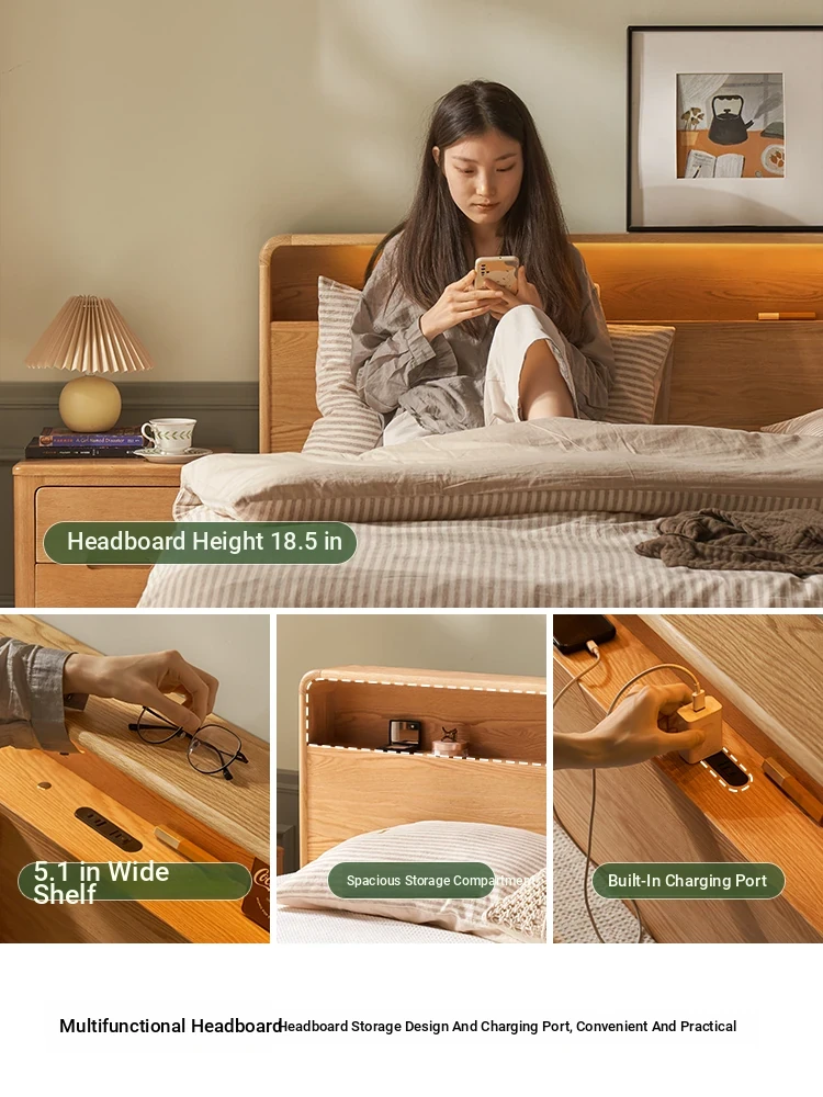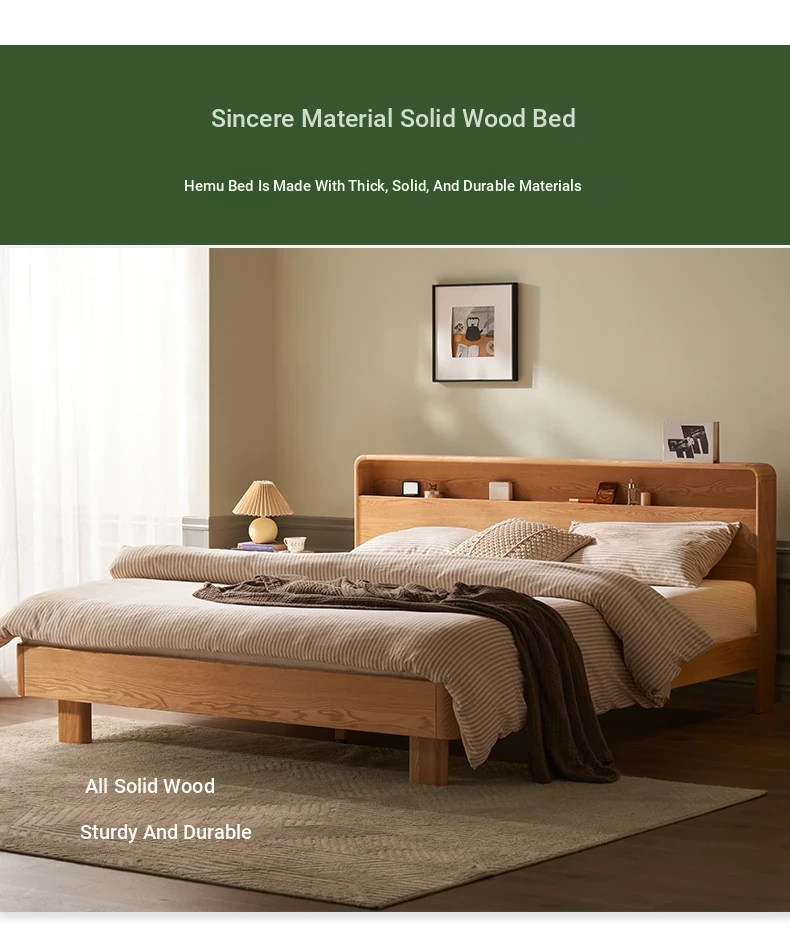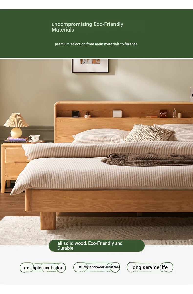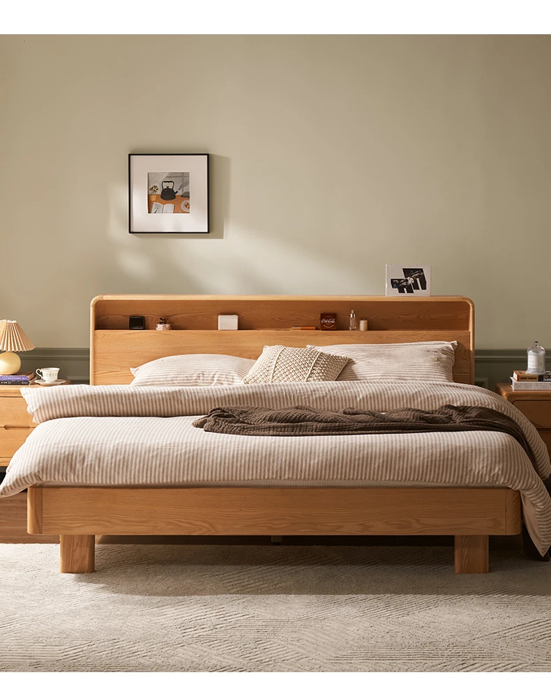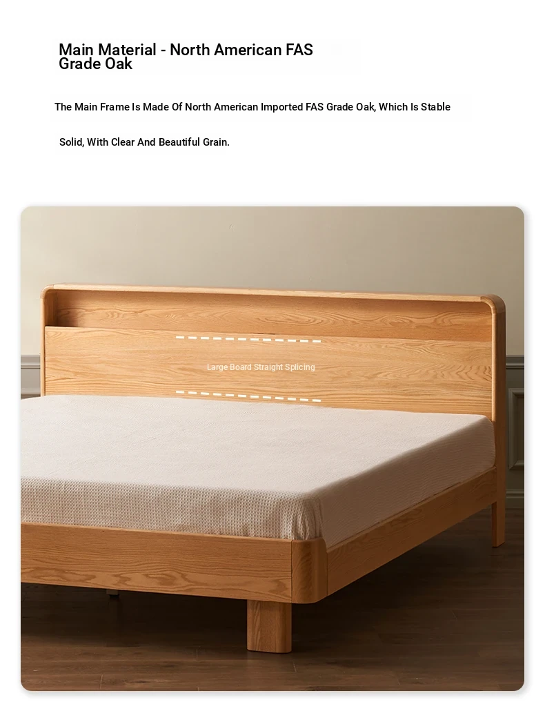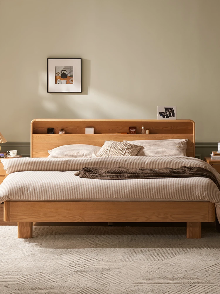 Natural Solid Wood Bed - 1.5m Oak Bed, Nordic Modern Minimalist Bedroom Furniture, 1.8m Double Bed for Spacious Comfort