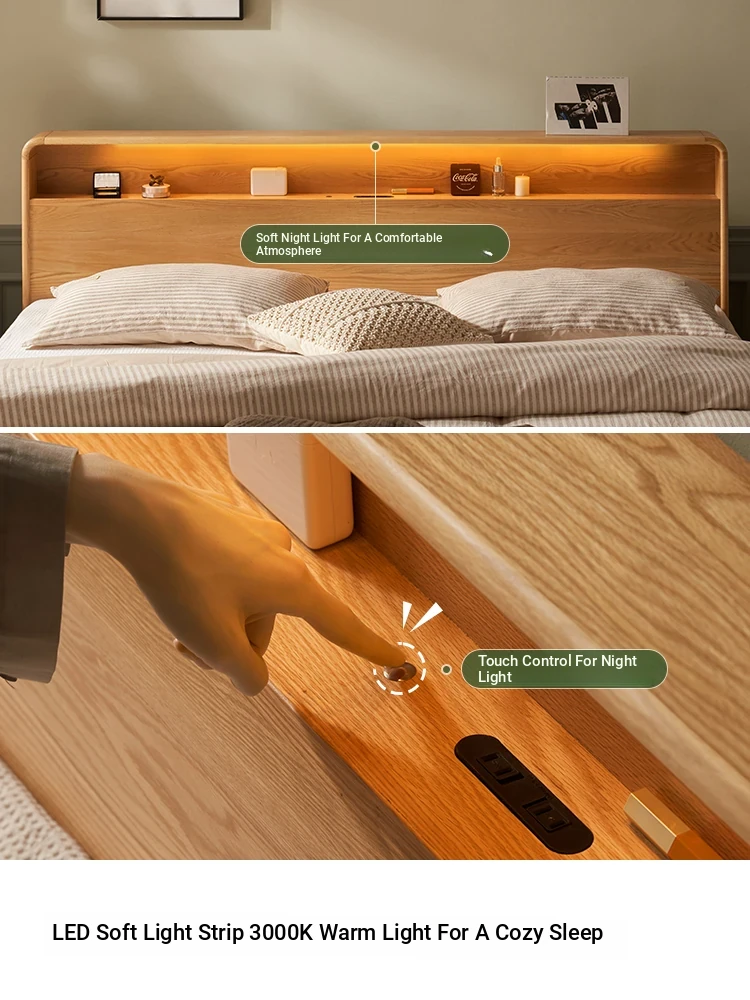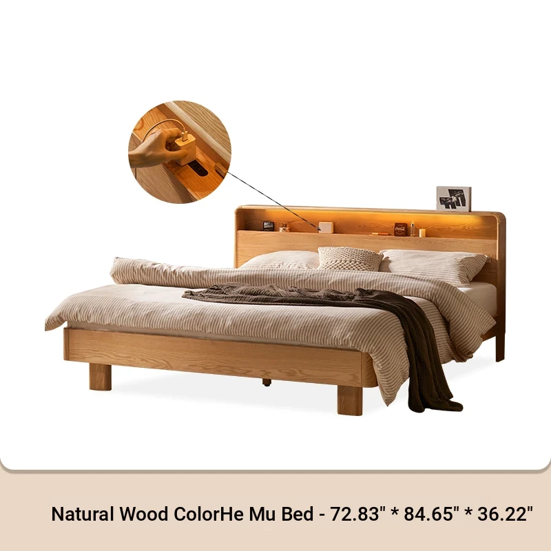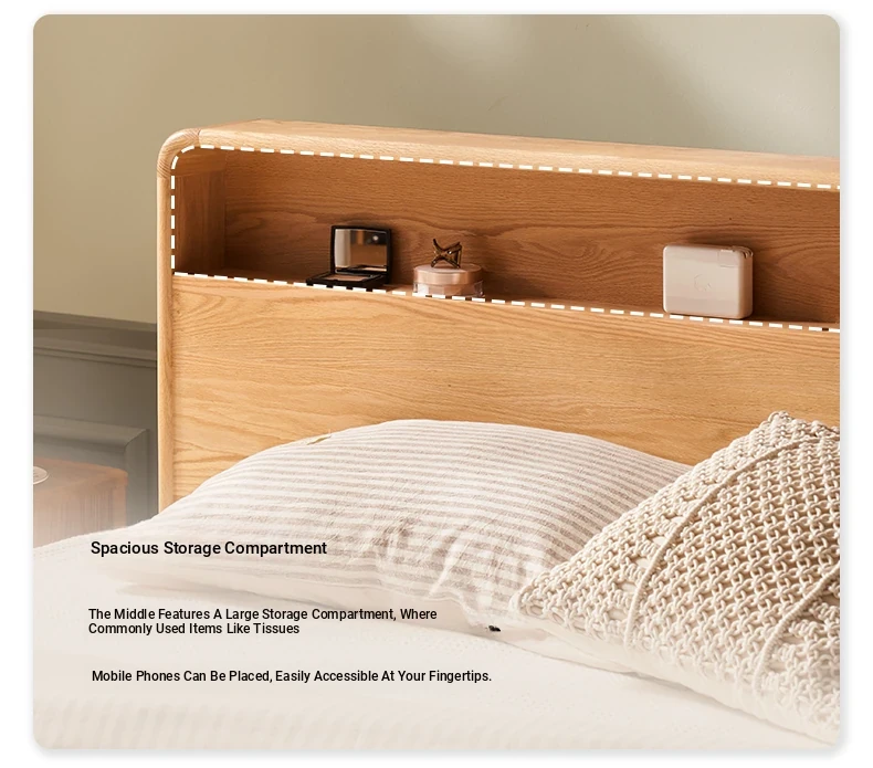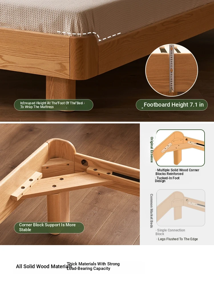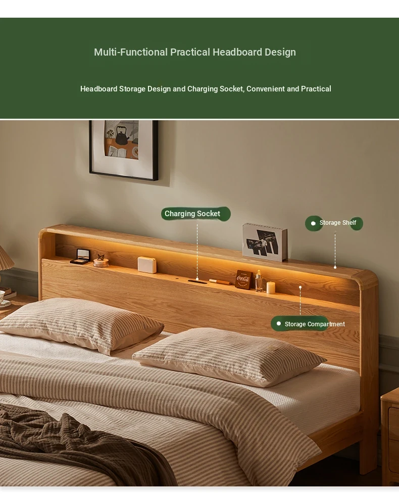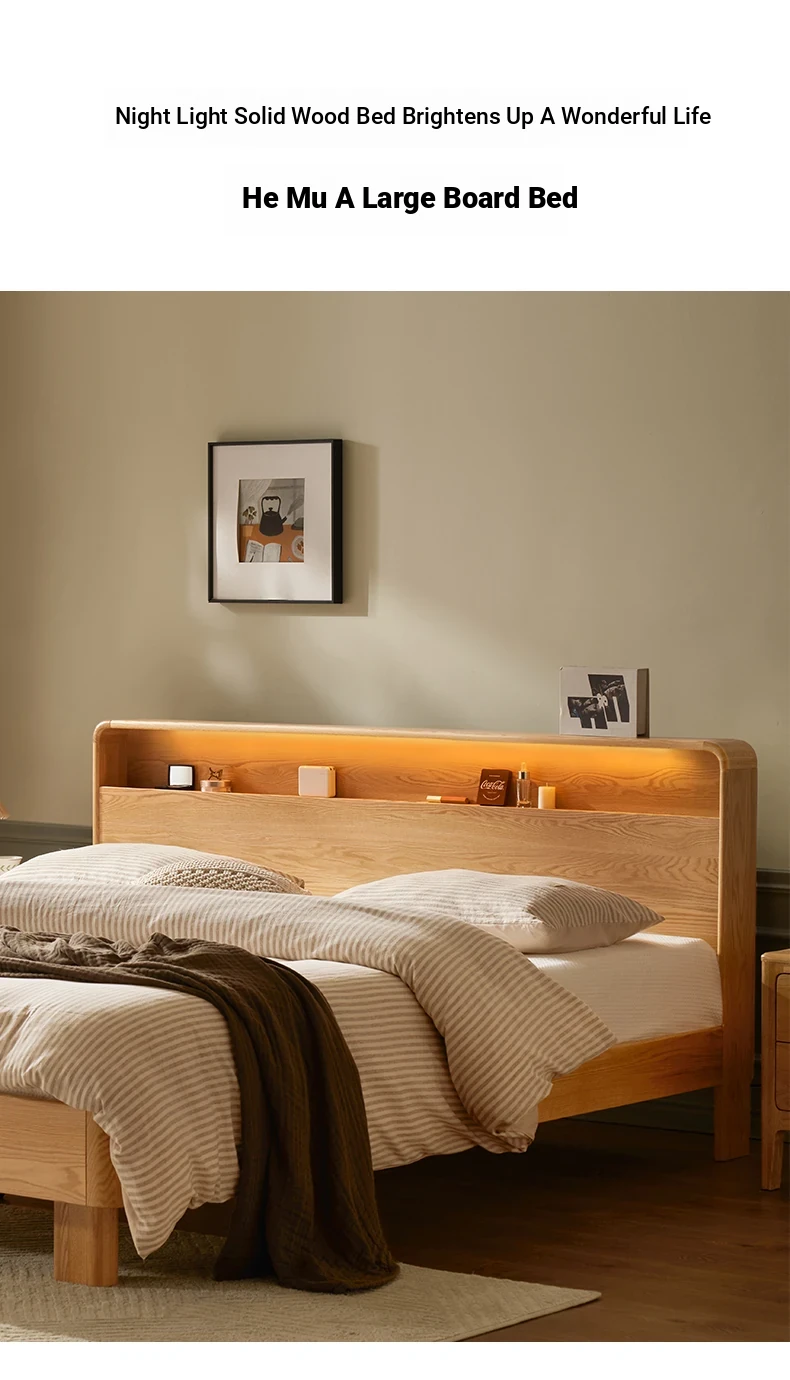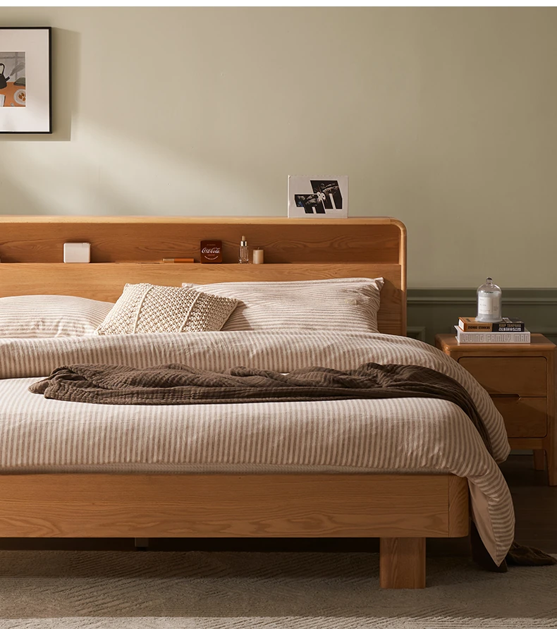 Natural Solid Wood Bed - 1.5m Oak Bed, Nordic Modern Minimalist Bedroom Furniture, 1.8m Double Bed for Spacious Comfort