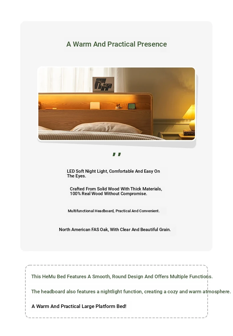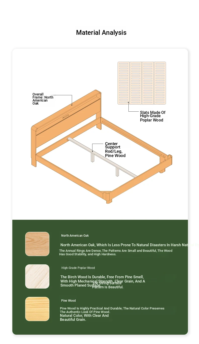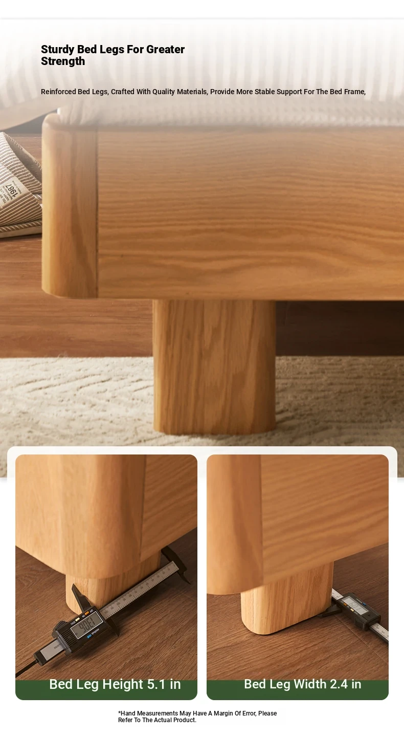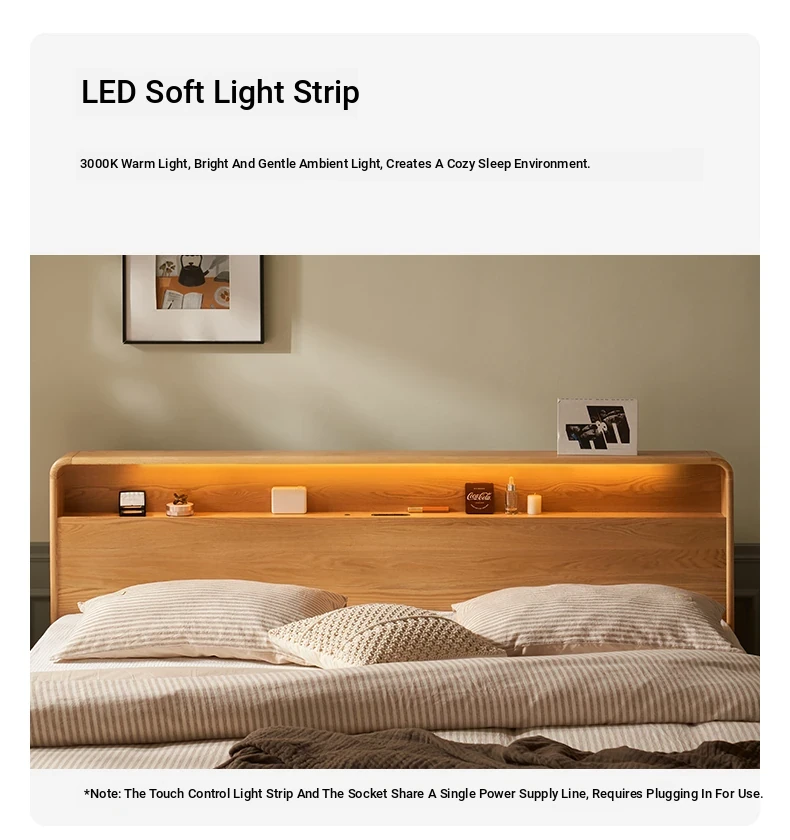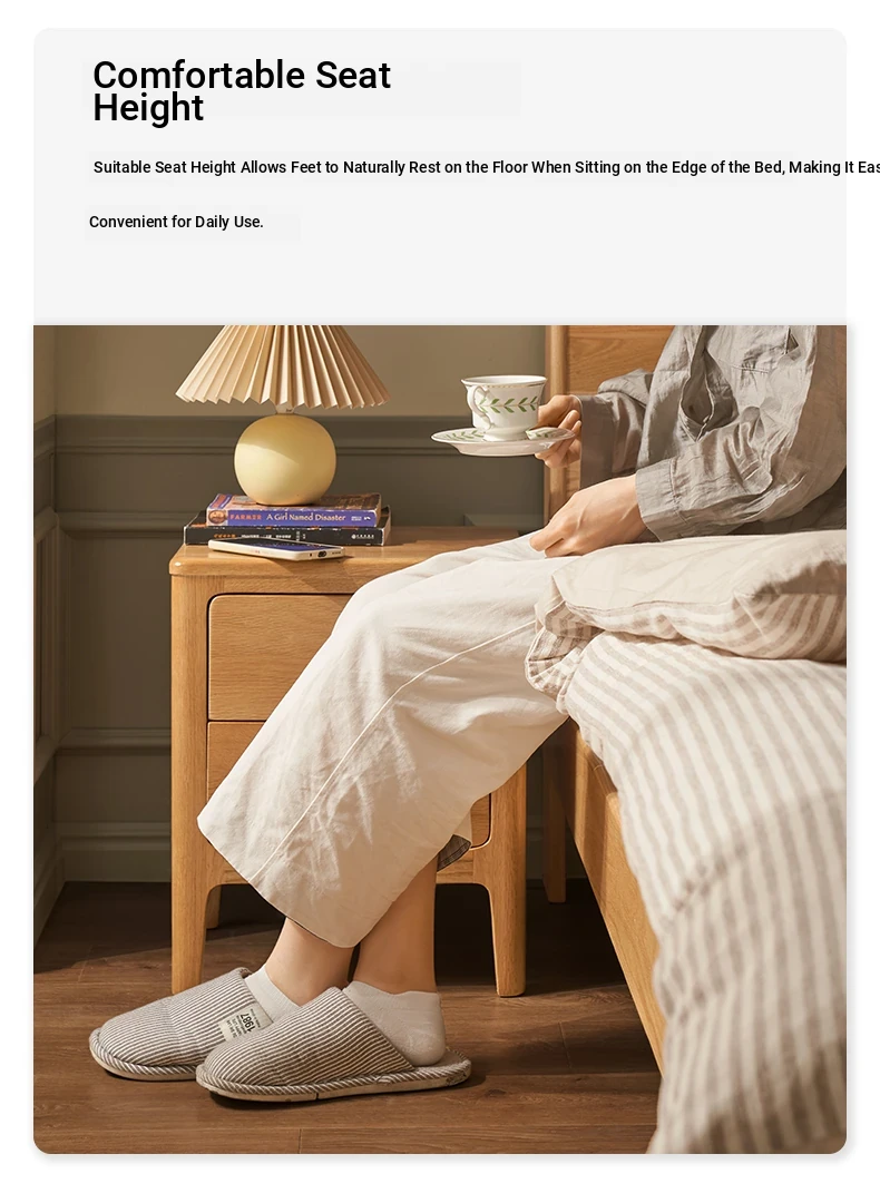 Natural Solid Wood Bed - 1.5m Oak Bed, Nordic Modern Minimalist Bedroom Furniture, 1.8m Double Bed for Spacious Comfort