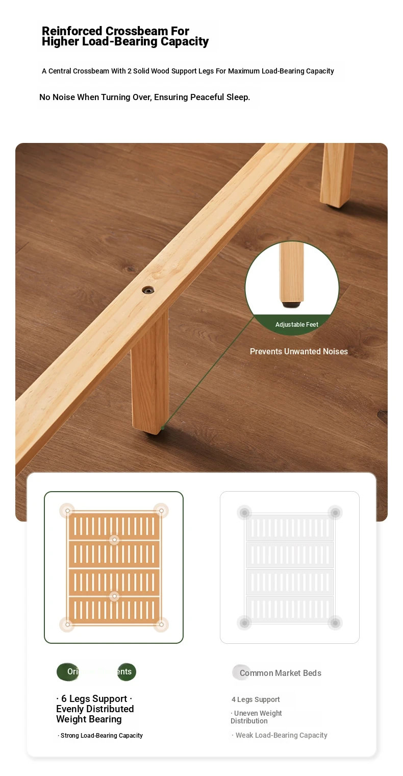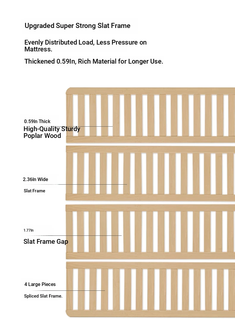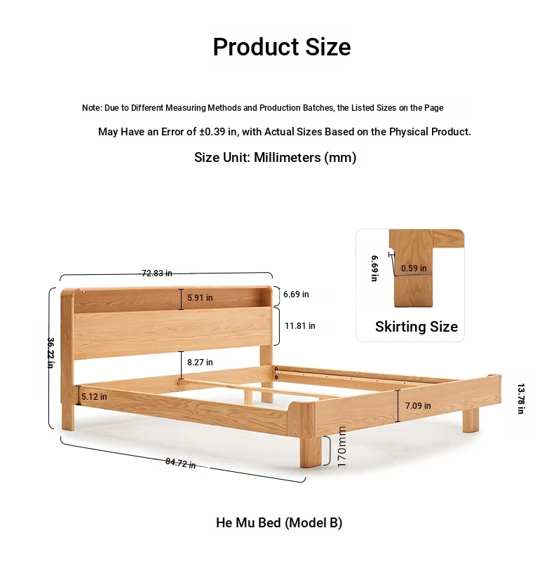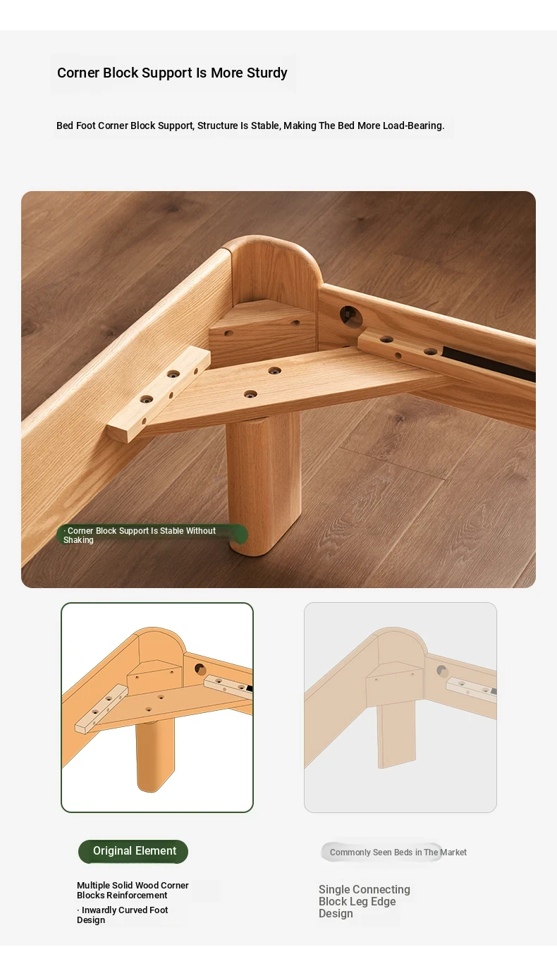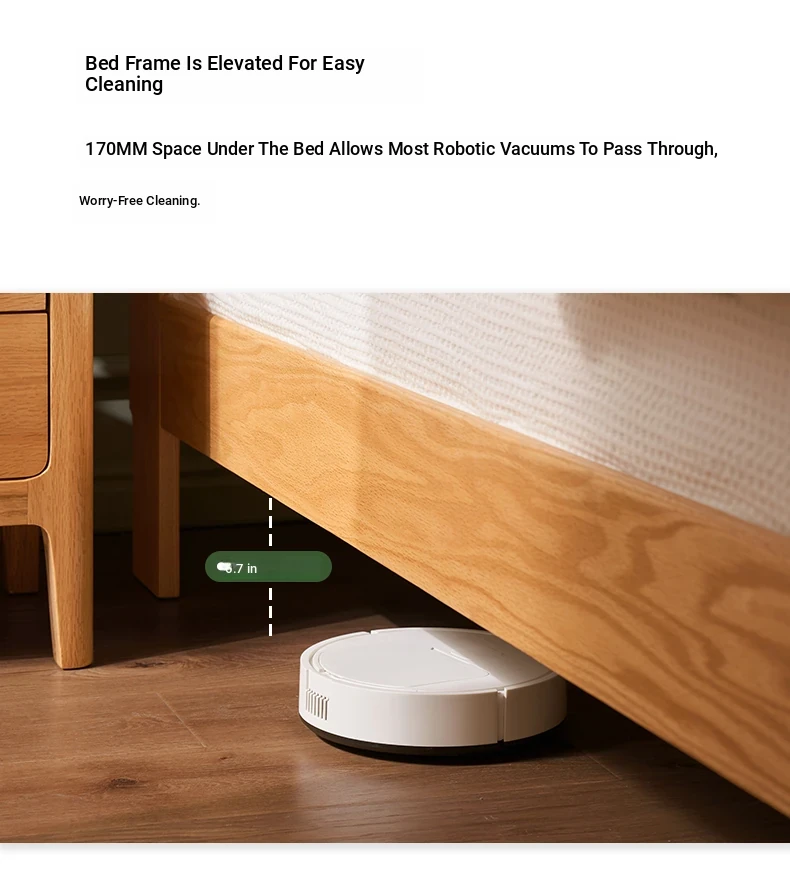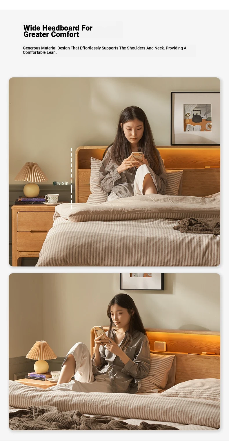 Natural Solid Wood Bed - 1.5m Oak Bed, Nordic Modern Minimalist Bedroom Furniture, 1.8m Double Bed for Spacious Comfort