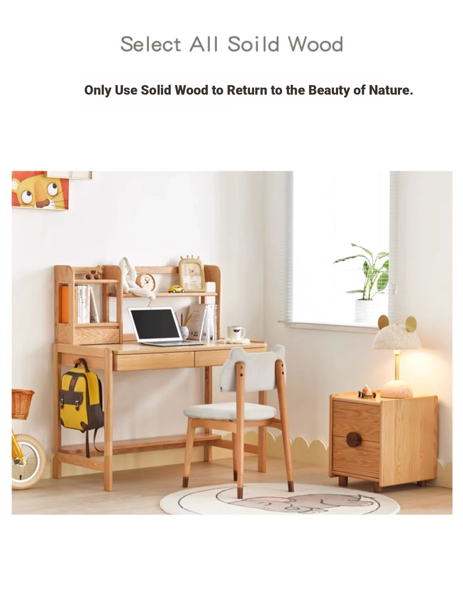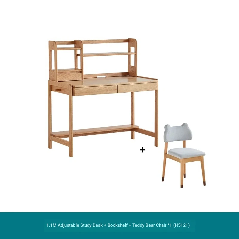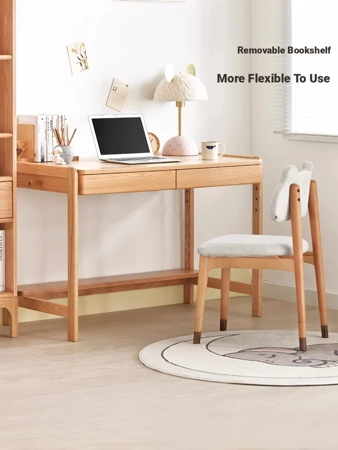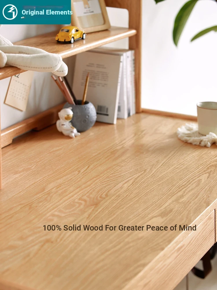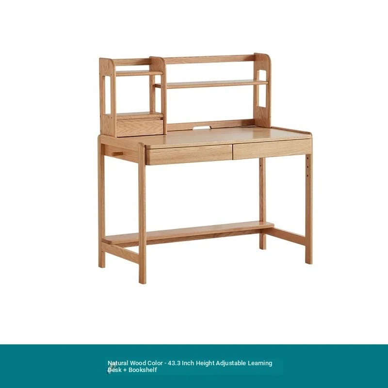 Natural Solid Wood Children's Study Desk with Bookshelf - Multi-functional Student Table for Home Use, Simple & Stylish Design for Learning and Writing