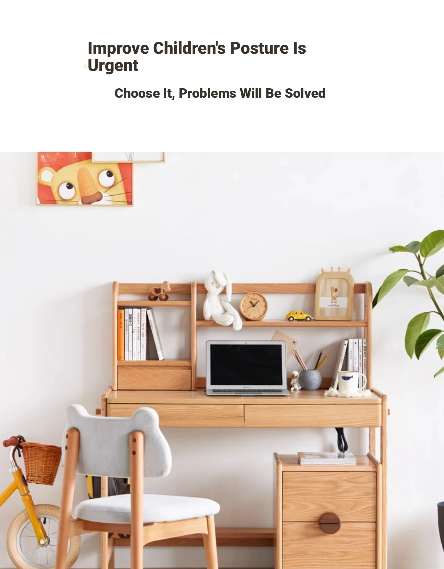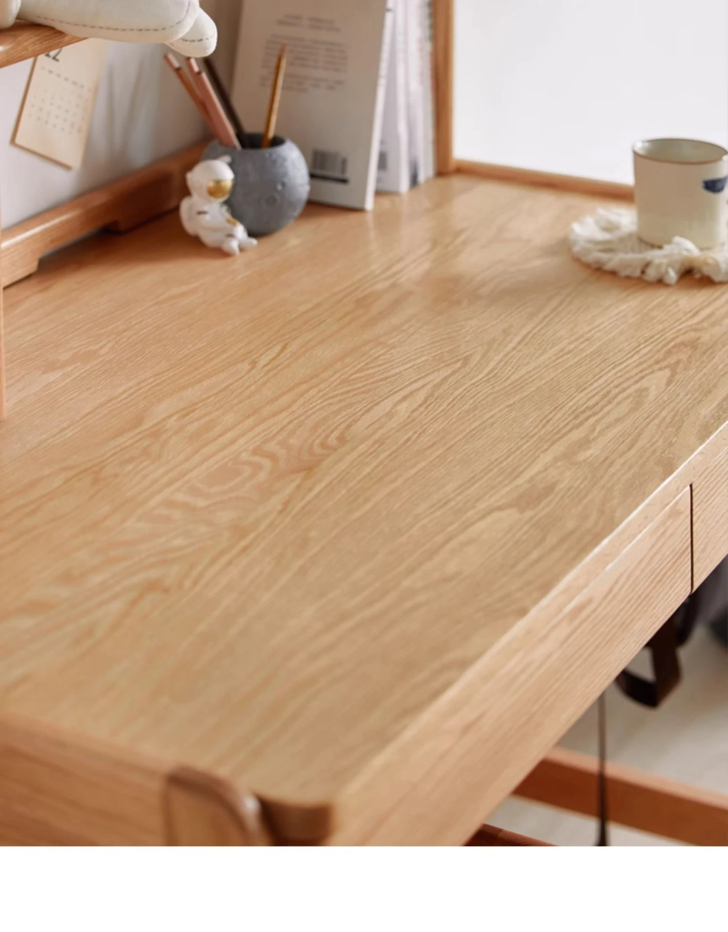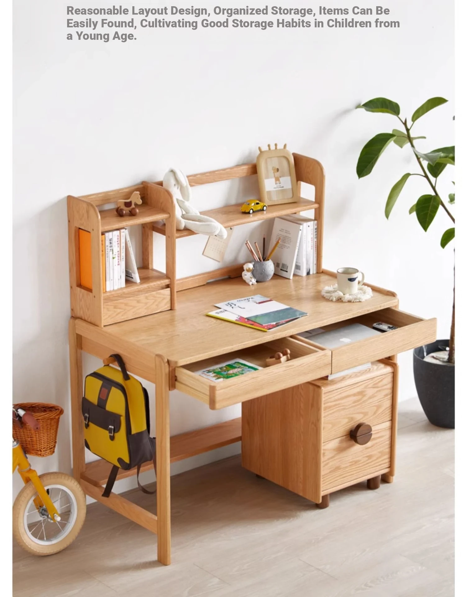 Natural Solid Wood Children's Study Desk with Bookshelf - Multi-functional Student Table for Home Use, Simple & Stylish Design for Learning and Writing