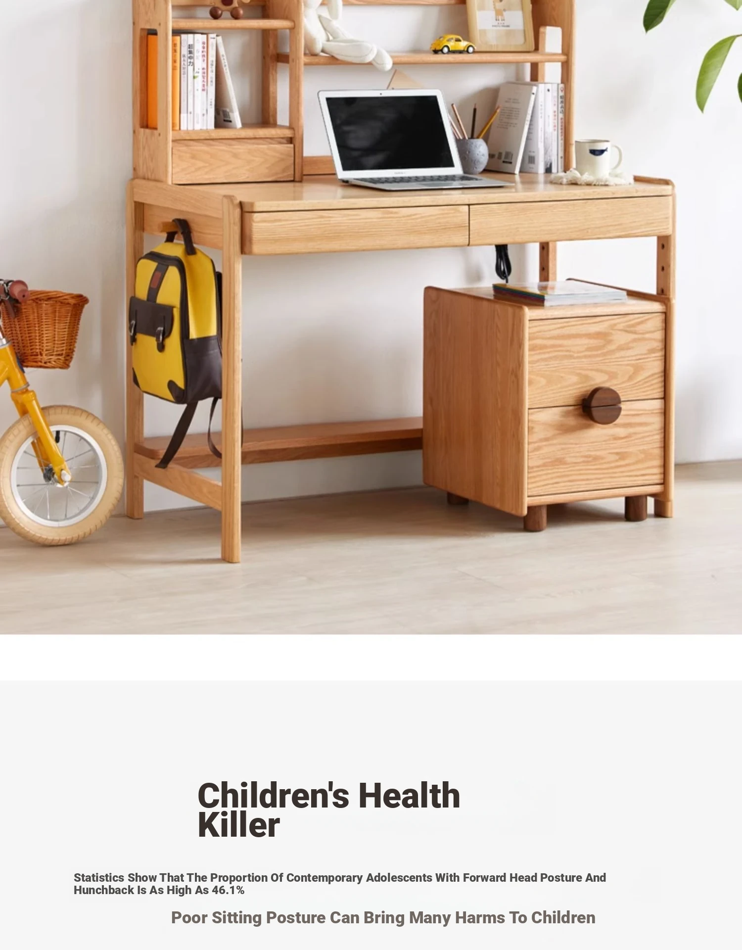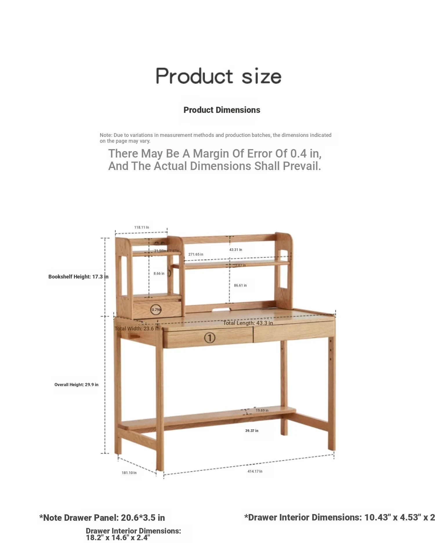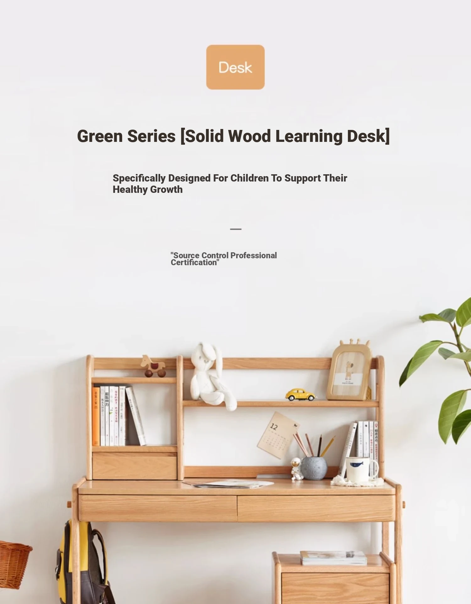Log Color-Double Draw Desk + Bookshelf [Log Color