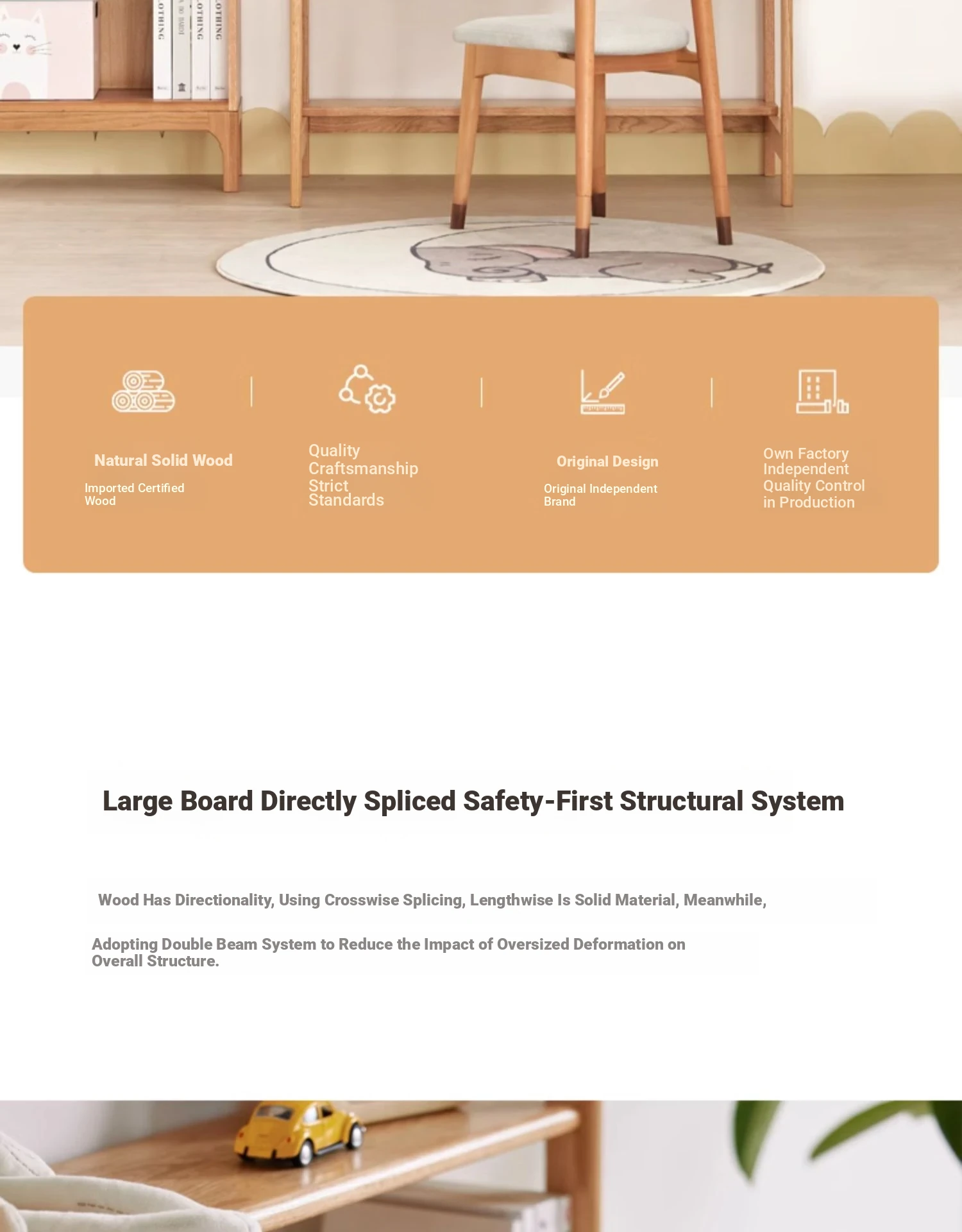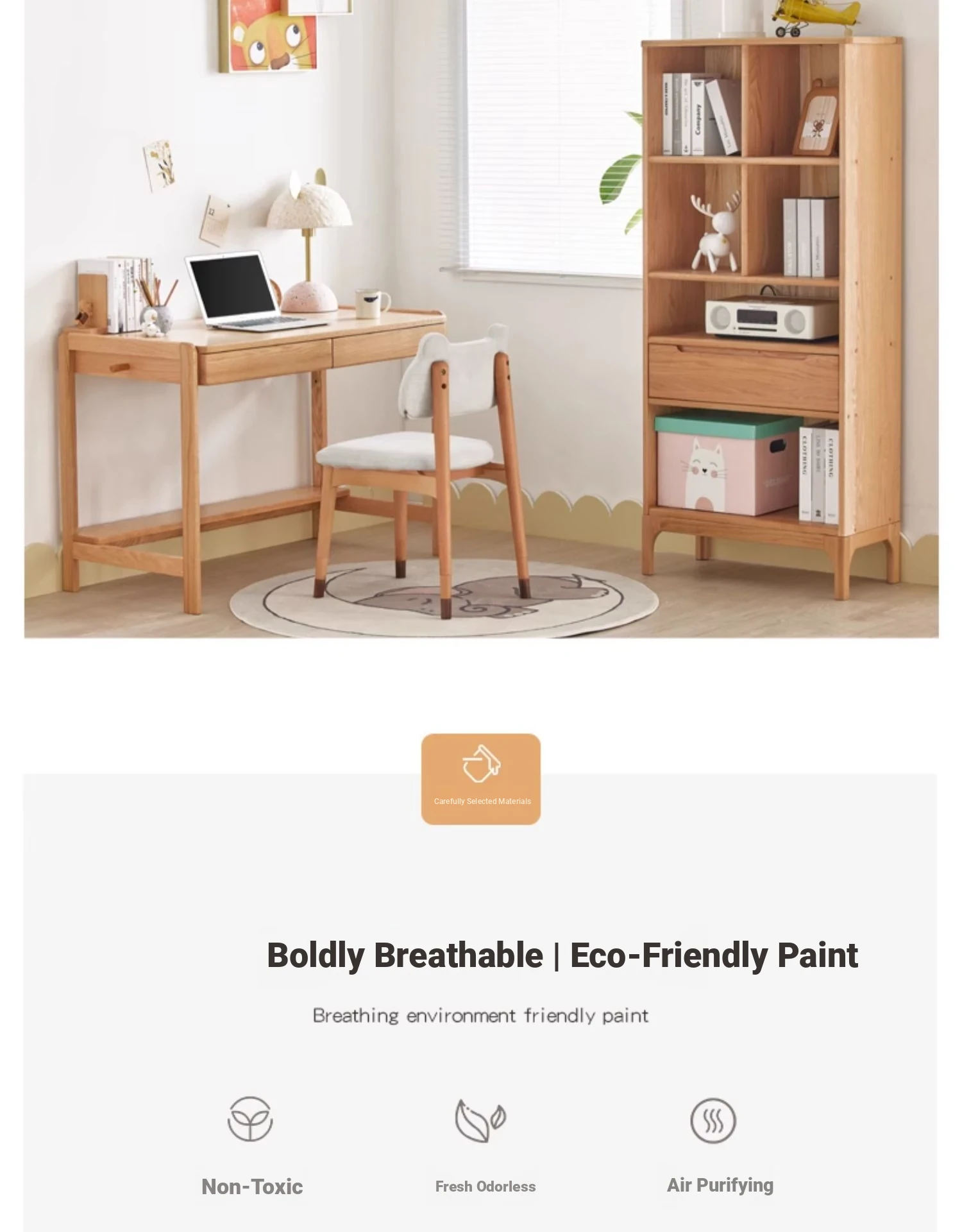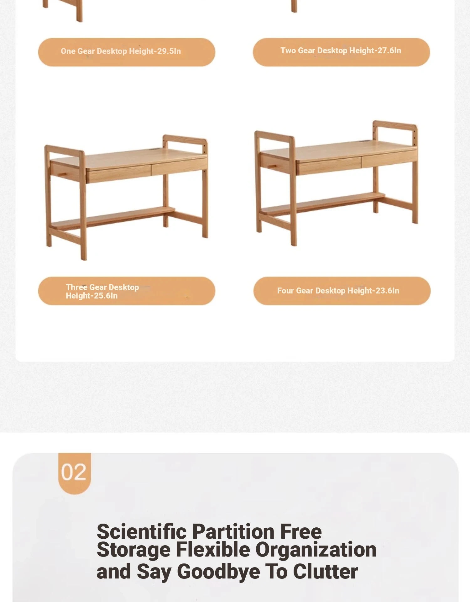 Log Color-Double Draw Desk + Bookshelf [Log Color