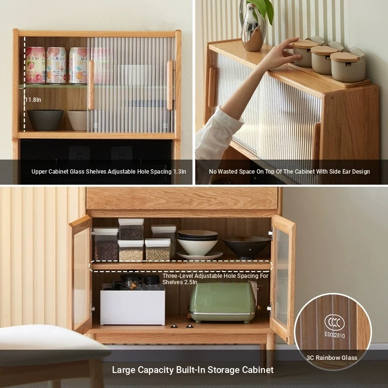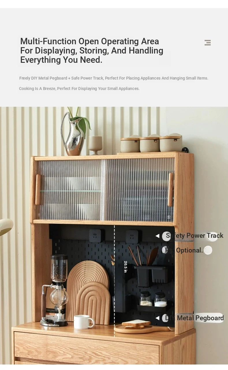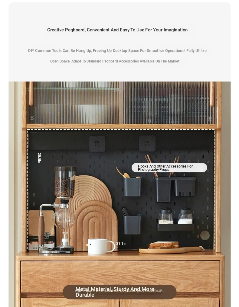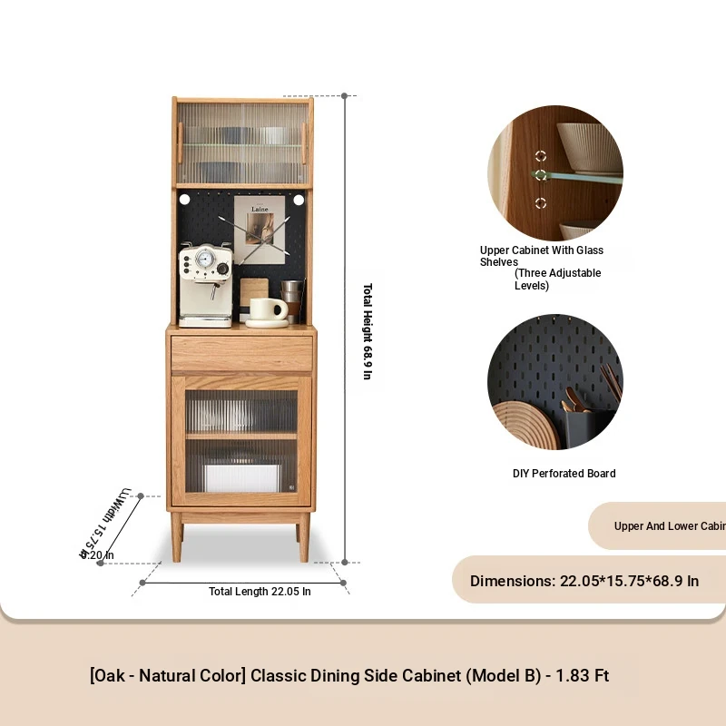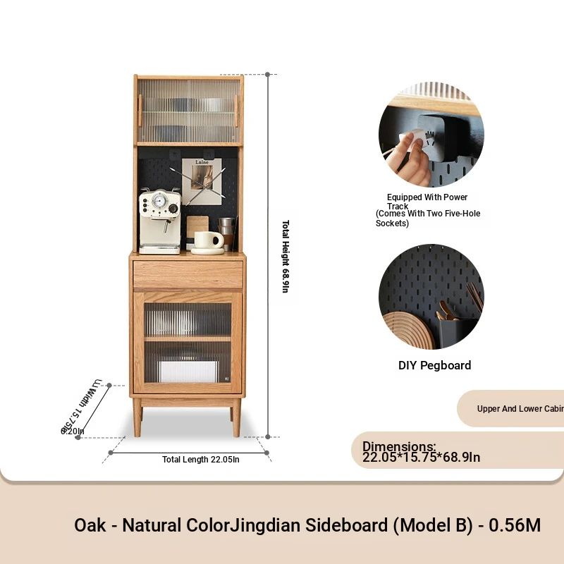 [Oak-log color-upper and lower sections] 22.05 in sideboard cabinet (hole board + electric rail)(22.05in*15.75in*68.90in