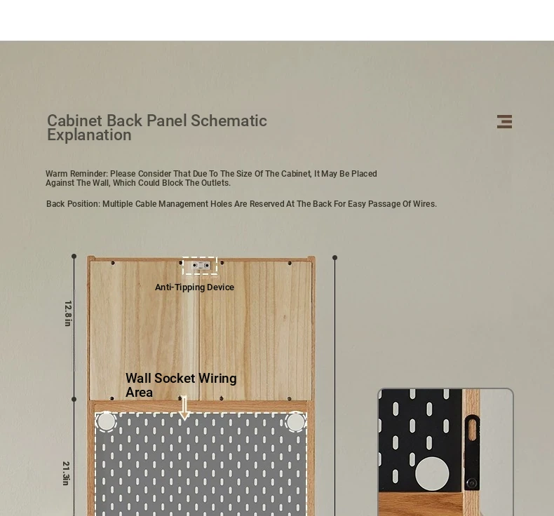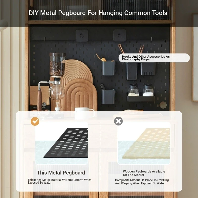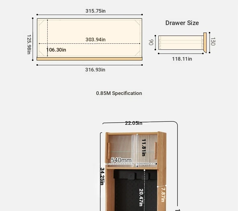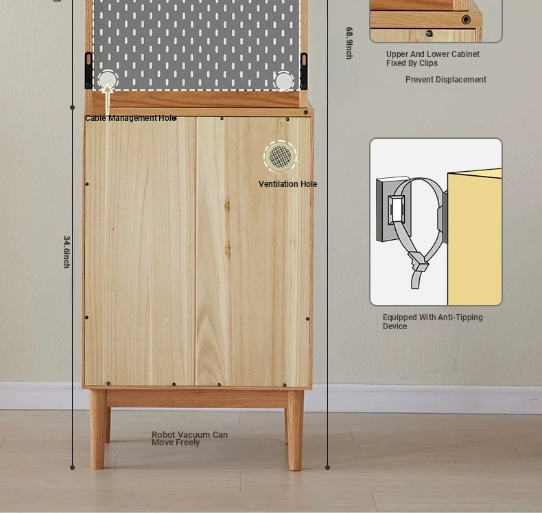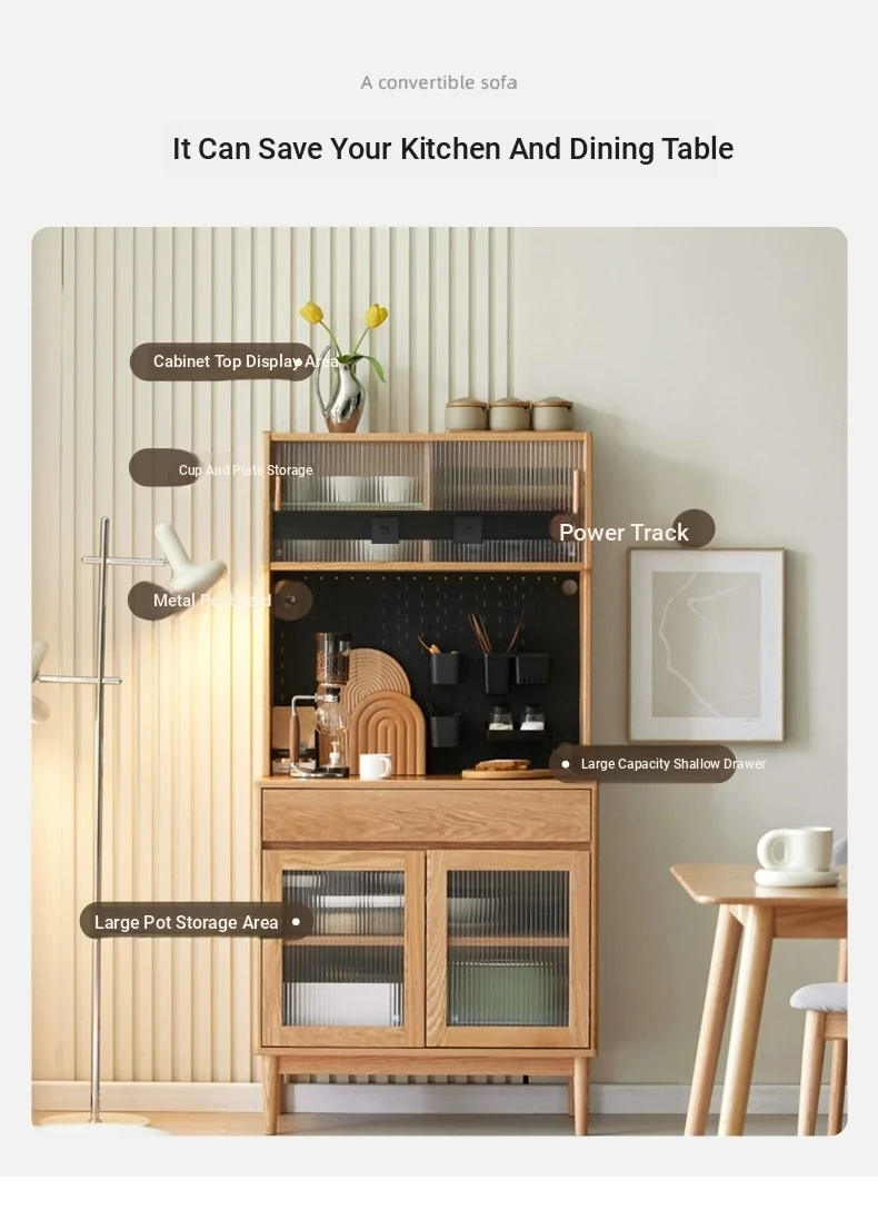 [Oak-log color-upper and lower sections] 22.05 in sideboard cabinet (hole board + electric rail)(22.05in*15.75in*68.90in