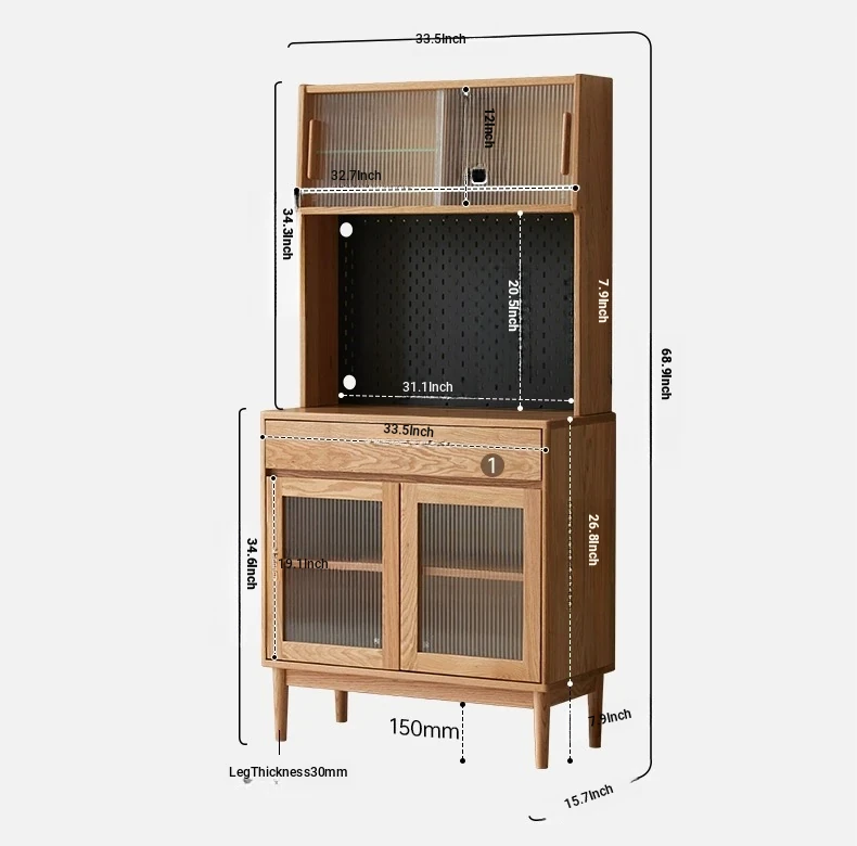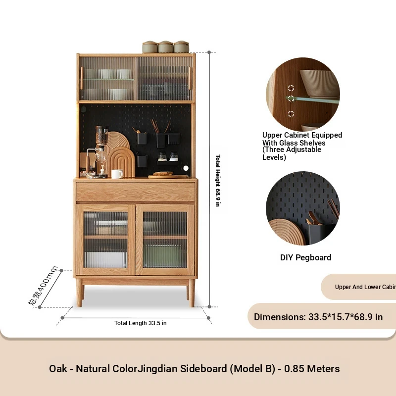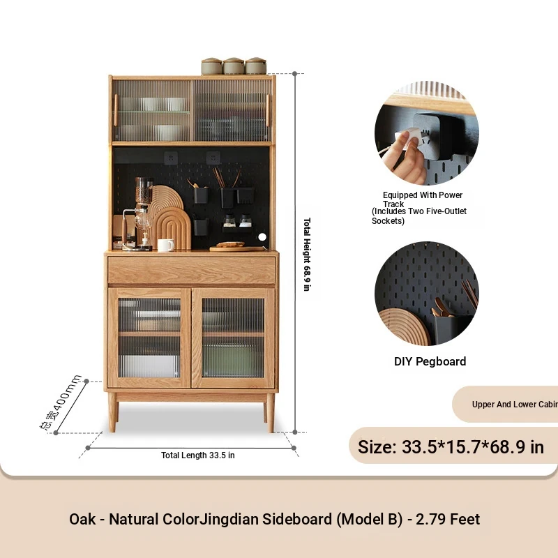 [Oak-log color-upper and lower sections] 33.46 in sideboard cabinet (hole board + electric rail)(33.46in*15.75in*68.90in